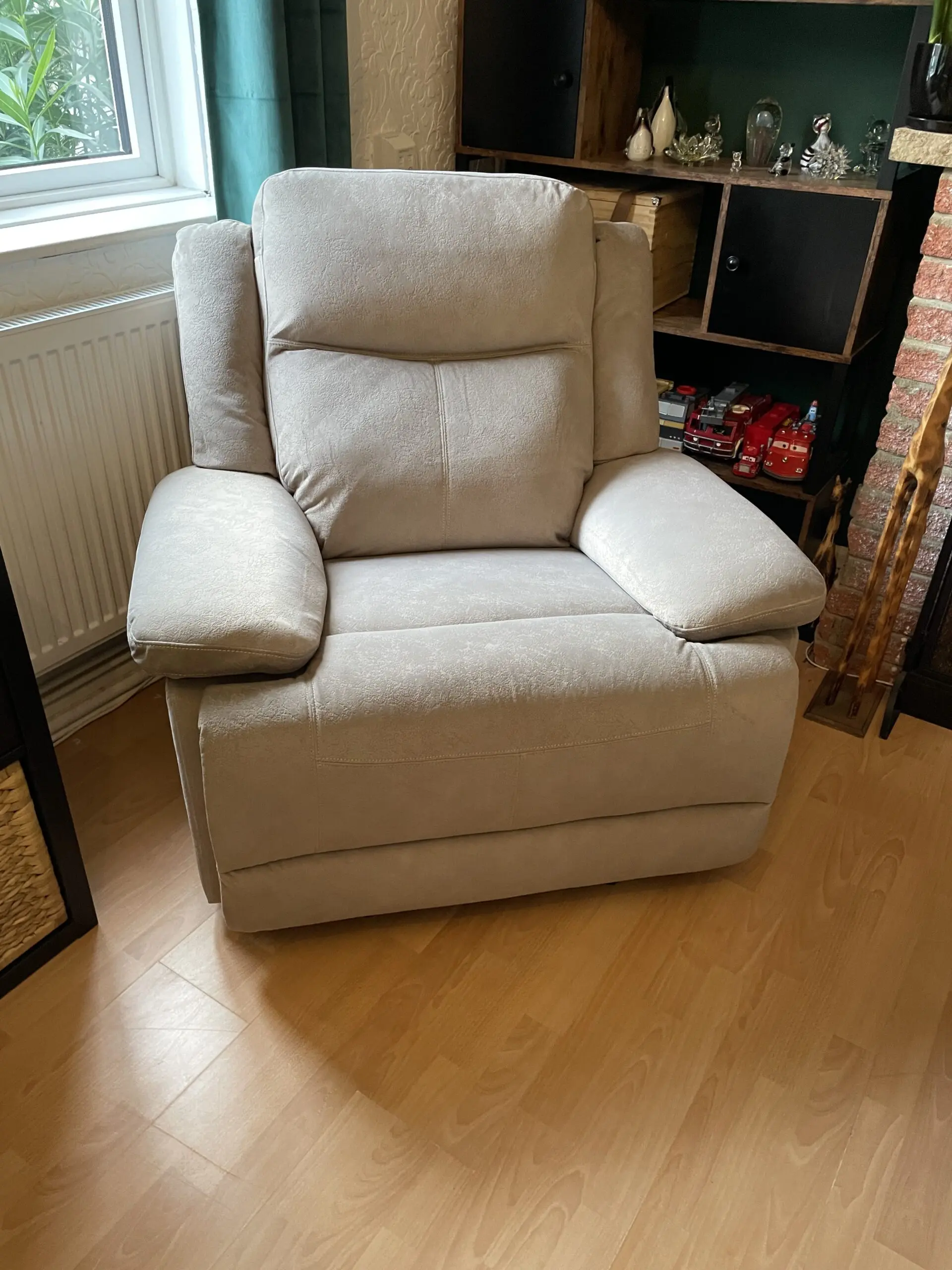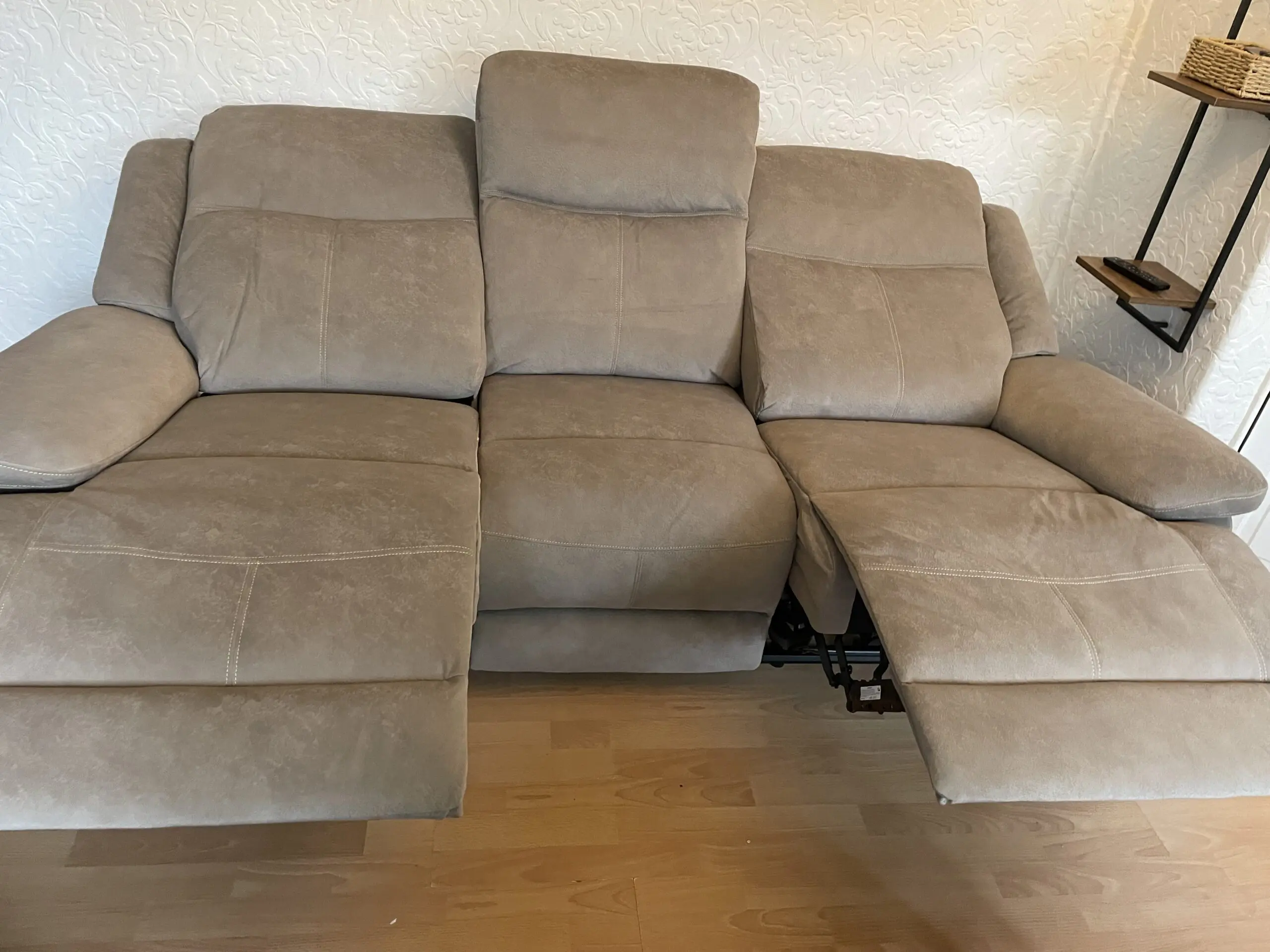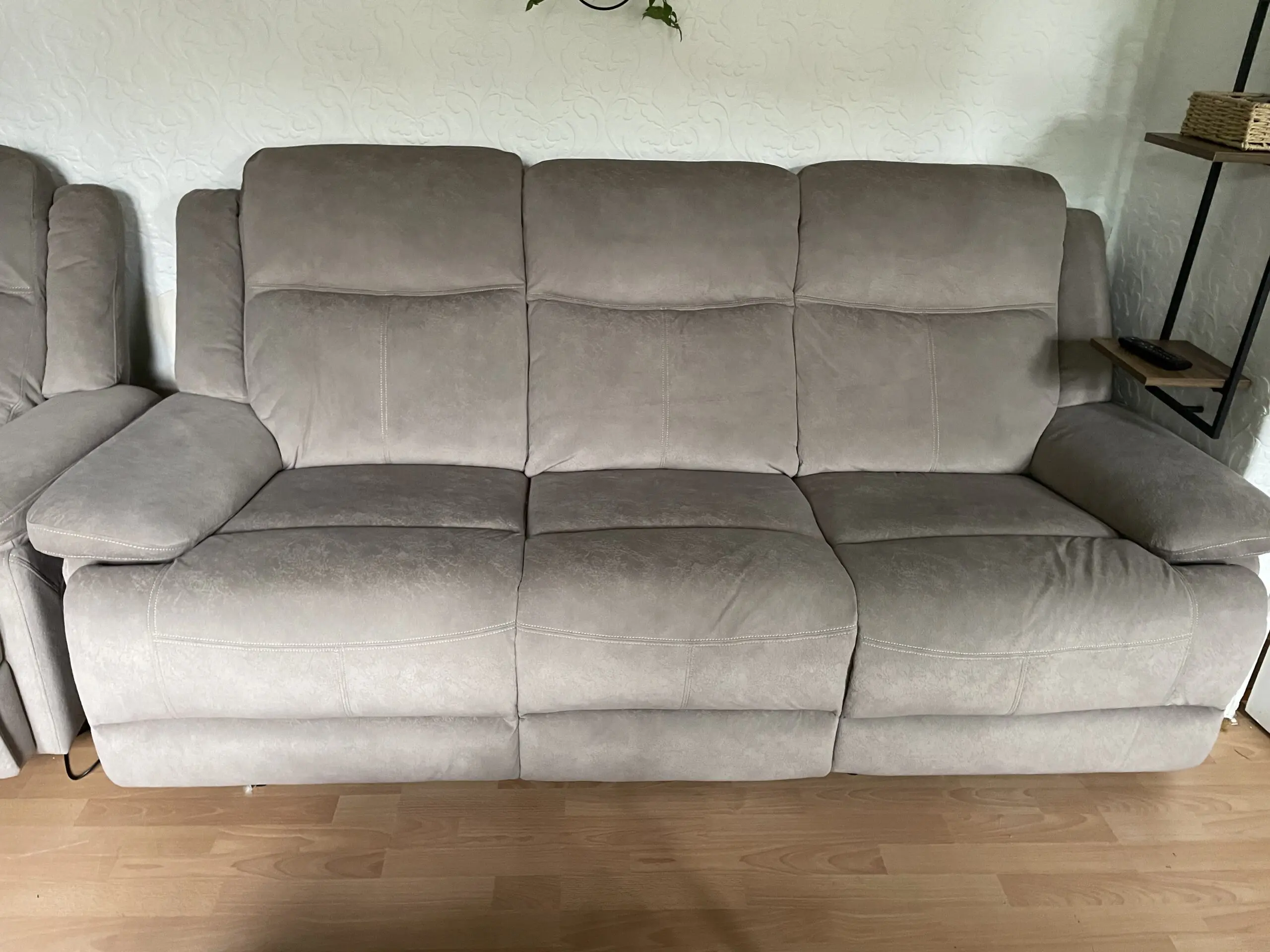 Beautiful mink suede effect 3 seater electric recliner sofa with usb port. Armchair is also electric.