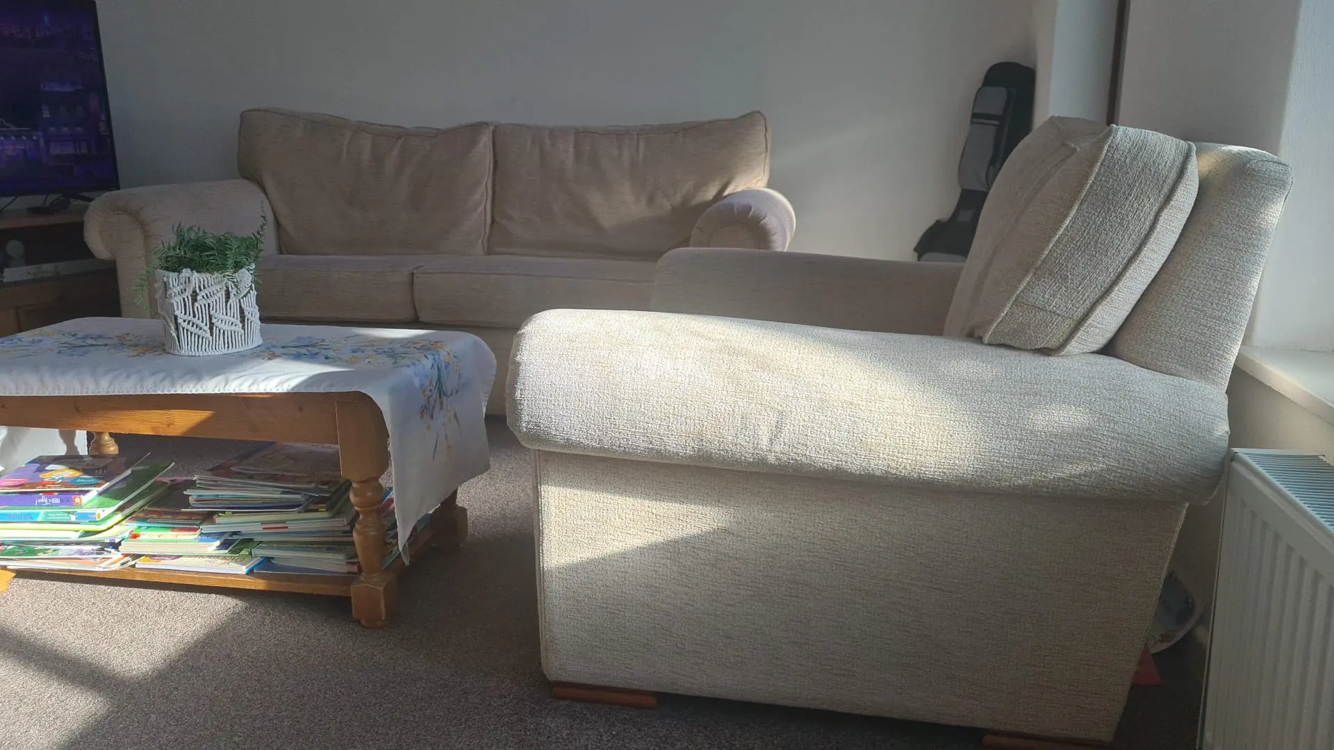 Transform your living room with this beautifully coordinated set in a timeless beige finish. The spacious 5-seater sofa offers both comfort and sophistication, paired with a matching coffee table and foot stool for a complete look. Designed to blend seamlessly with modern or classic interiors, this set is available now at half the original price—a perfect opportunity to elevate your home with style and value.