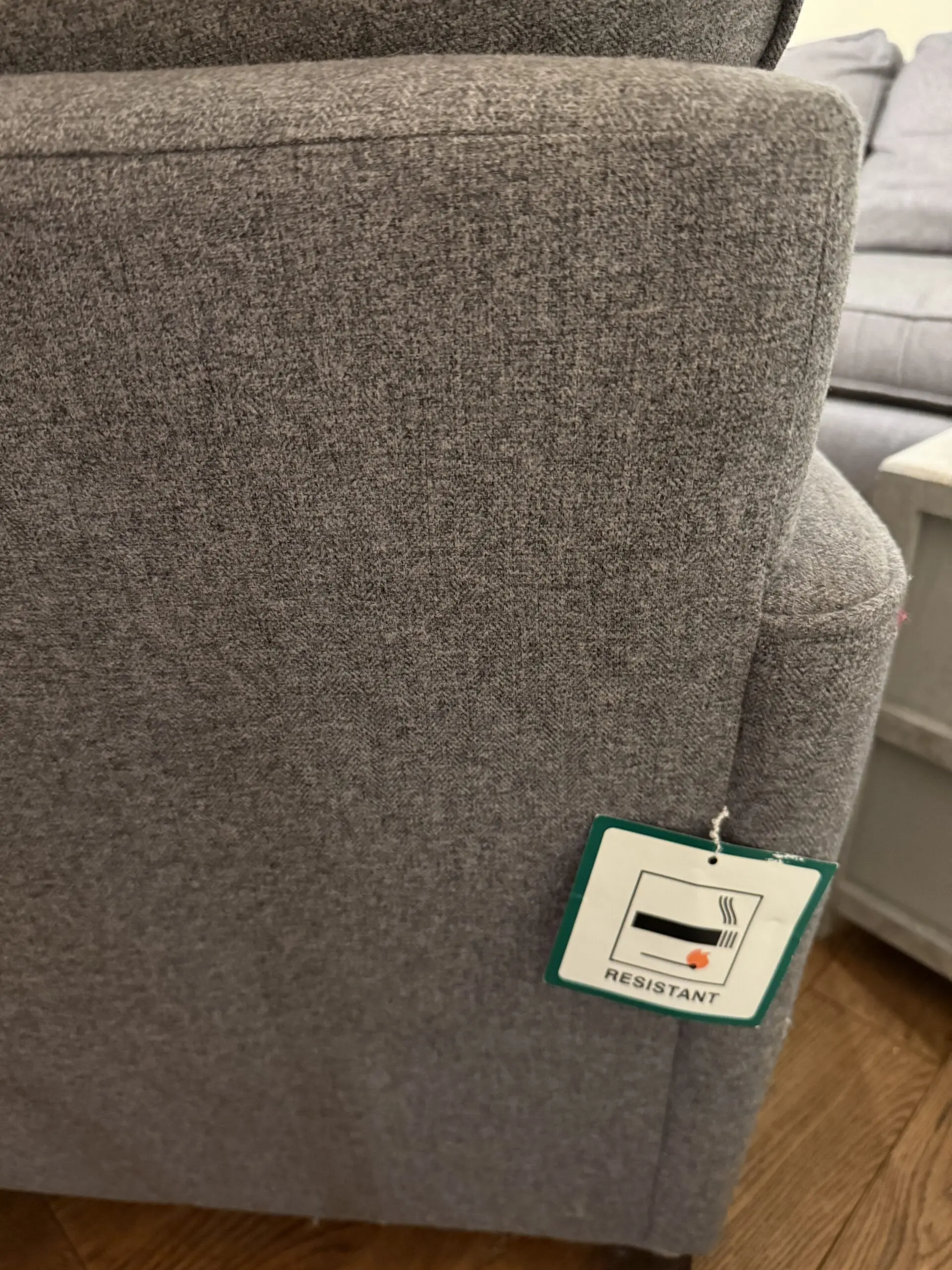 Chair has had a small incision made in the fabric that covers the underside of the chair (in order to recover an iwatch that had fallen inside)! Obviously this cannot be seen and does not affect the use of the sofa in anyway, but I want to be as honest as possible. Thank you