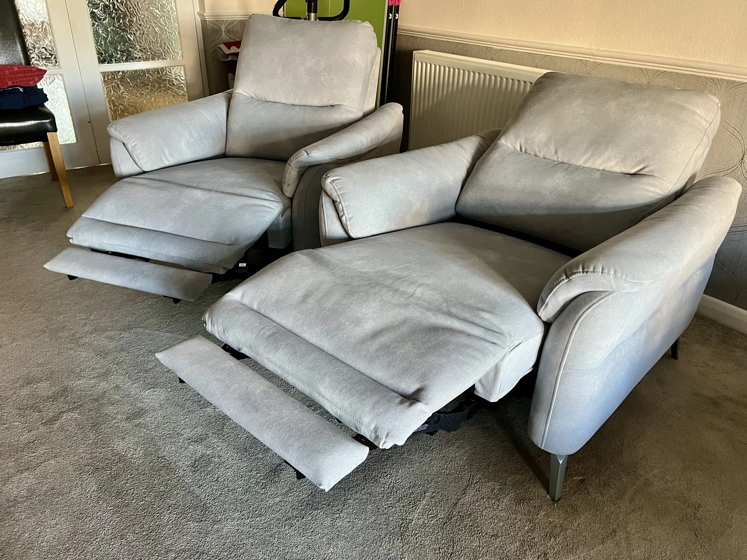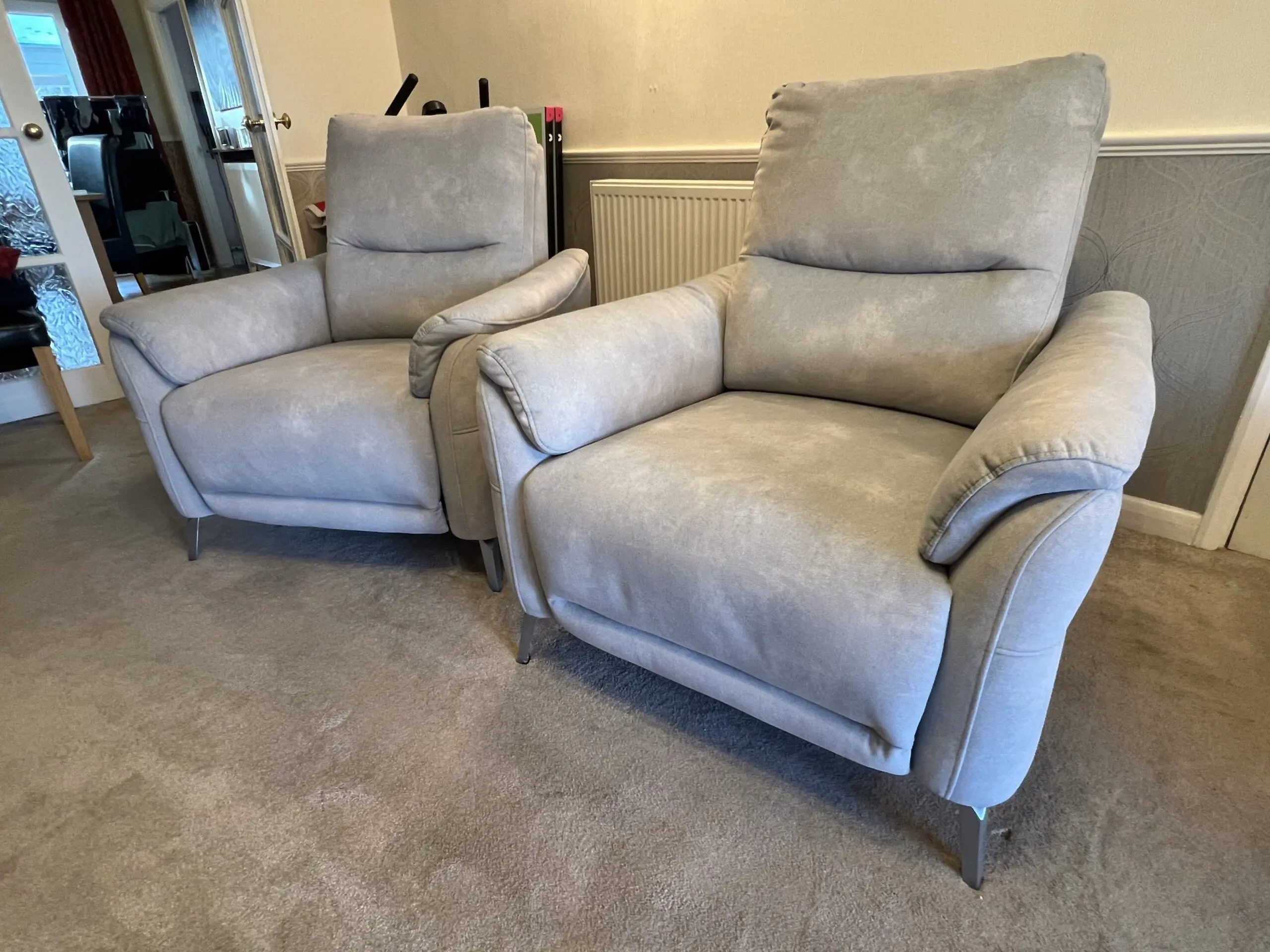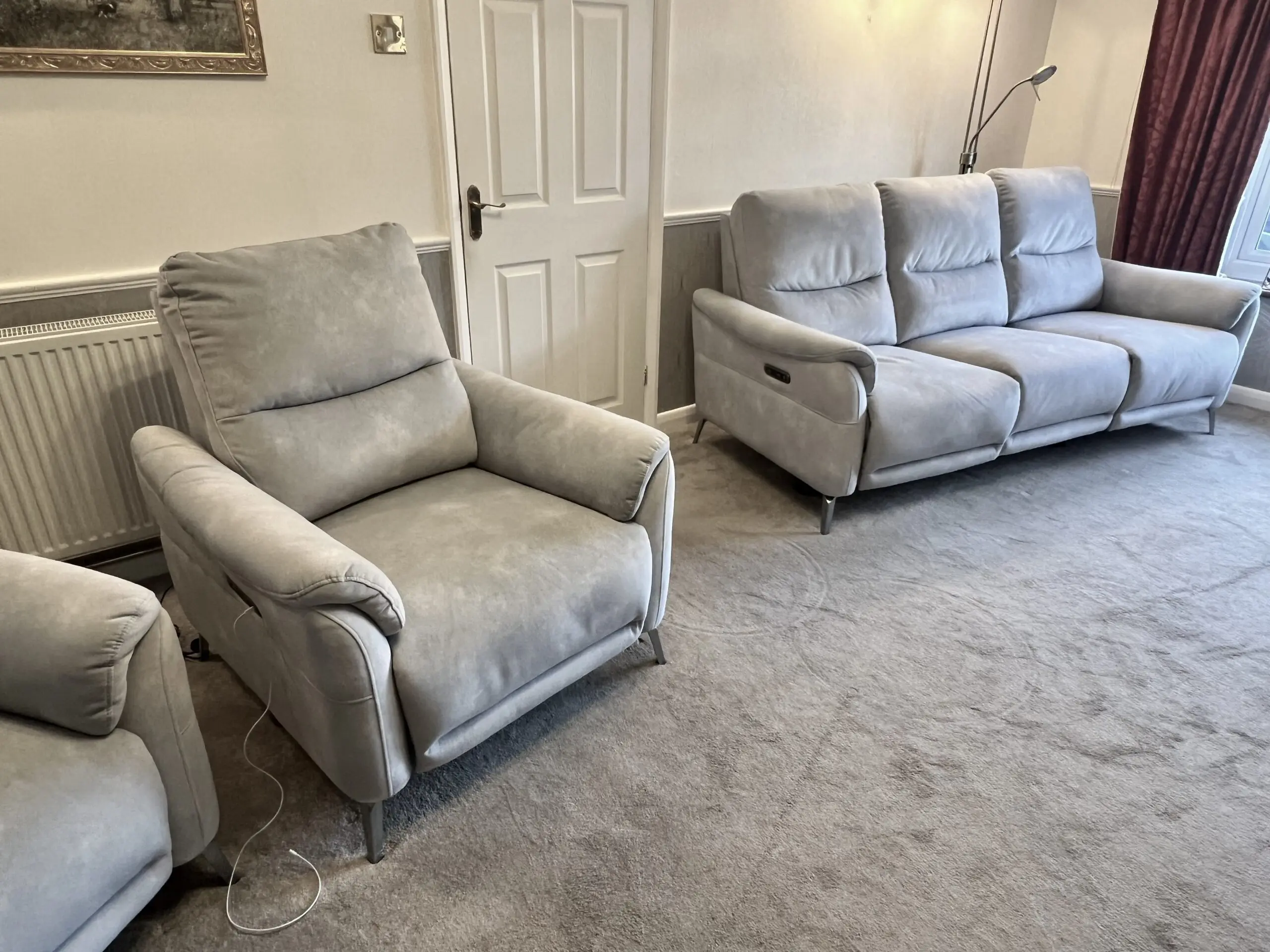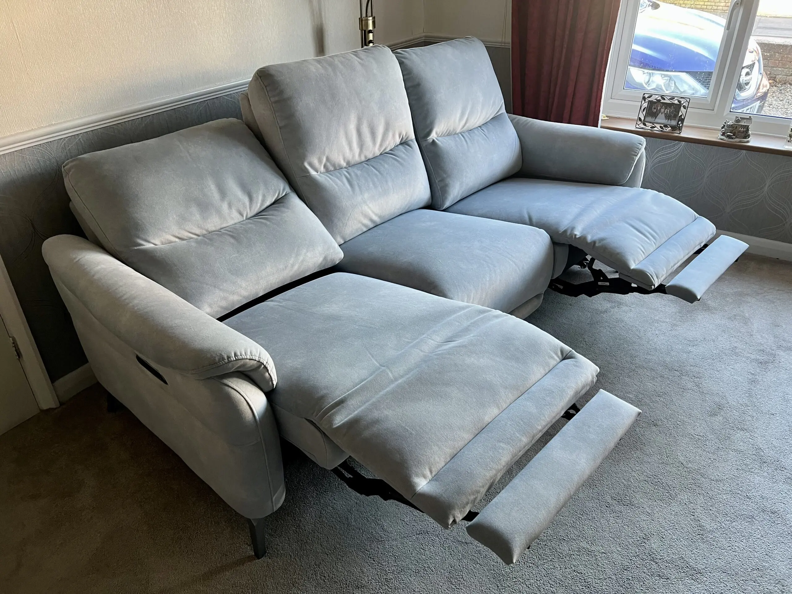 Mainly used one seat of sofa and one chair so the chair cushioning has not yet fully softened throughout the suite. There is still a little noise to the recliner actions caused by fabric/fabric contact but told to expect this to ease with use.
