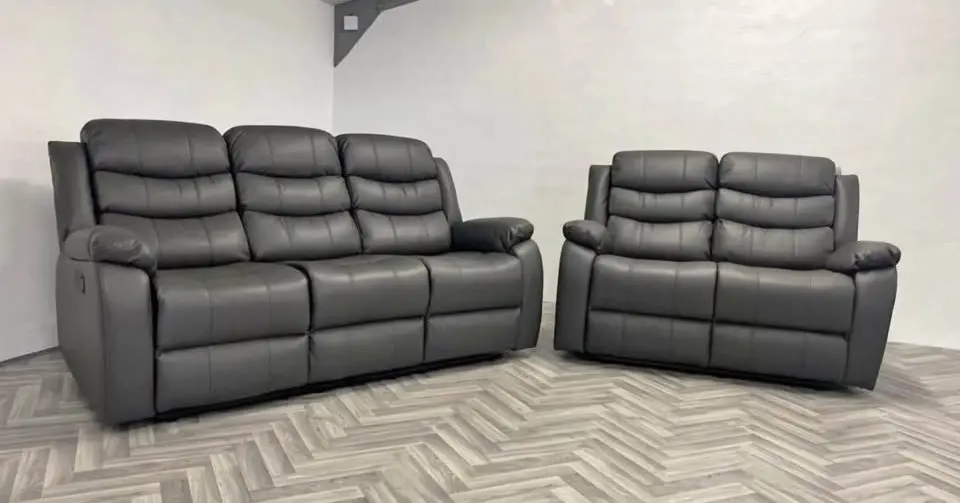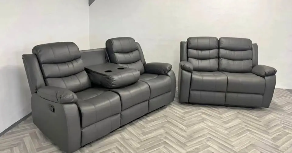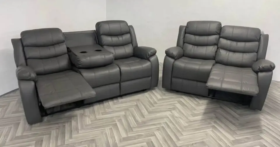 Grey 3+2 Leather Recliner Sofa Set with cup holders
