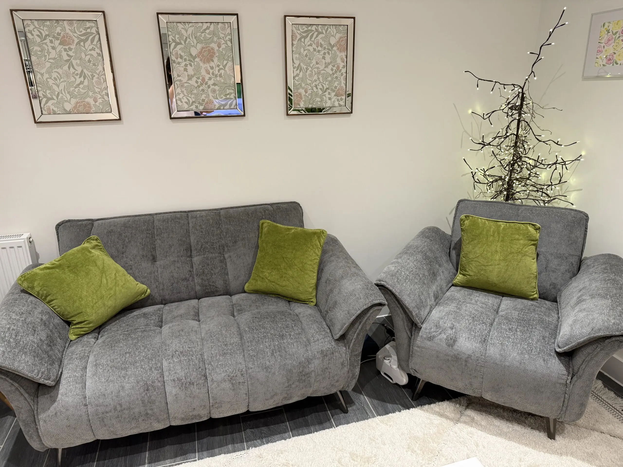 Great condition 2 and one seater sofa set, no pets /smoker. Very clean previous owner, only a year old.