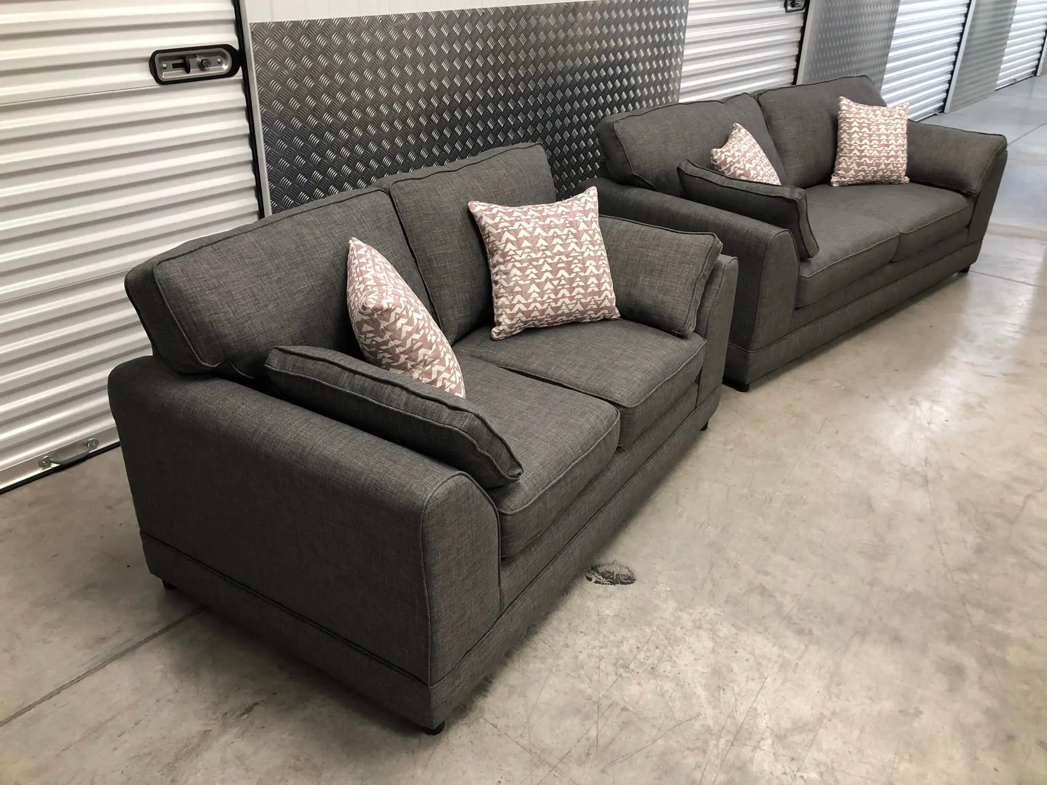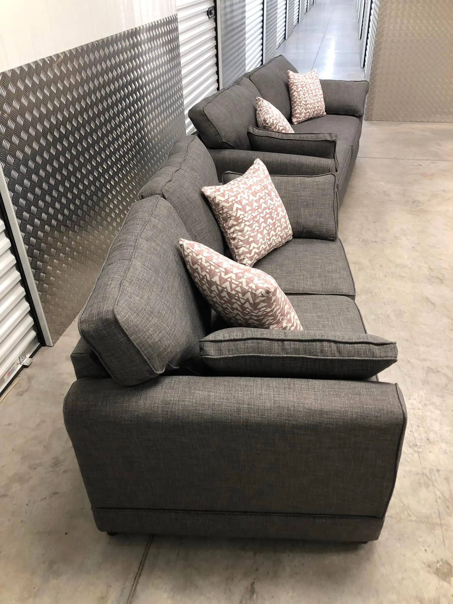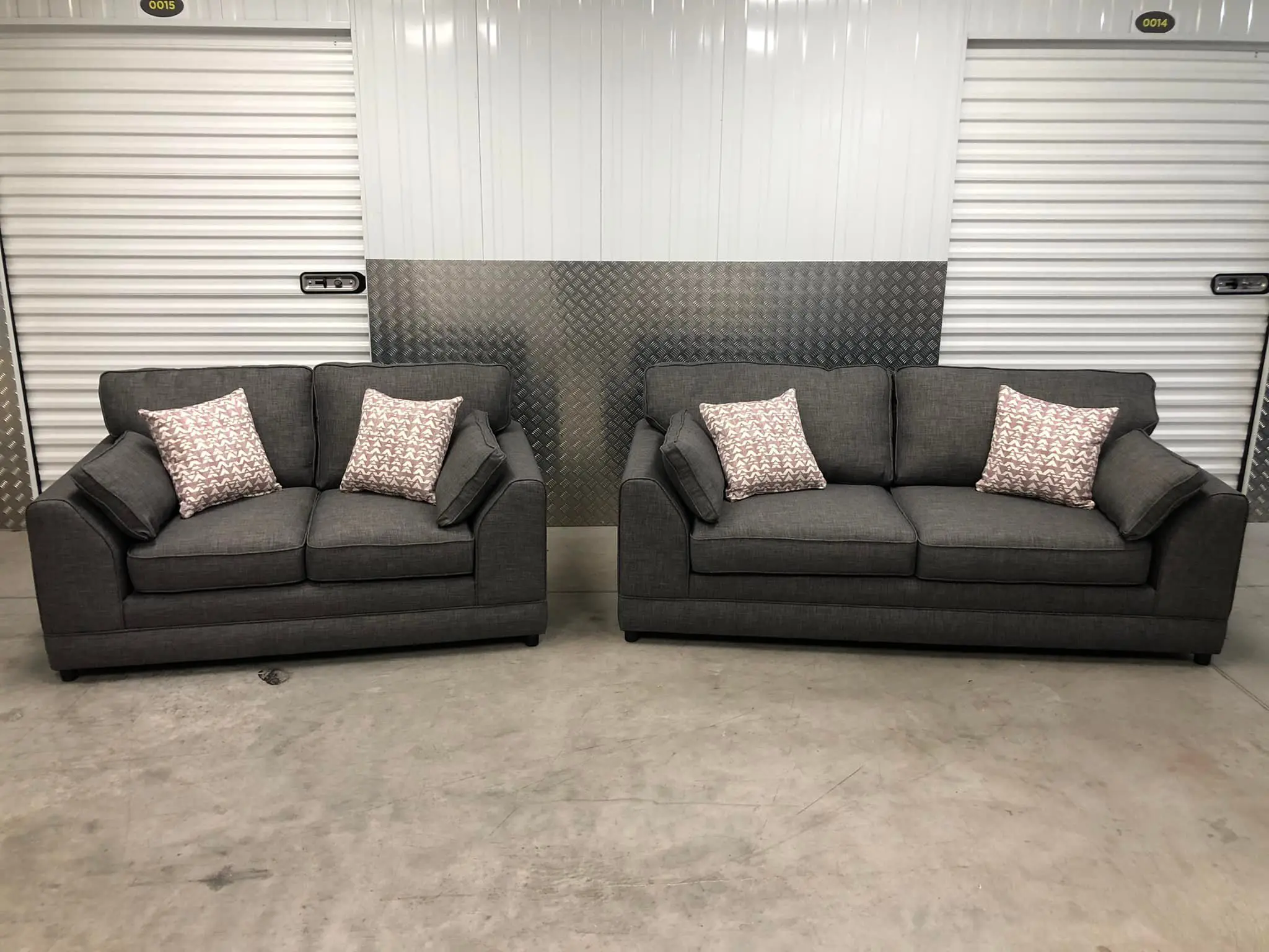 Upholstered in soft touch linen fabric, available in Charcoal or Mist.