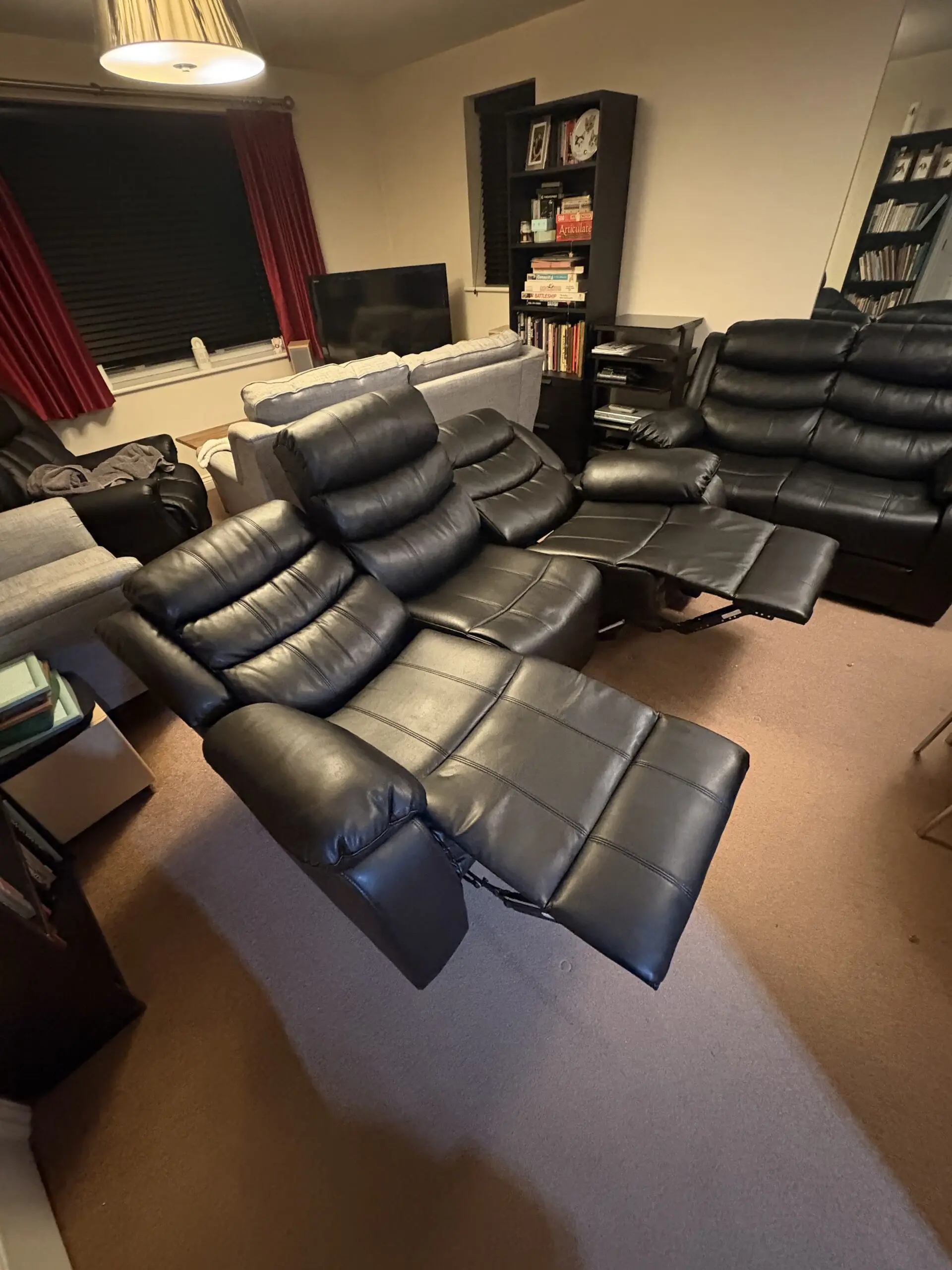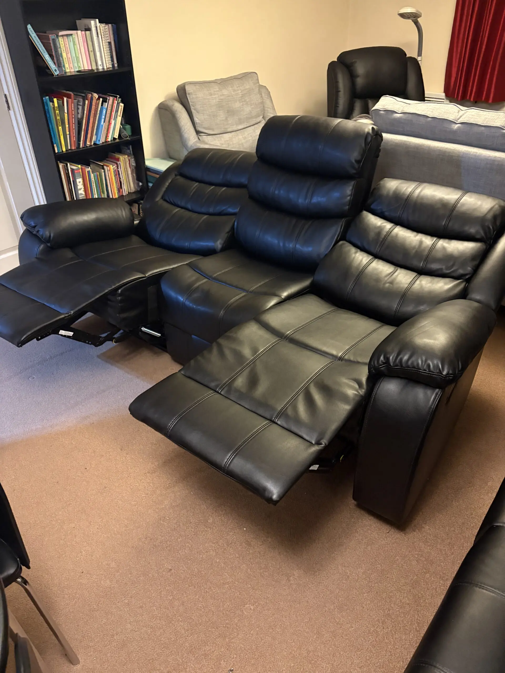 Leather Air Black 3+2 Seater Vista Manual Recliner Set.