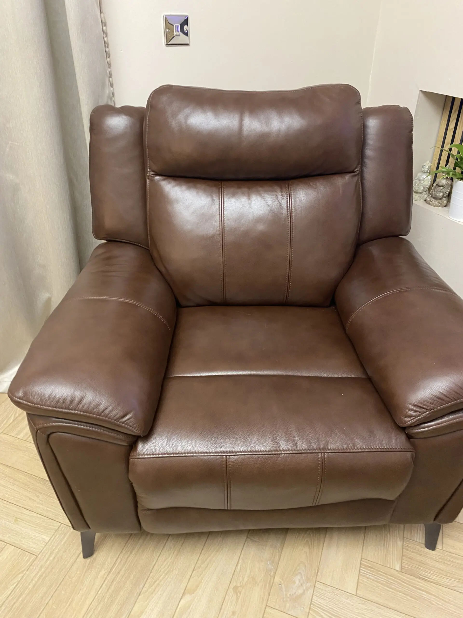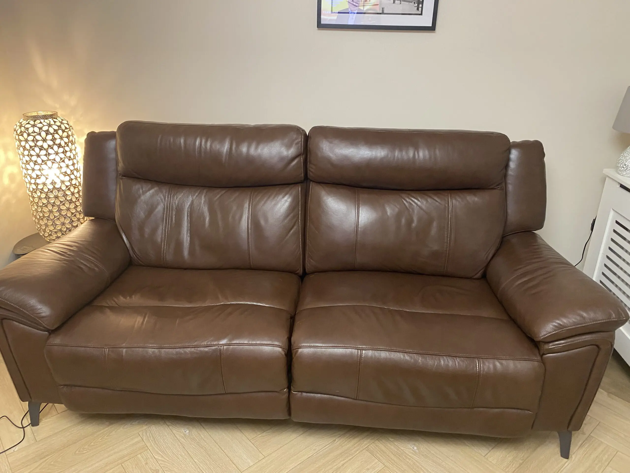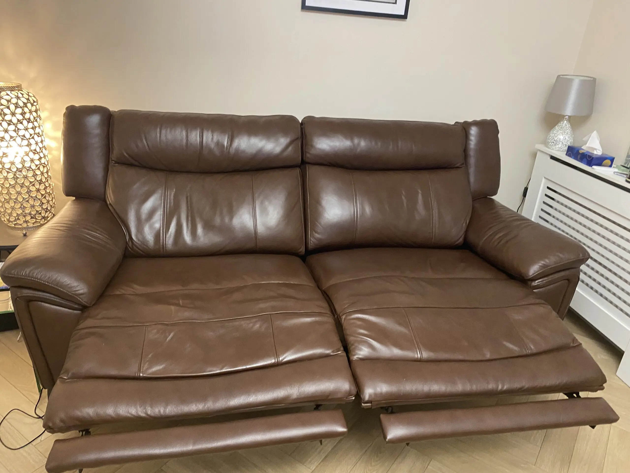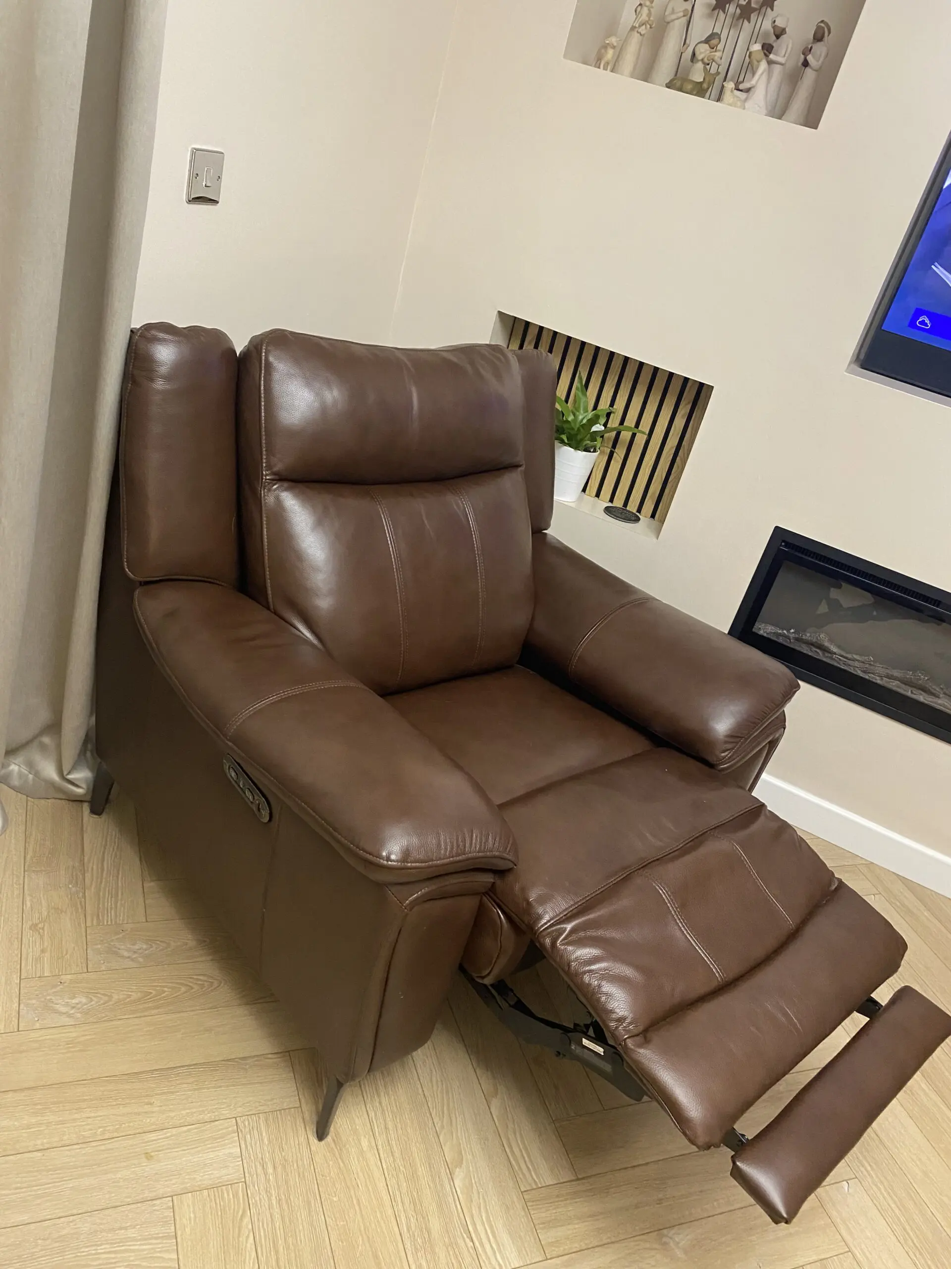 Selling due to downsizing. 3 seater power recliner sofa and power recliner chair. 1.5 years old. Immaculate condition. From smoke free home. USB charge port on chair and both sides of sofa included on controls. See images.