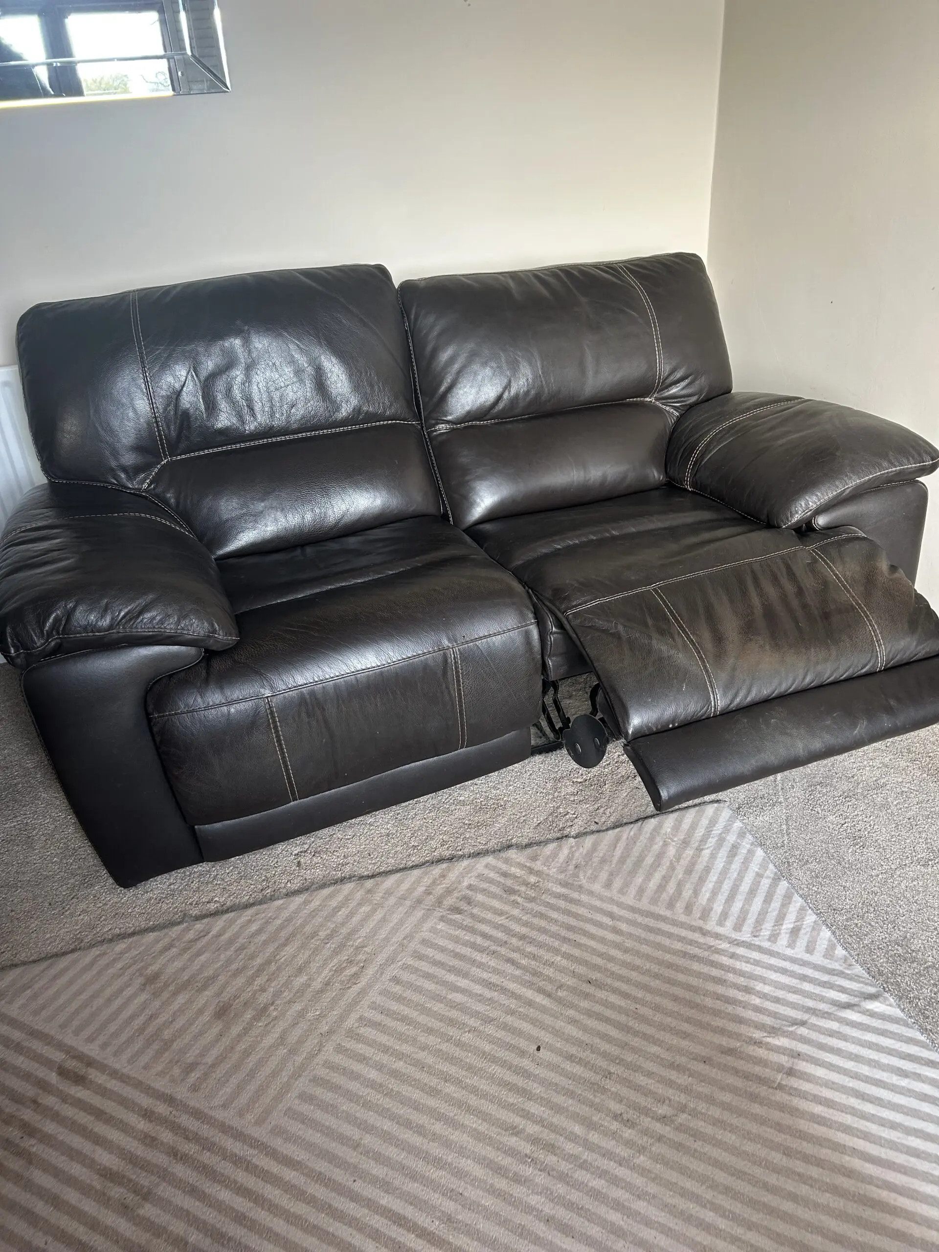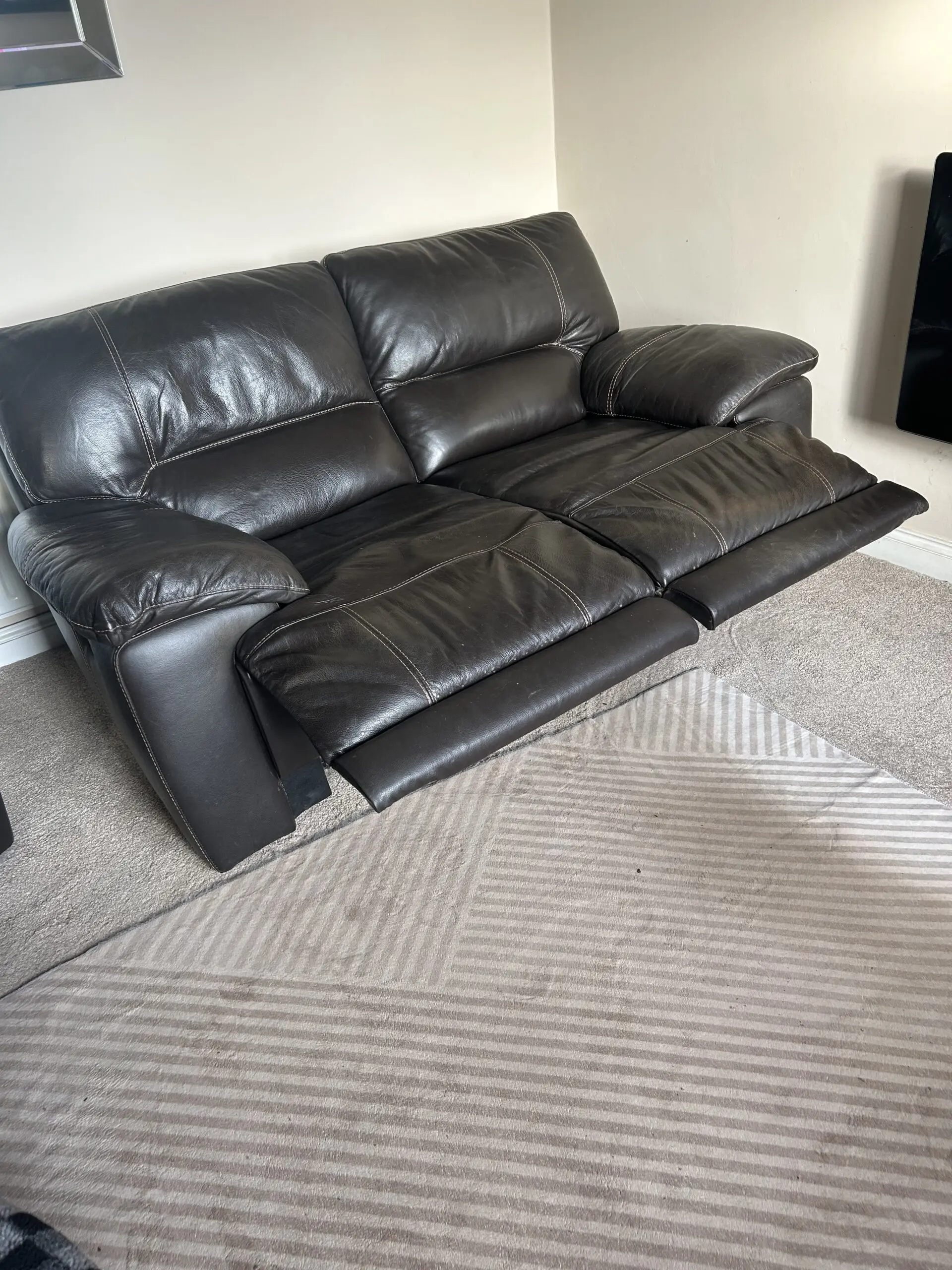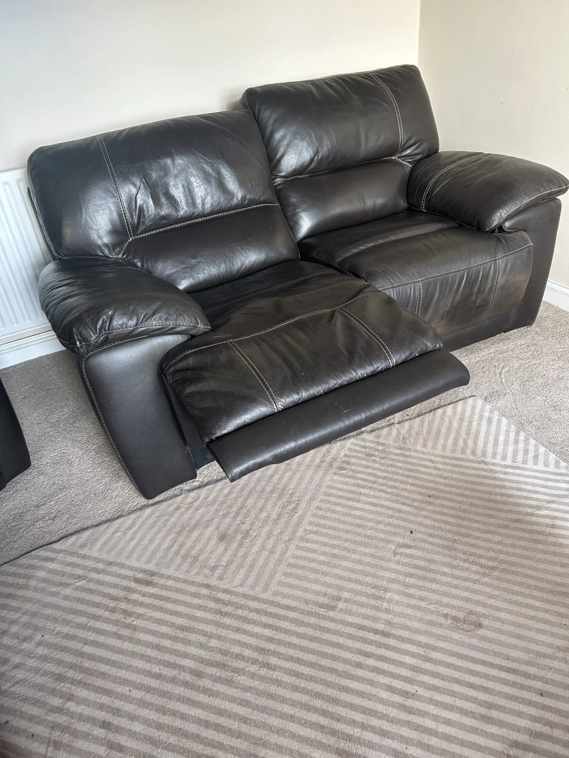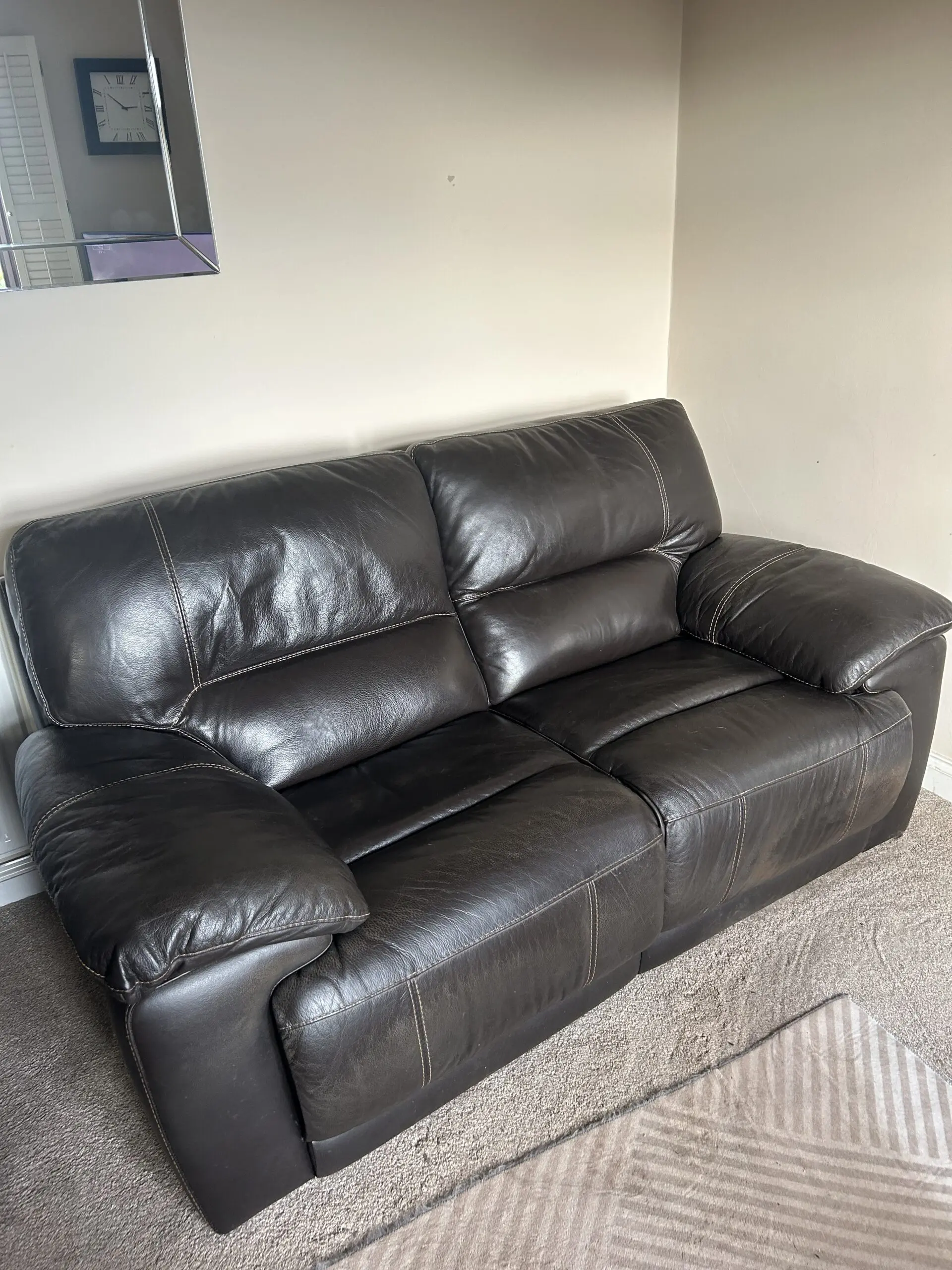 Leather 2 seat manual recliner sofa in Verona Brown purchased from Sofology in July 2016 as well as a powered armchair and a storage footstool in the same colour.