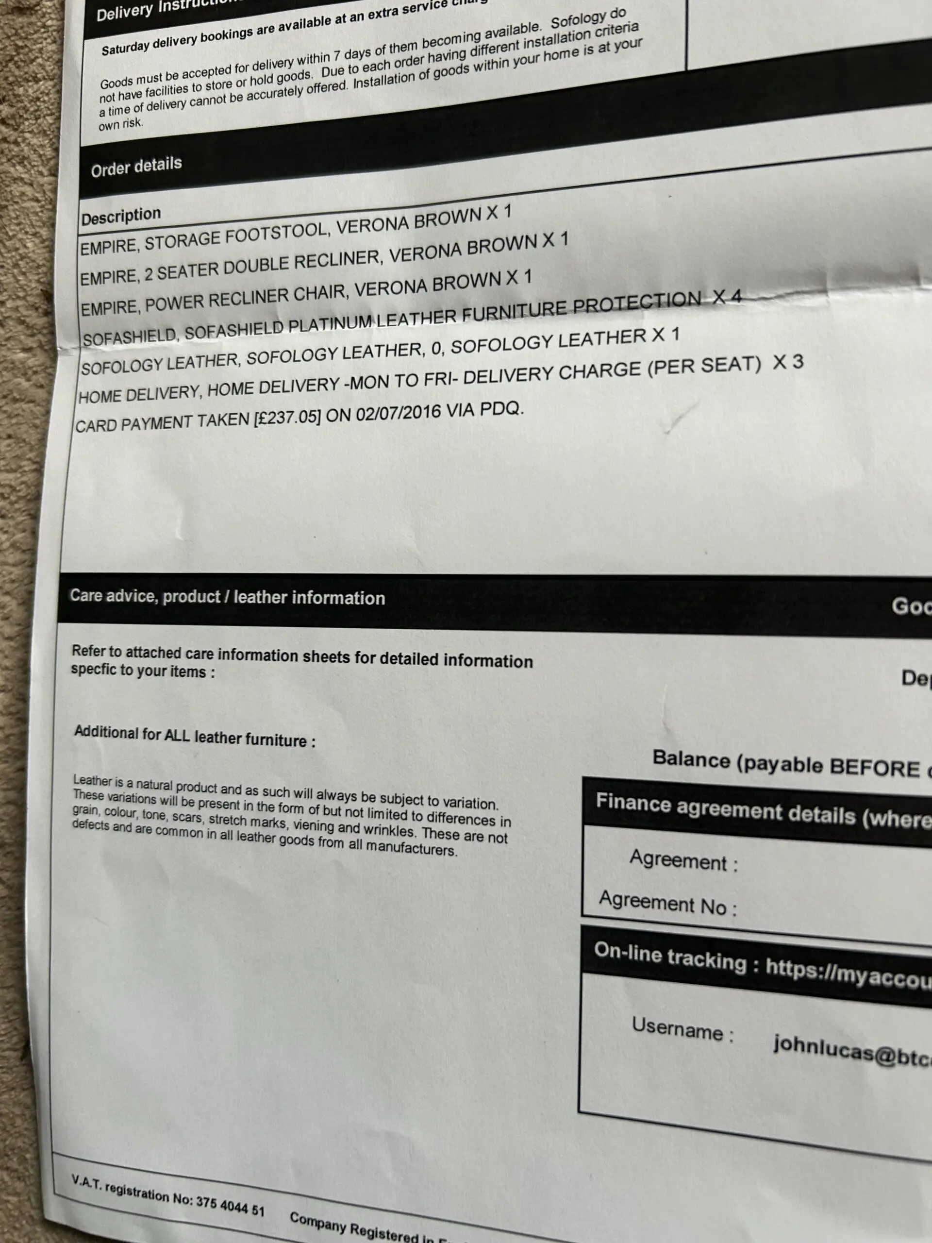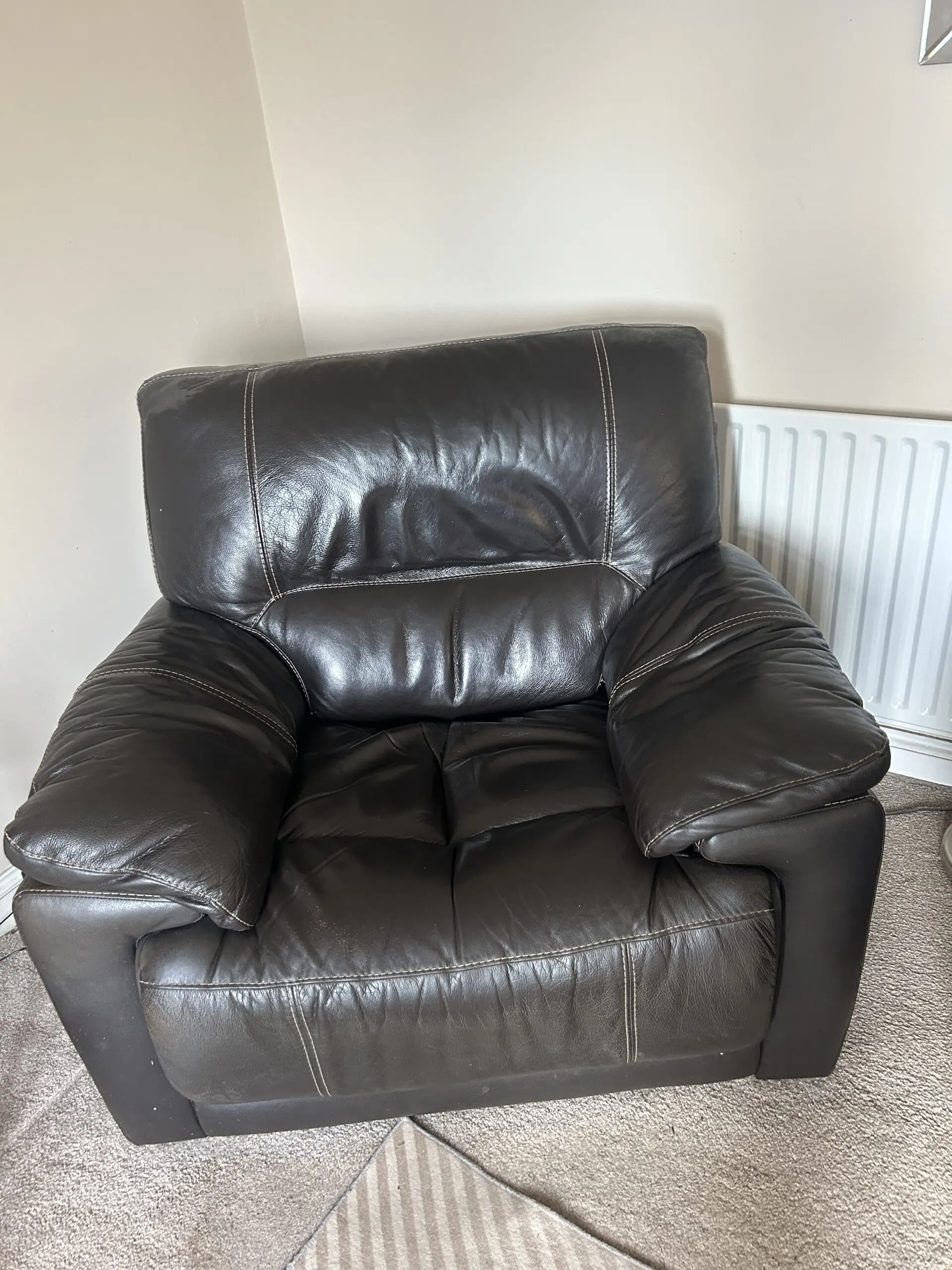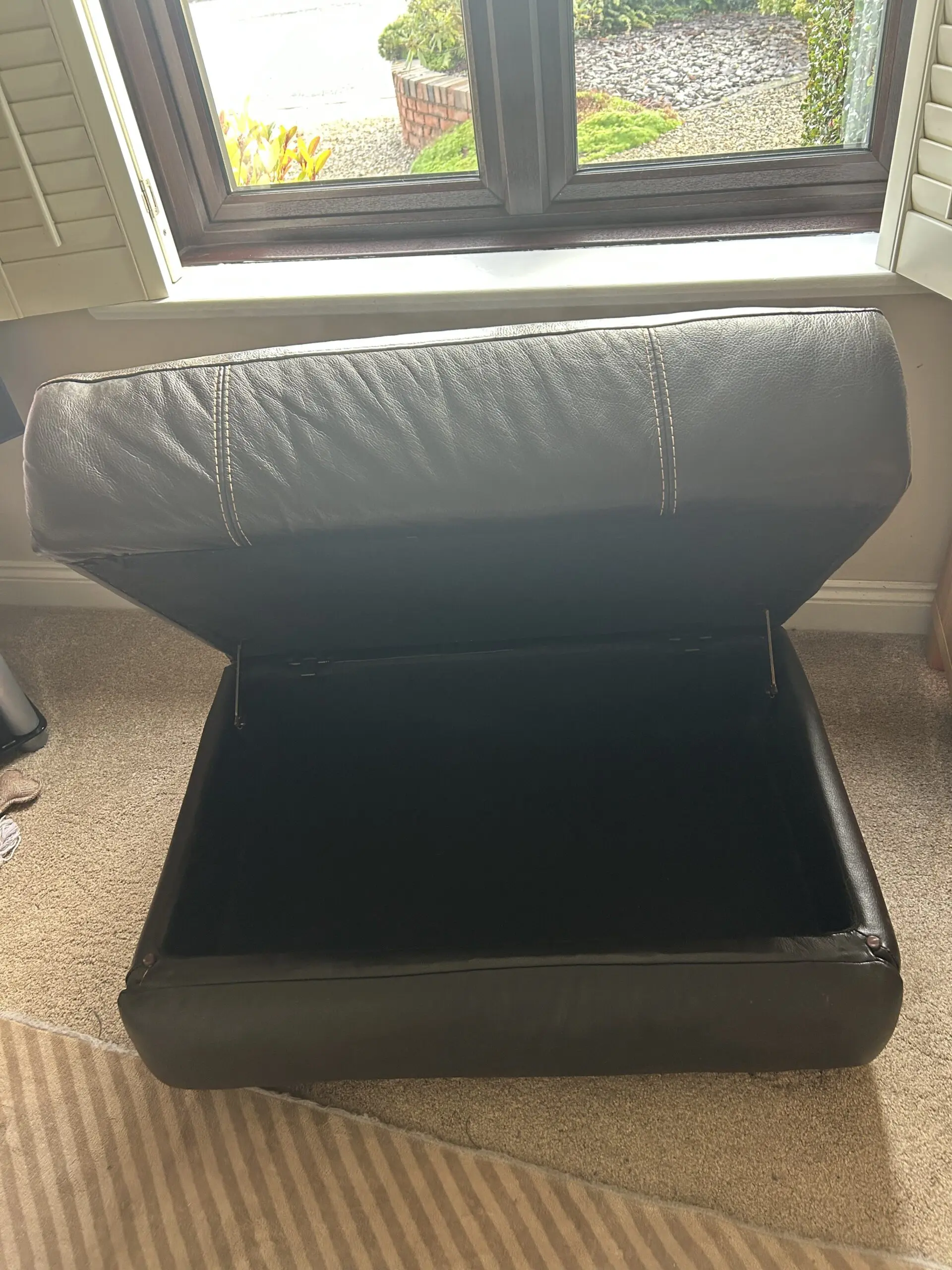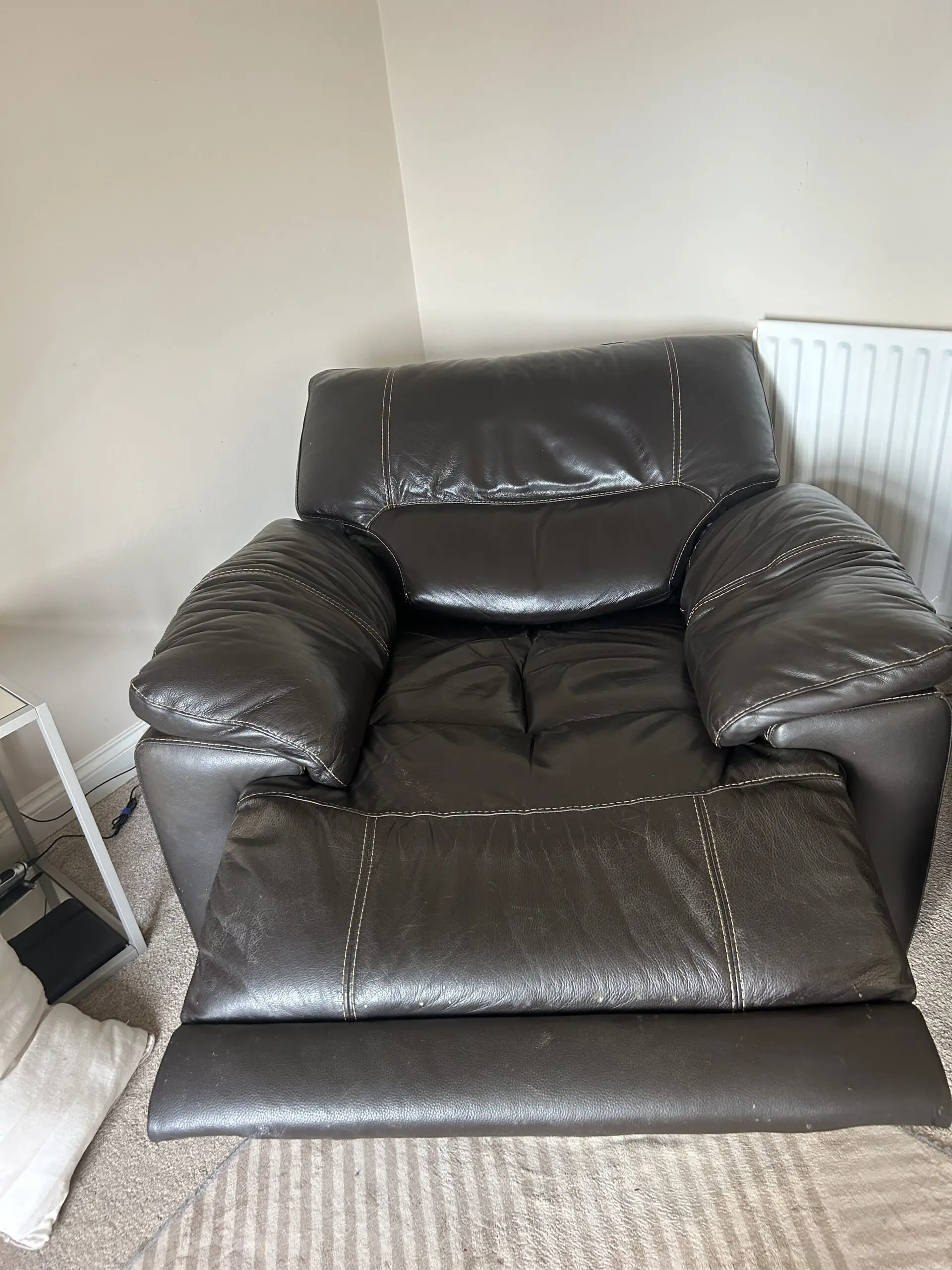 Leather 2 seat manual recliner sofa in Verona Brown purchased from Sofology in July 2016 as well as a powered armchair and a storage footstool in the same colour.