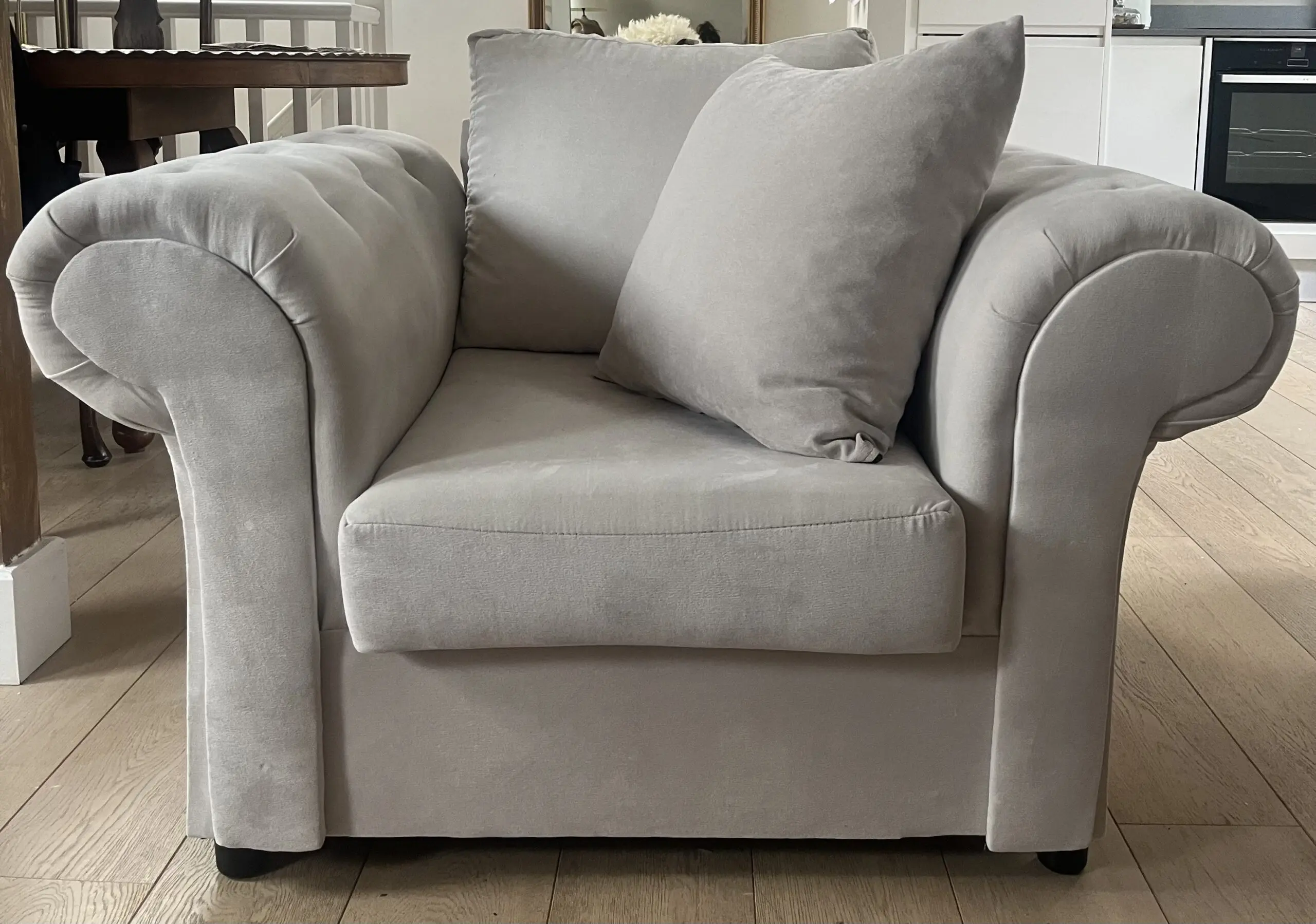 Light Grey Set of Chesterfield Style Sofa & Armchair