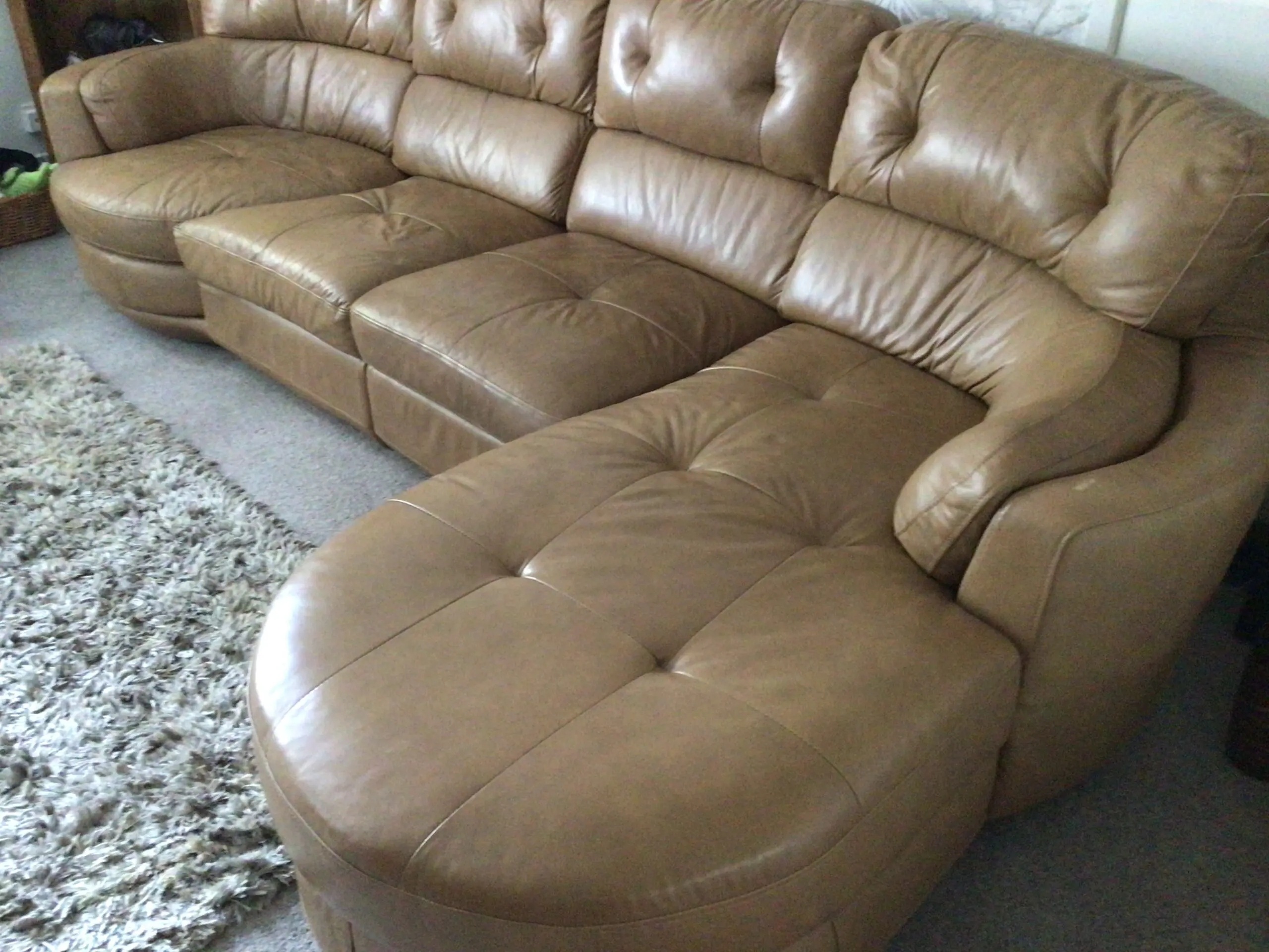 Purchased from Cousins, four seater leather settee and separate chair .One seat of the settee is detachable and can be removed as in photo