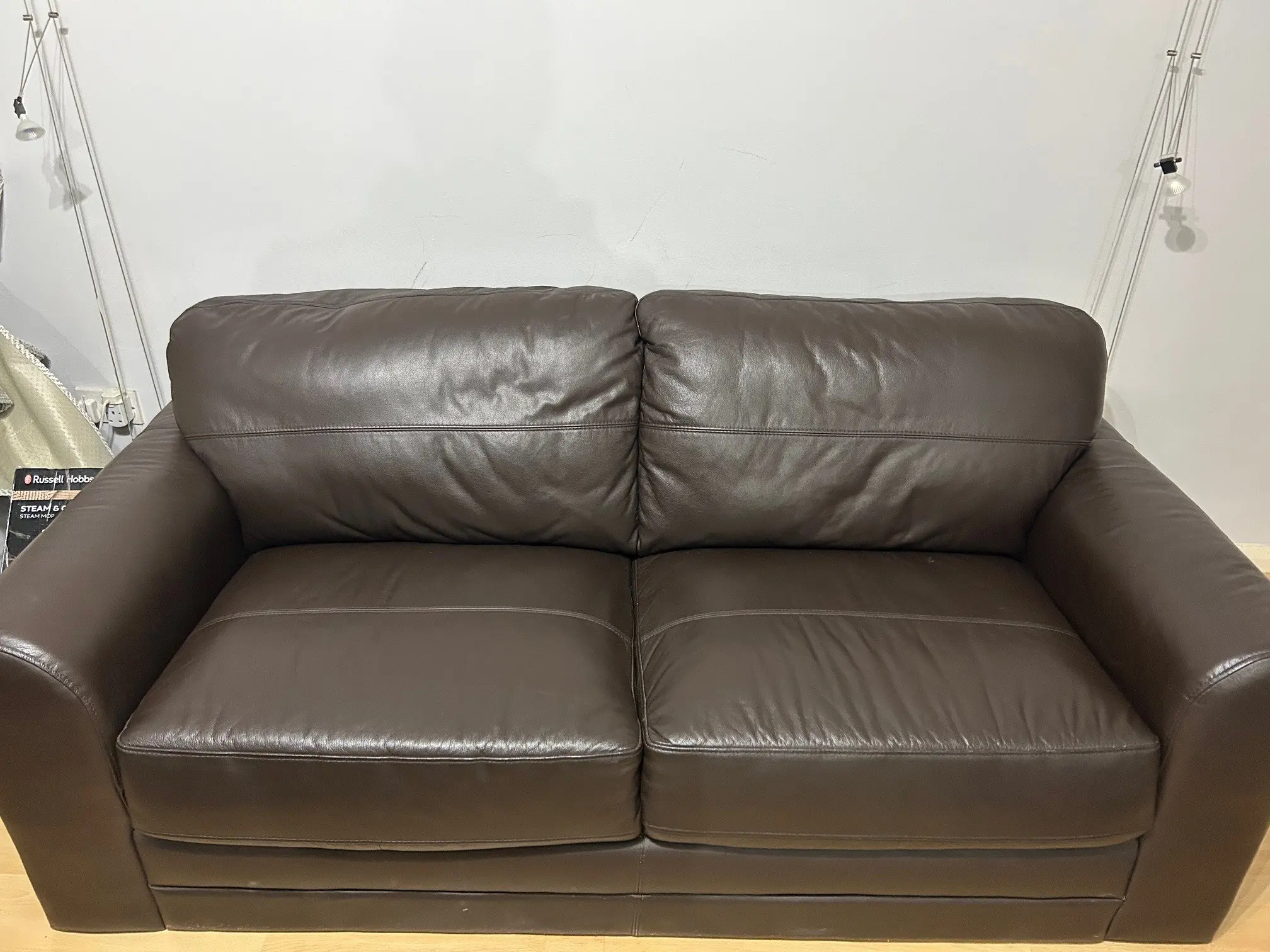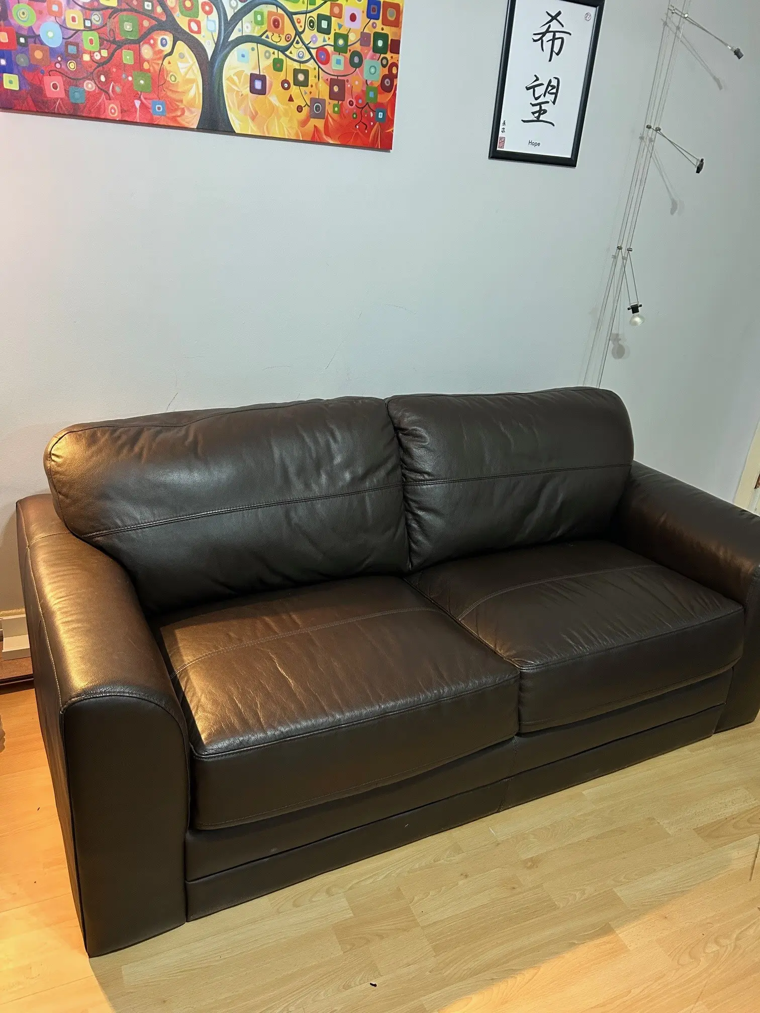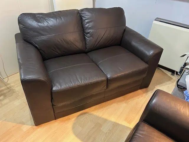 This leather sofa set is in mint condition.