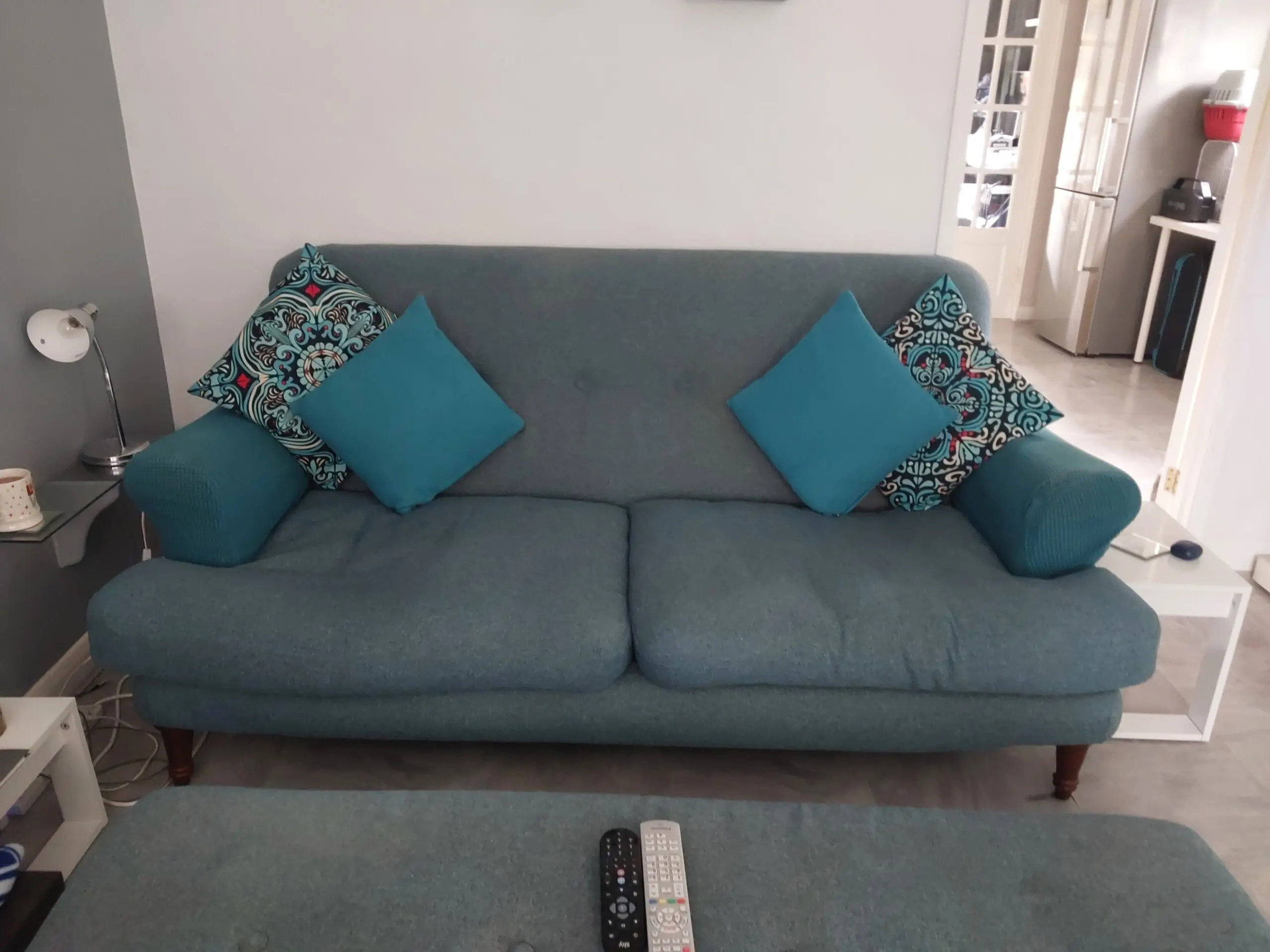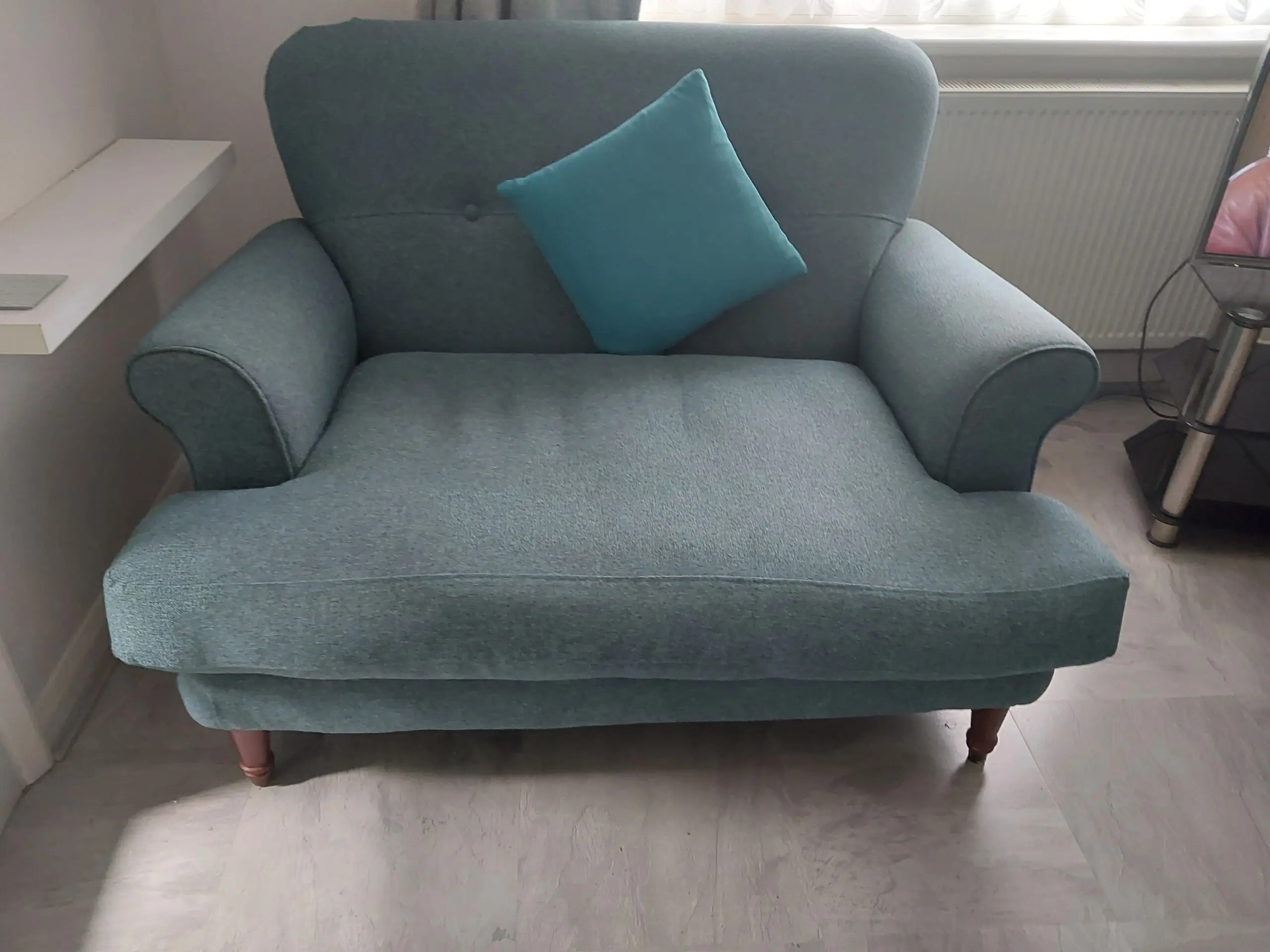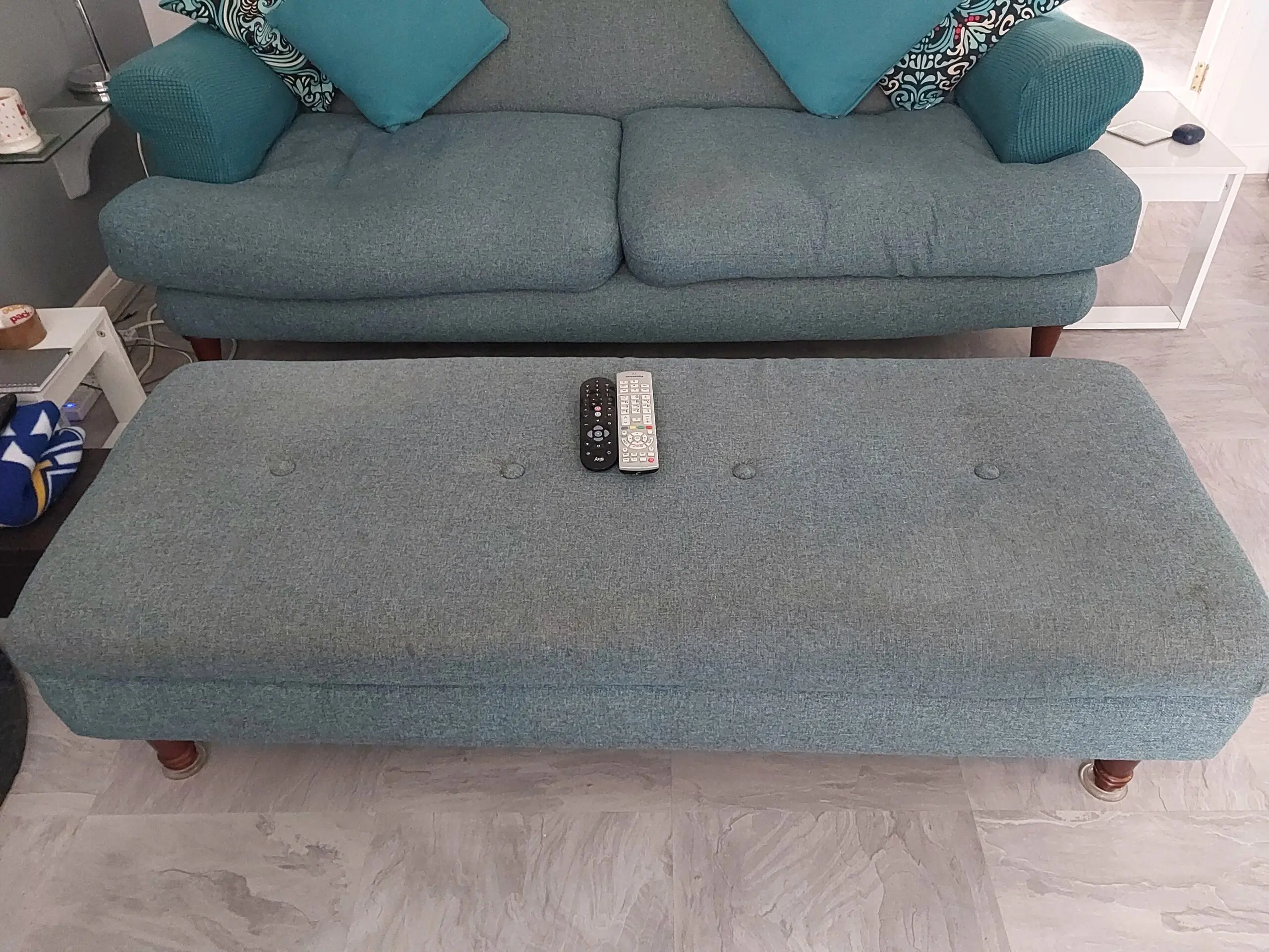 Very comfortable suite , cushions covers can be removed for easy washing .Bought new for 2500.00 had for 7 years , no holes , small tear underneath foot stool not visible when displayed.