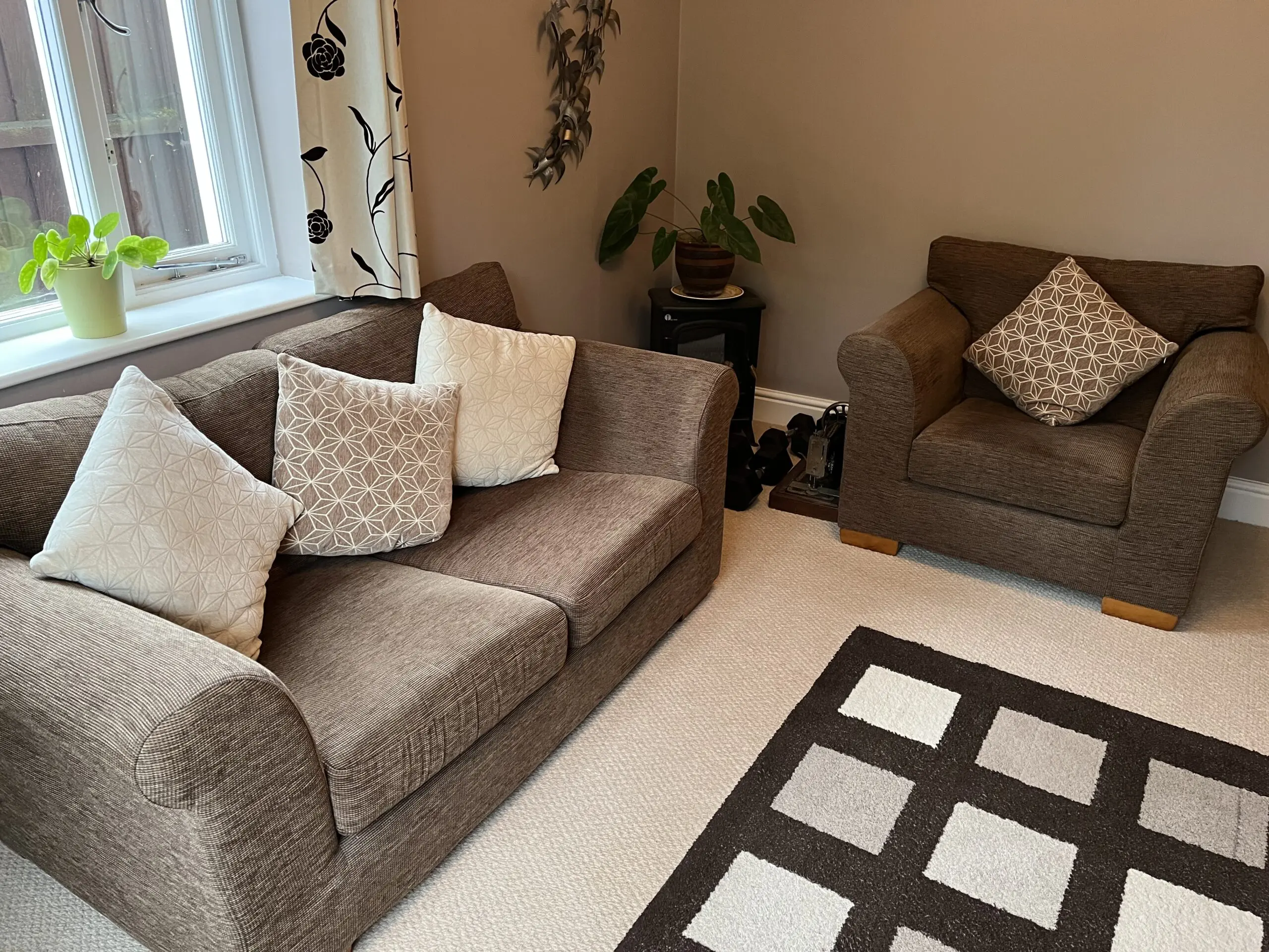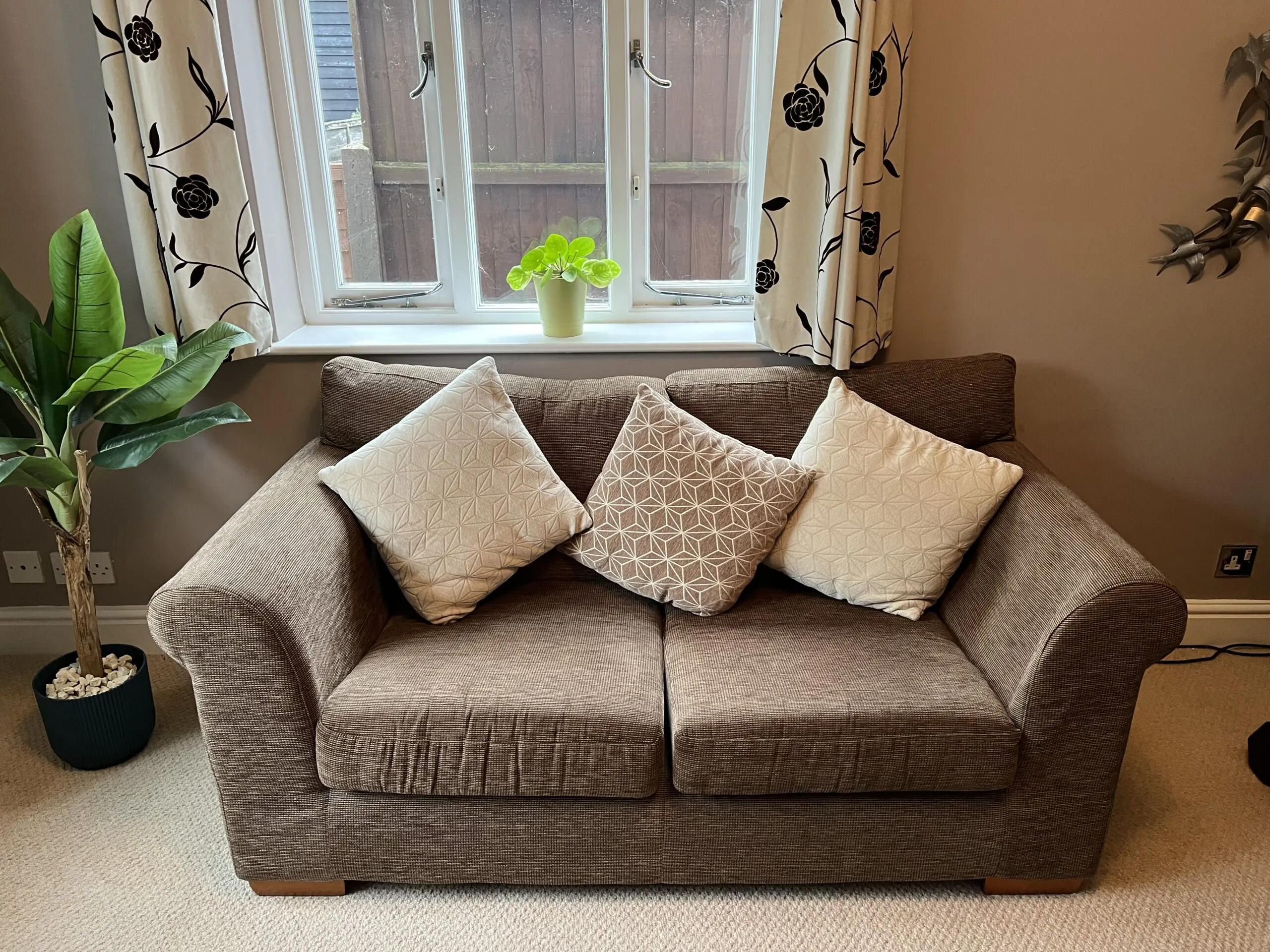 Next Comfy Brown Sofa & chair in good condition (only used in spare room). Small cushions in photo are for illustration only and not included in the price