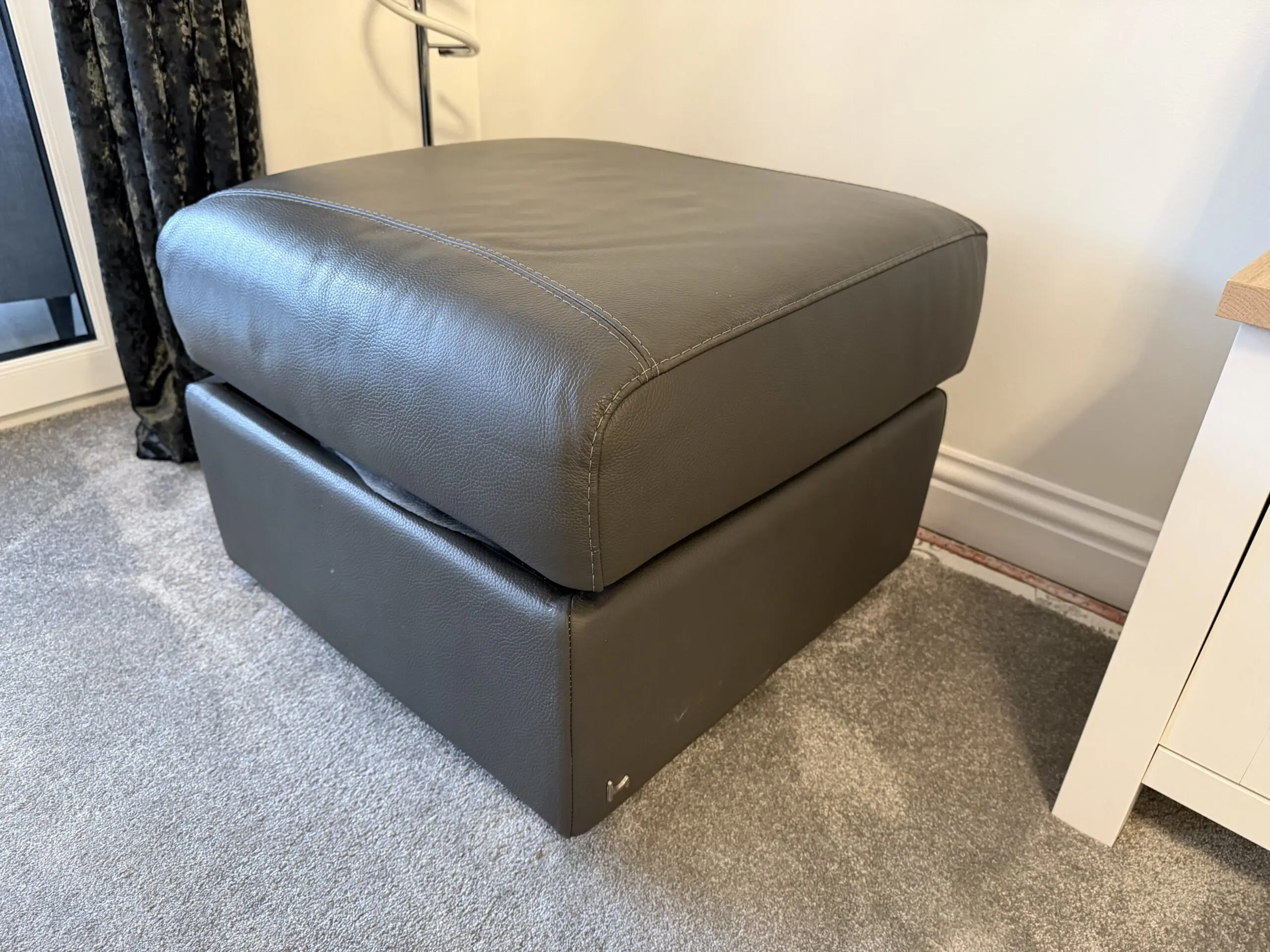 Nicoletti Pepino 3 seater & 2 Seater Leather sofa’s in Dark grey with matching storage foot stool.