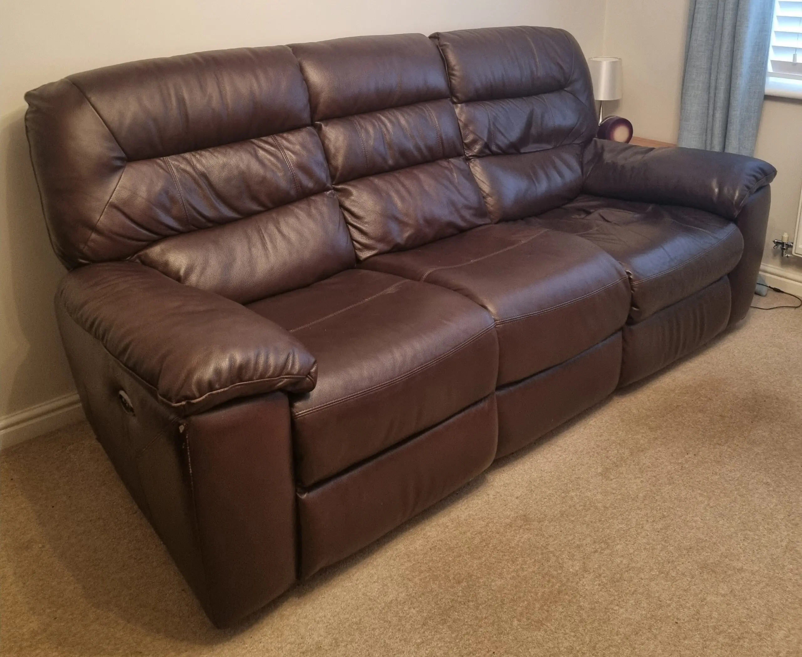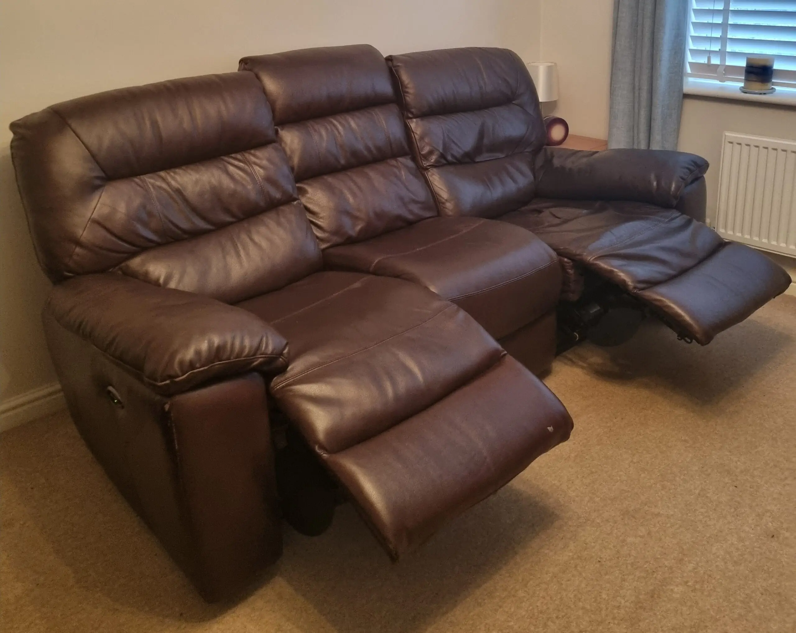 Oak Furniture Land 2 piece power recliner sofa set. 3 Seater and 2 seater. Dark Brown.