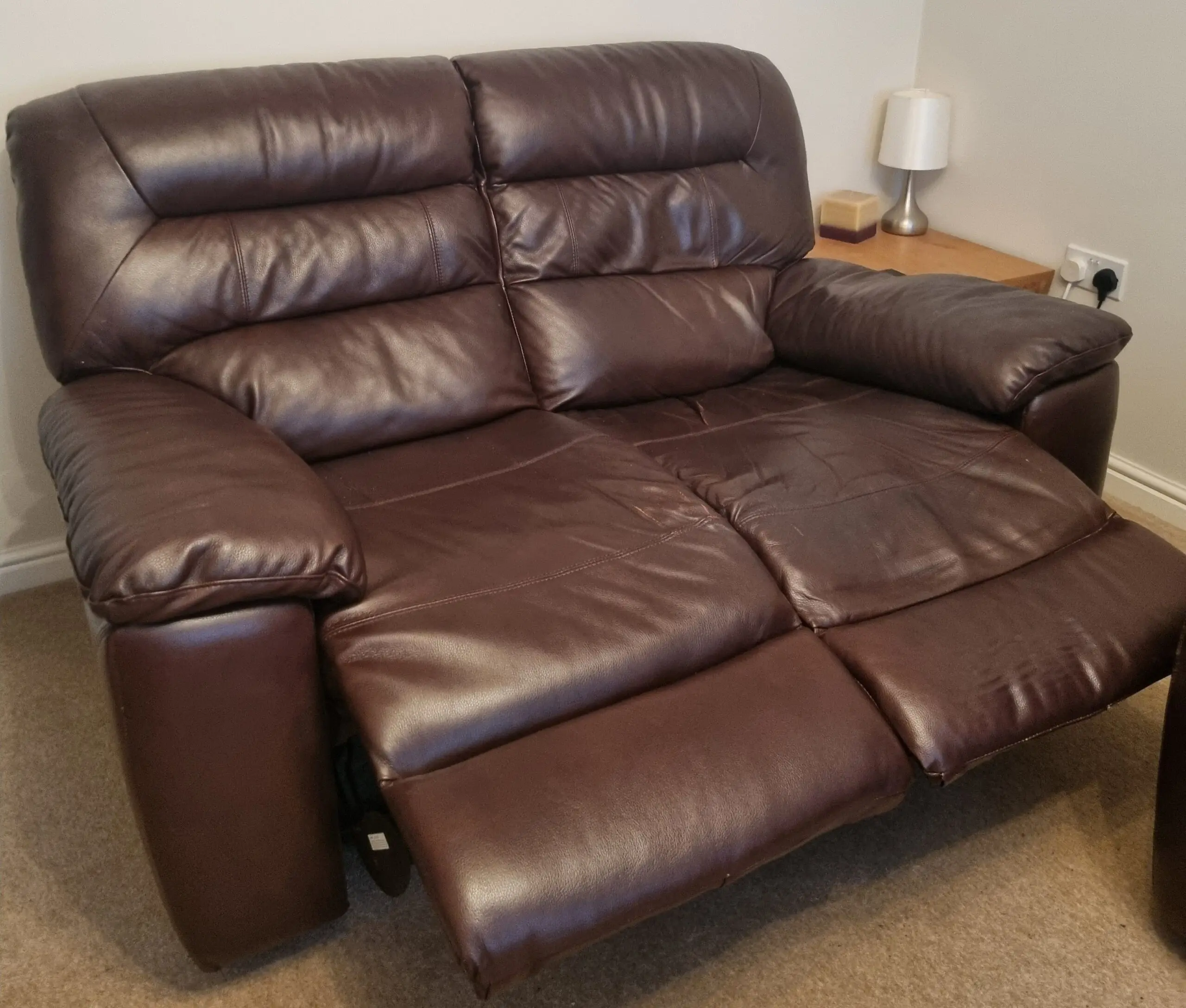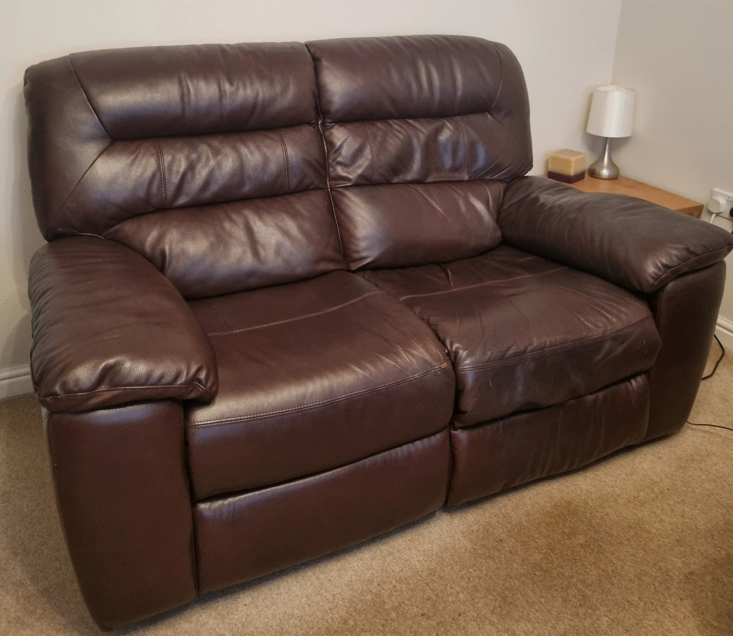 Good condition with general wear and tear and a small scuff mark on 3 seater front corner. No tears.