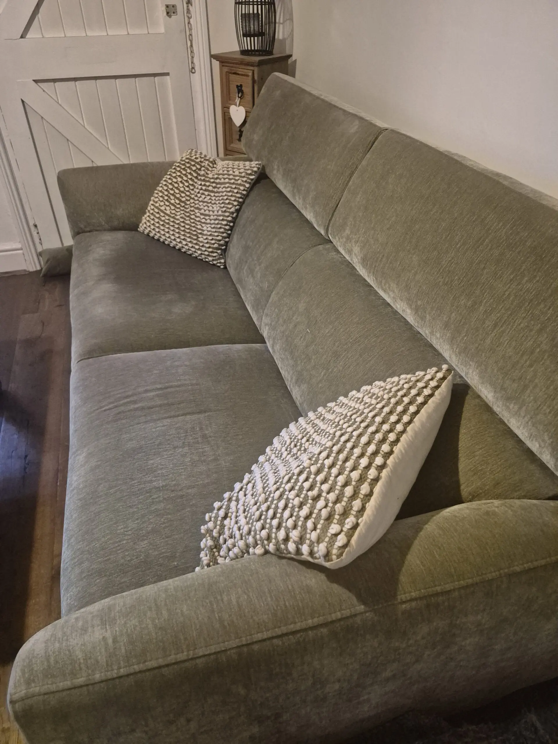 Olive green 3 seater sofa with armchair