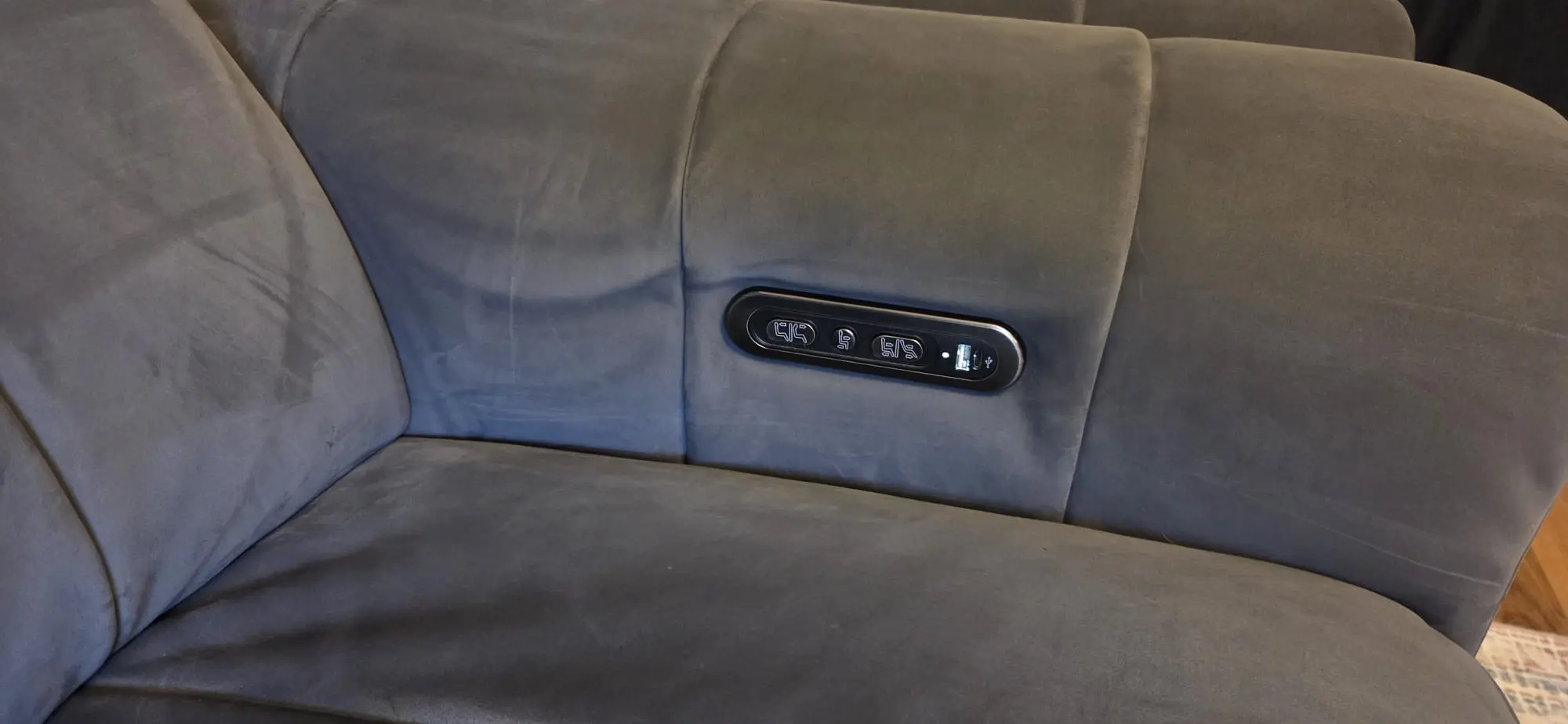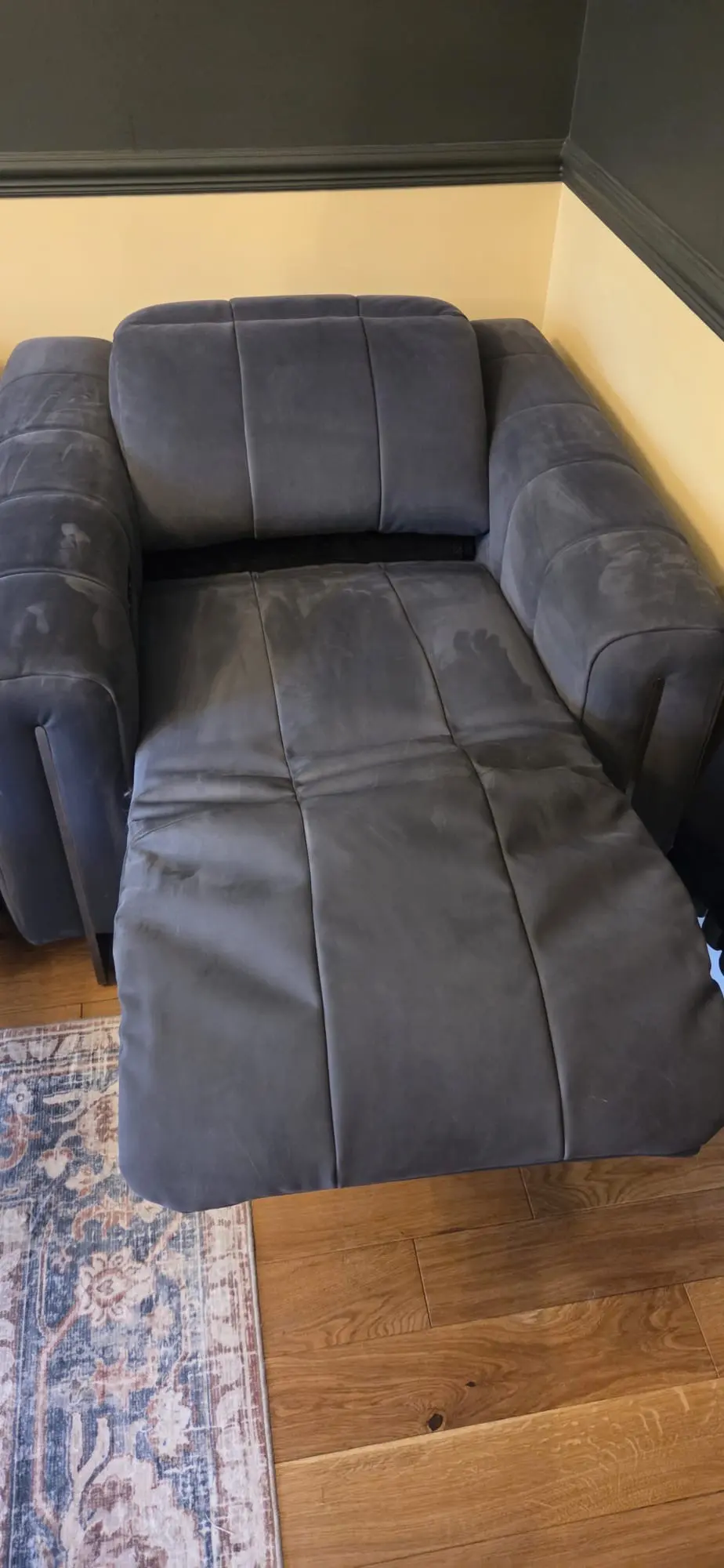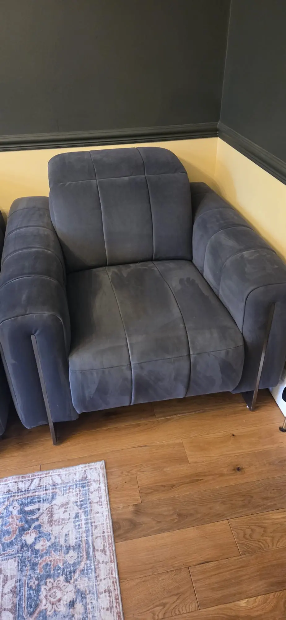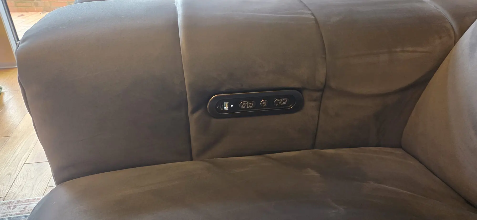 6 Month old, like new set of Paramount settees. 1x 2.5 seater Power recliner sofa, headrest, console & speakers and 2 x power recliner chairs with headrest & speakers. All in colour Charcoal with gunmetal feet. Very good condition, not had for long, only selling as they are quiet large and we are moving our living area in to a smaller room which we will not be able to fit this set into.