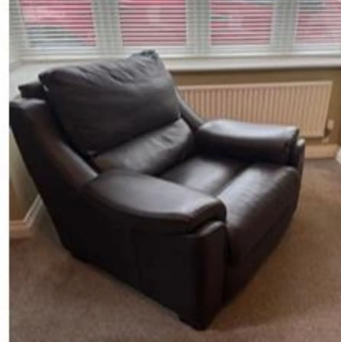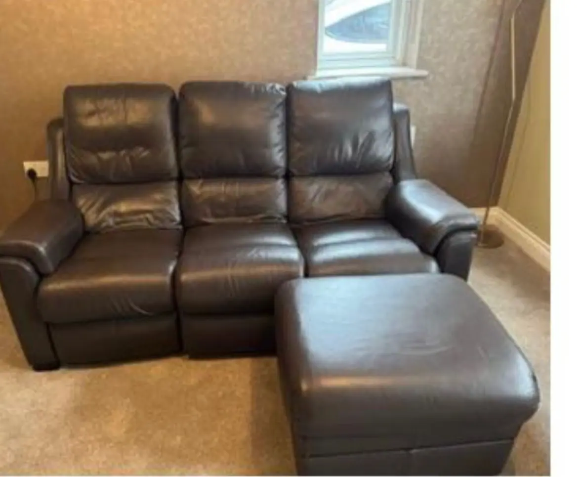 Sofa and pouffe in used condition, 1 electric recliner chair in good condition and 1 chair in excellent condition. Fair selected as some marks on the sofa seats and pouffe.