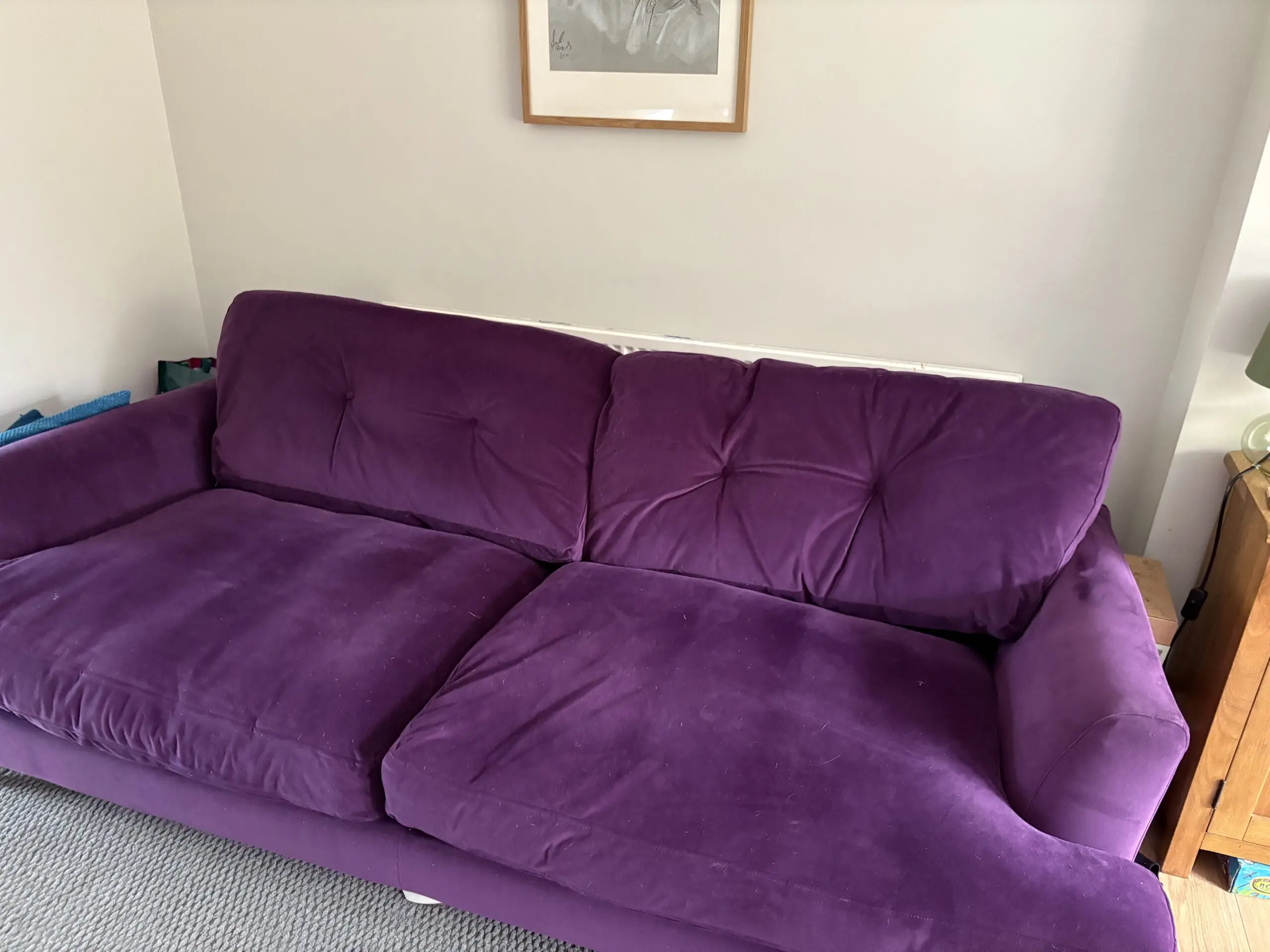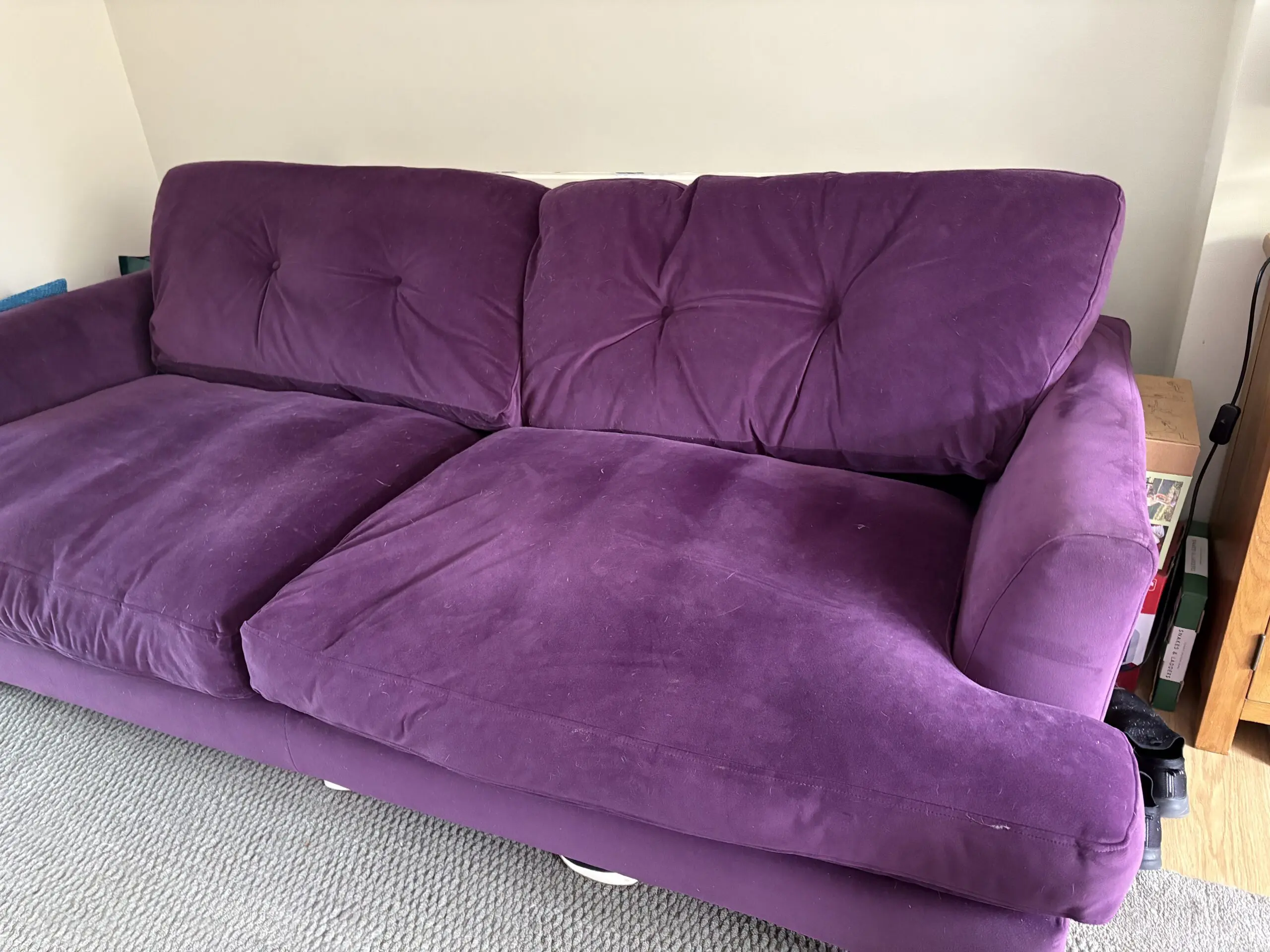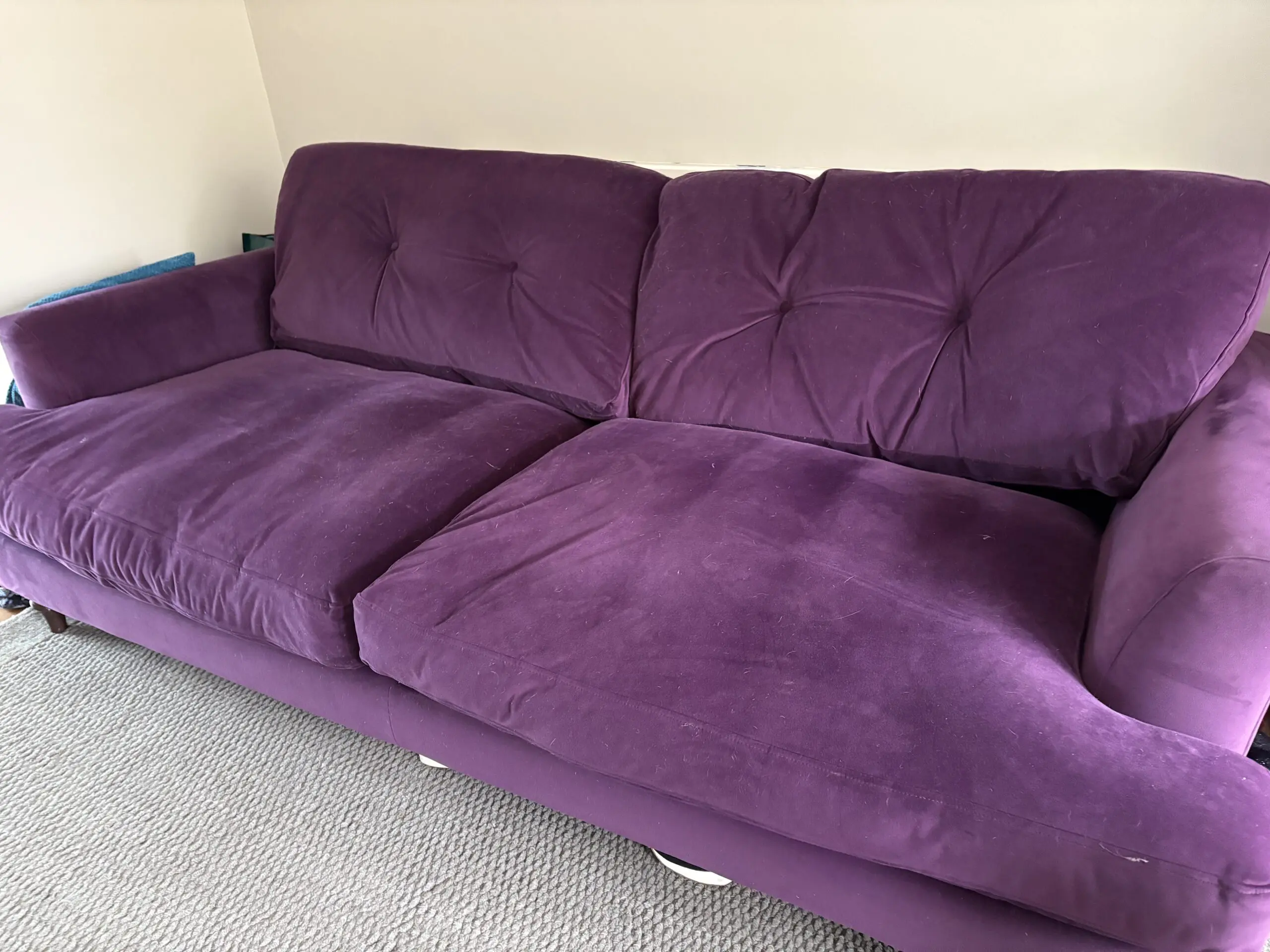 Velvet 4 seater and snuggle, comfy relaxed sofa, boho colour comes from a smoke free home