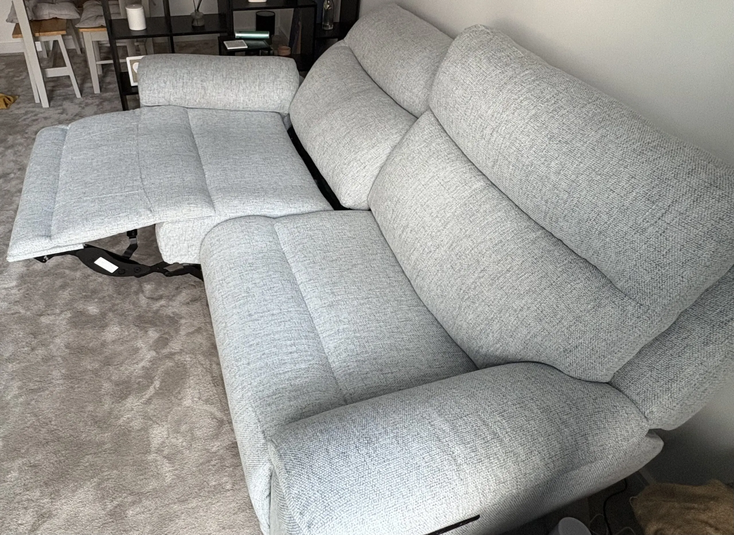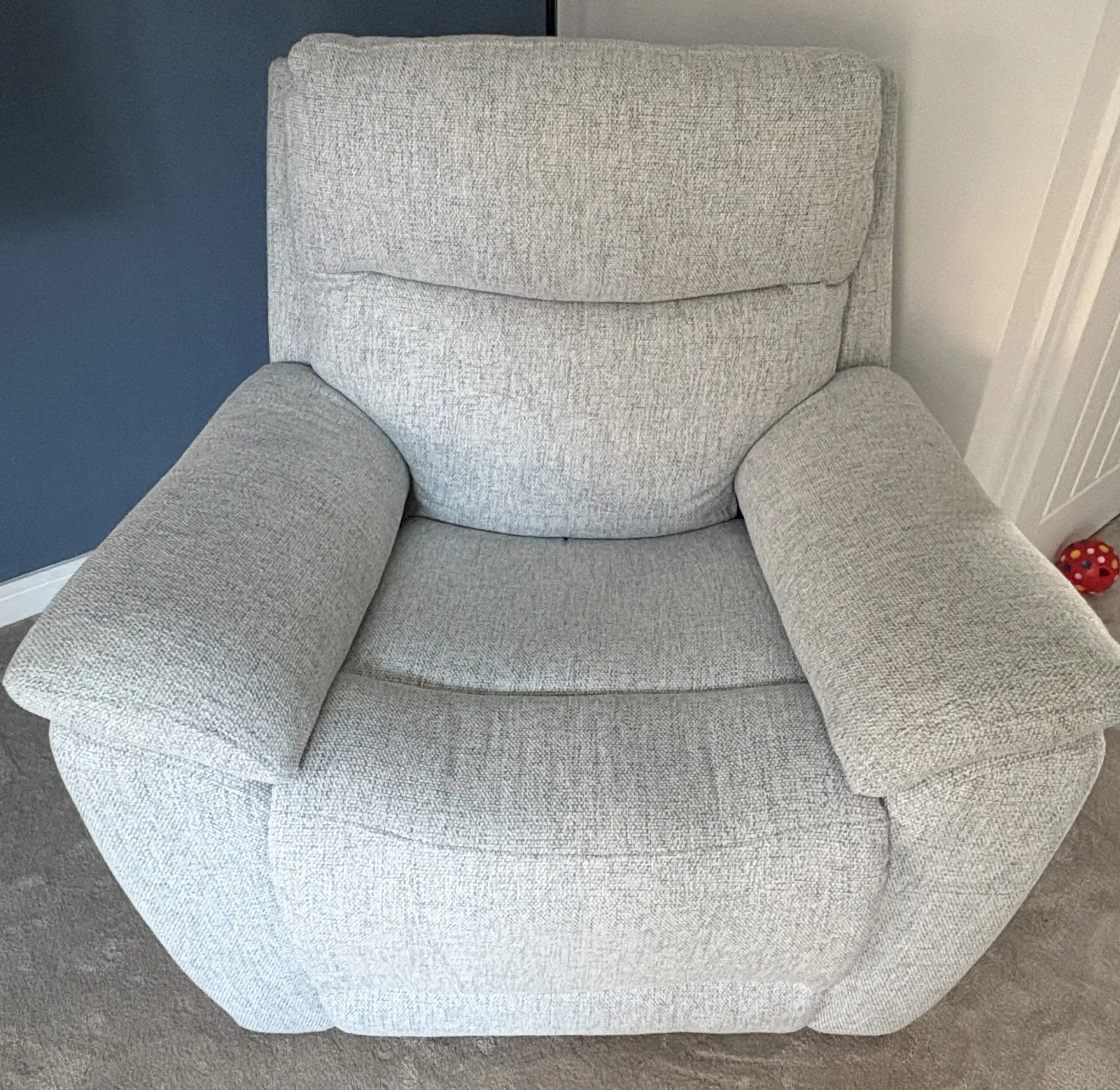 Beautifully presented, brand new 2 seater recliner sofa. Electric recliner along with USB charging points on both sides. Beautifully presented recliner armchair, brand new, incredibly comfortable. Purchased for £1200 for both, less than 4 months ago, moving to a new property.