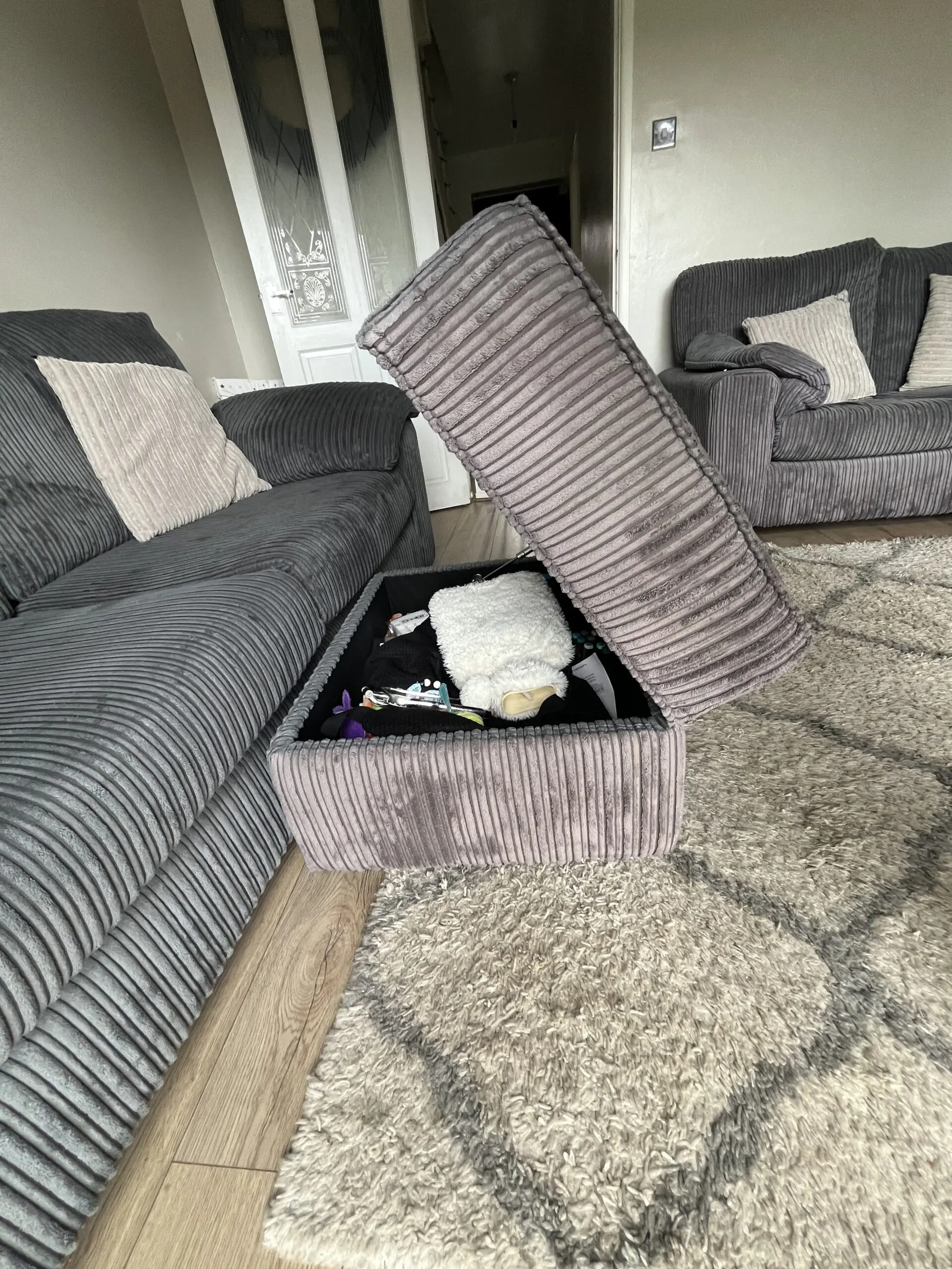 This set includes a 3 seater sofa, 2 seater sofa and a footstool with storage.