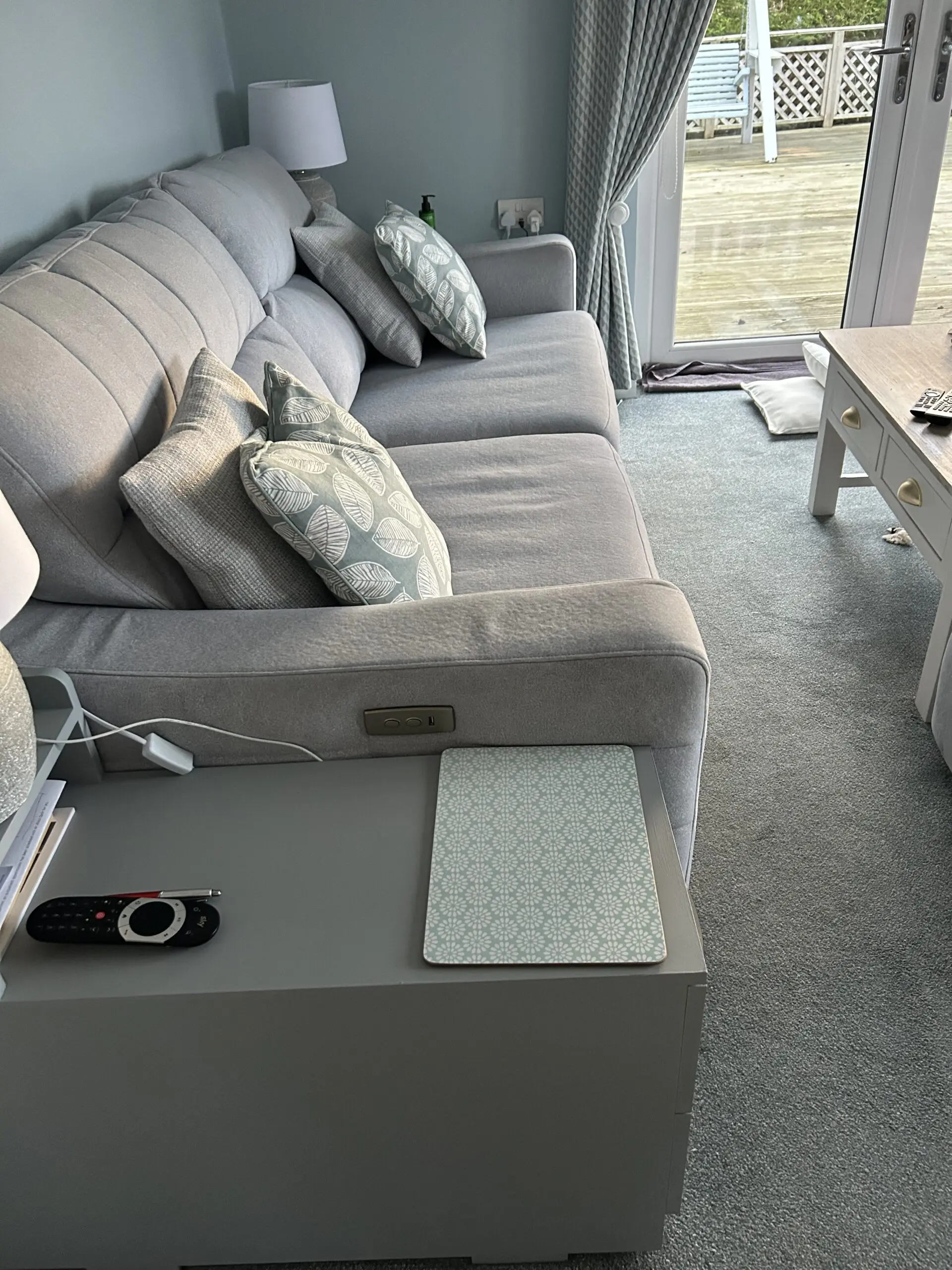 9 month old 3, 2 seater plus footstool. Very good condition. Slightly too big for our room hence reason for selling. These sofas are still available on SCS website.