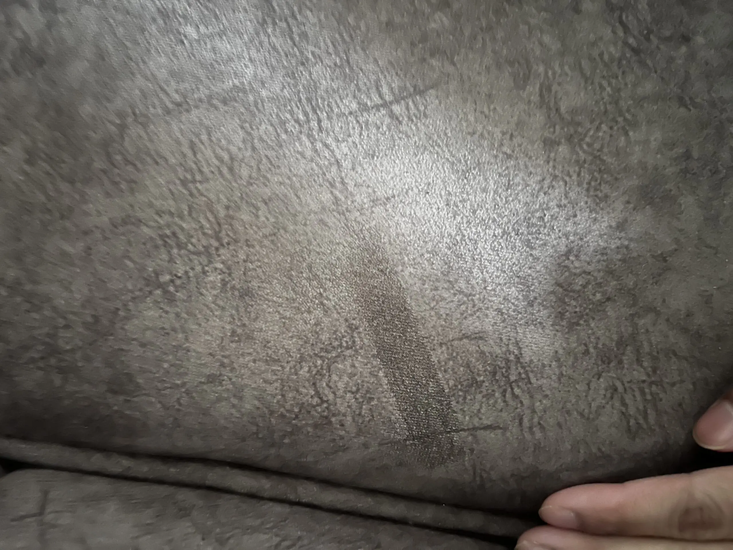 There is a very small cosmetic heat mark under one cushion, not visible during normal use and does not affect comfort or appearance in any way.