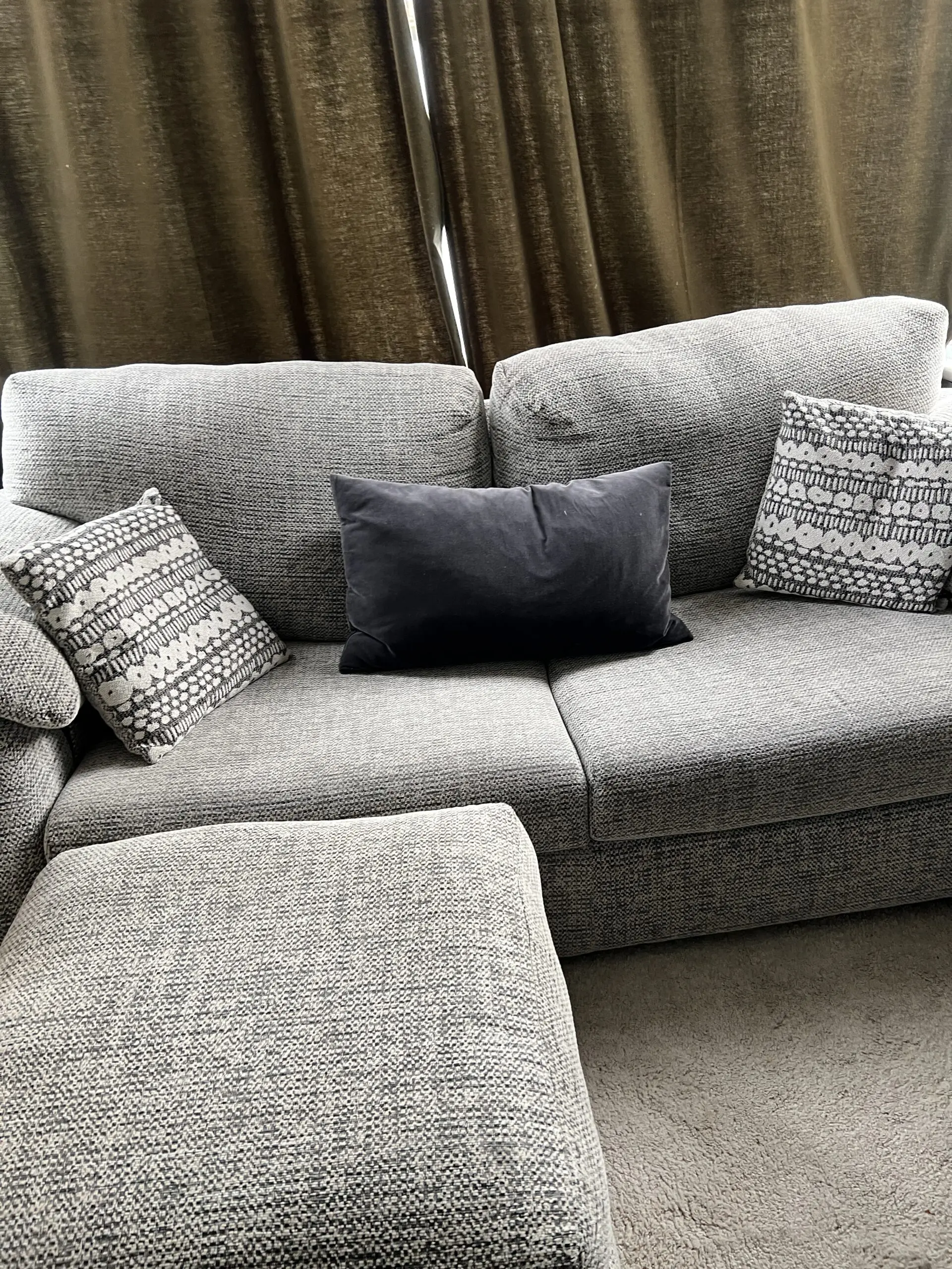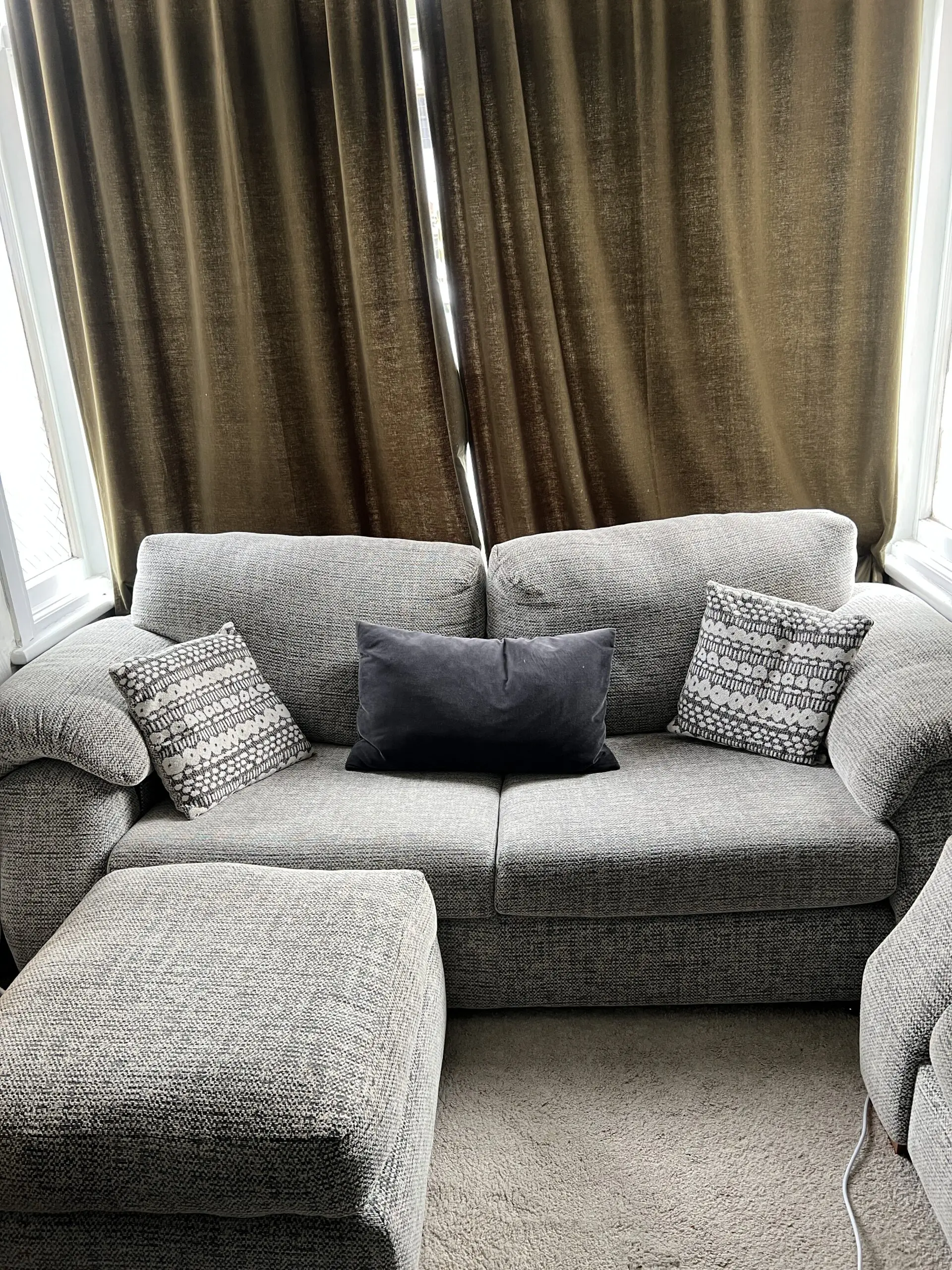Also have x4 spare seat cushions as they sent the wrong padding, so there is x4 firm which are on the sofa and x4 soft cushions which are spare and in the plastic protective bags still unused. It’s only 16 months old- well cared for but don’t fit in our new house.