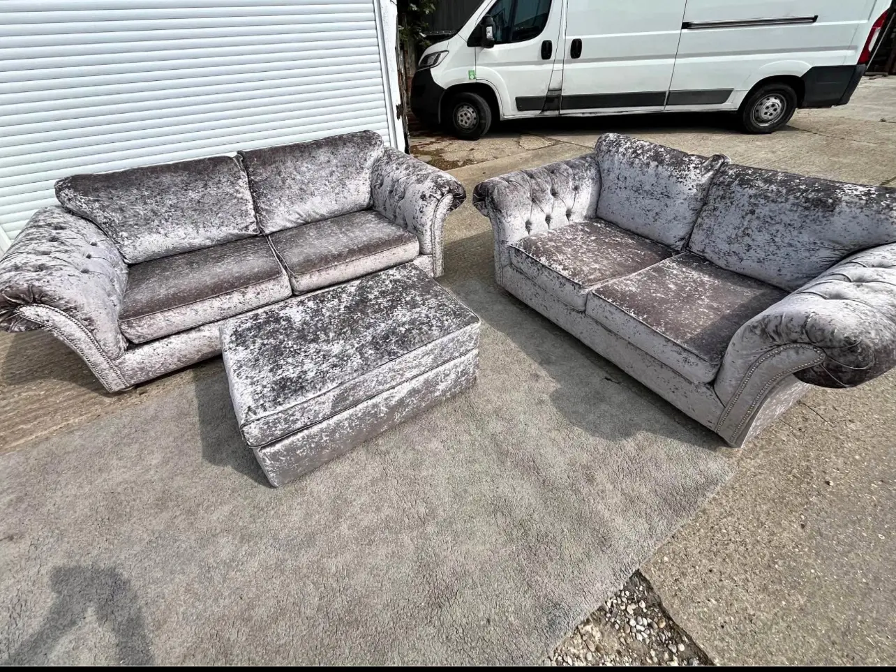 Silver crushed sofas