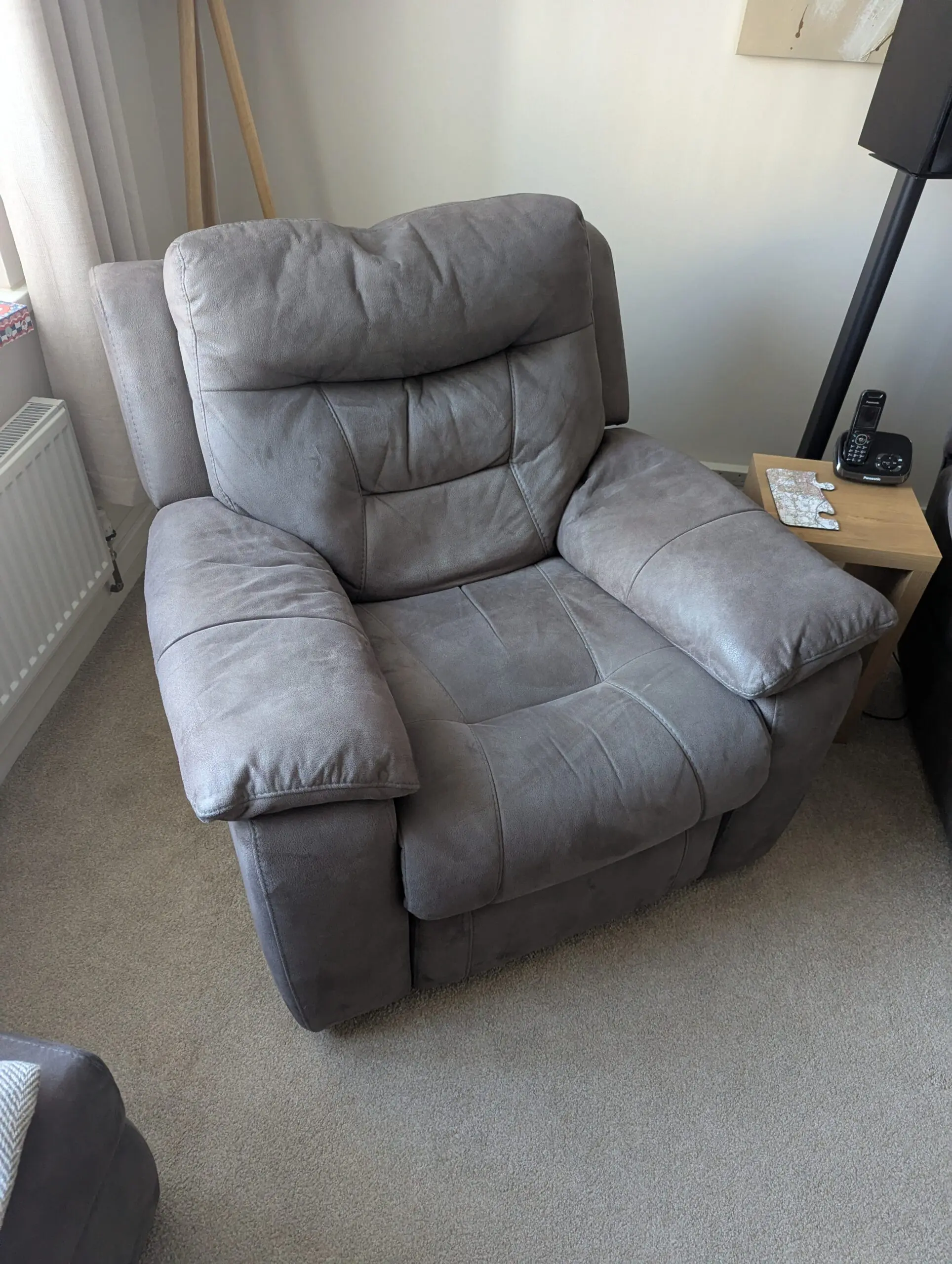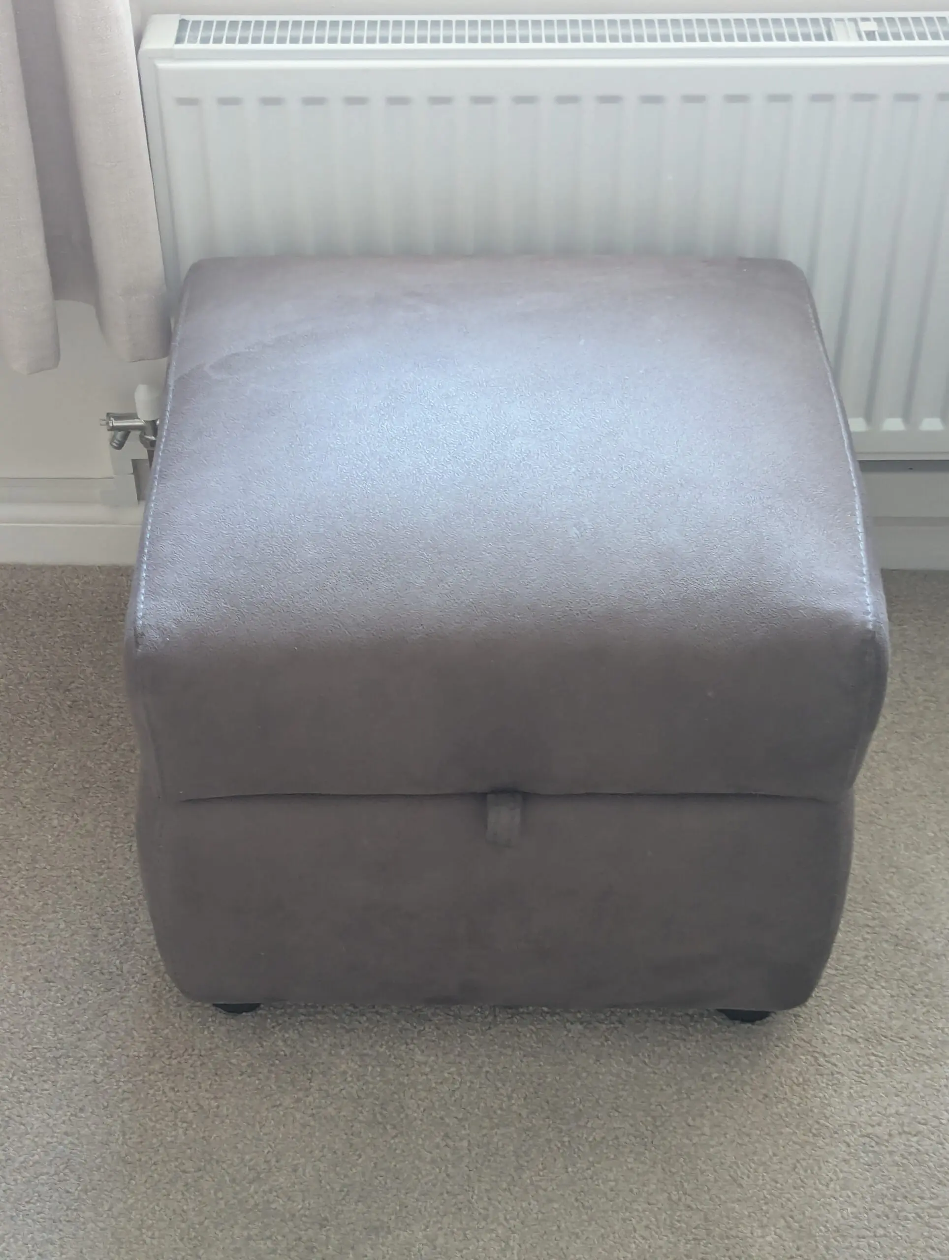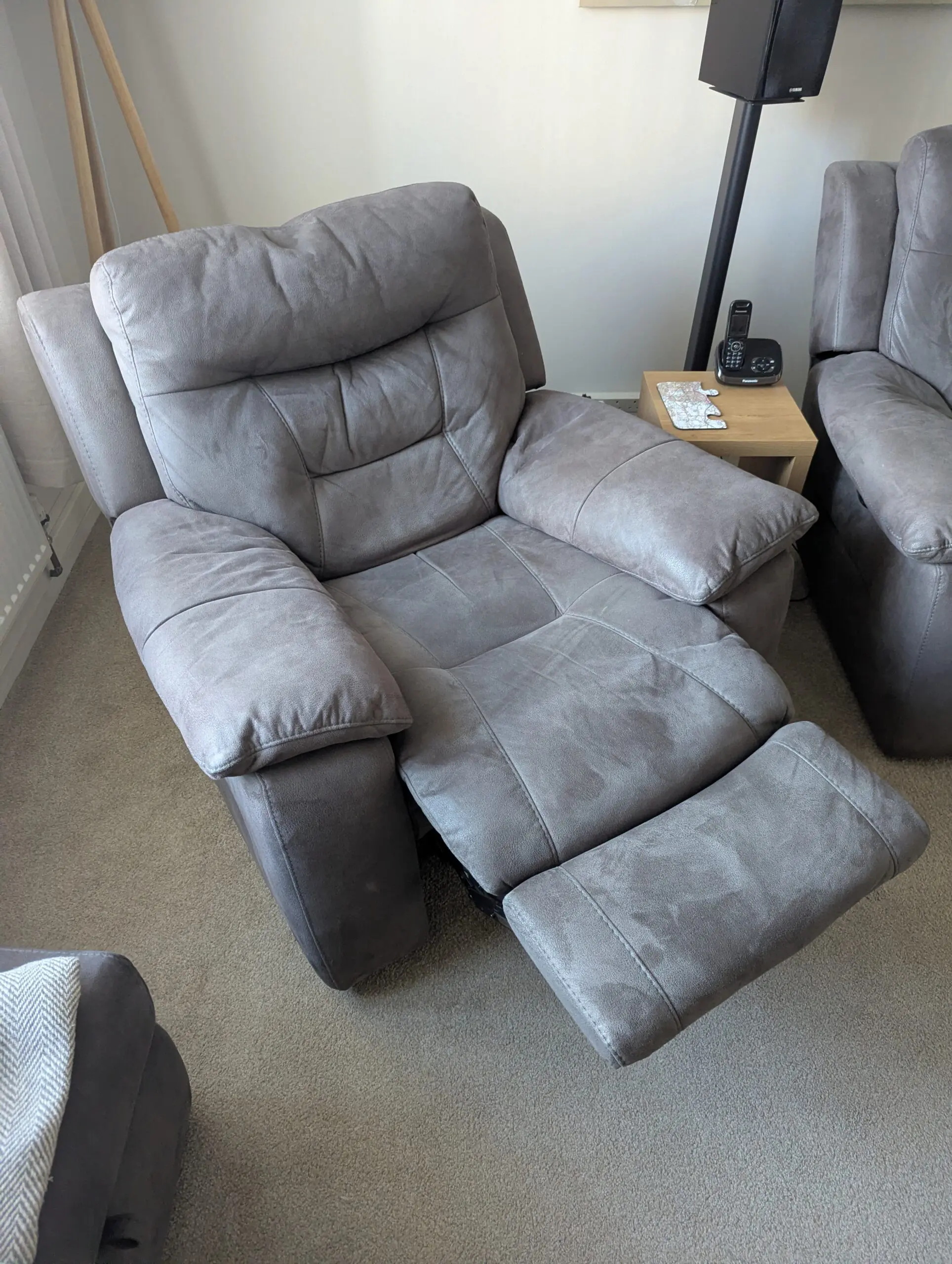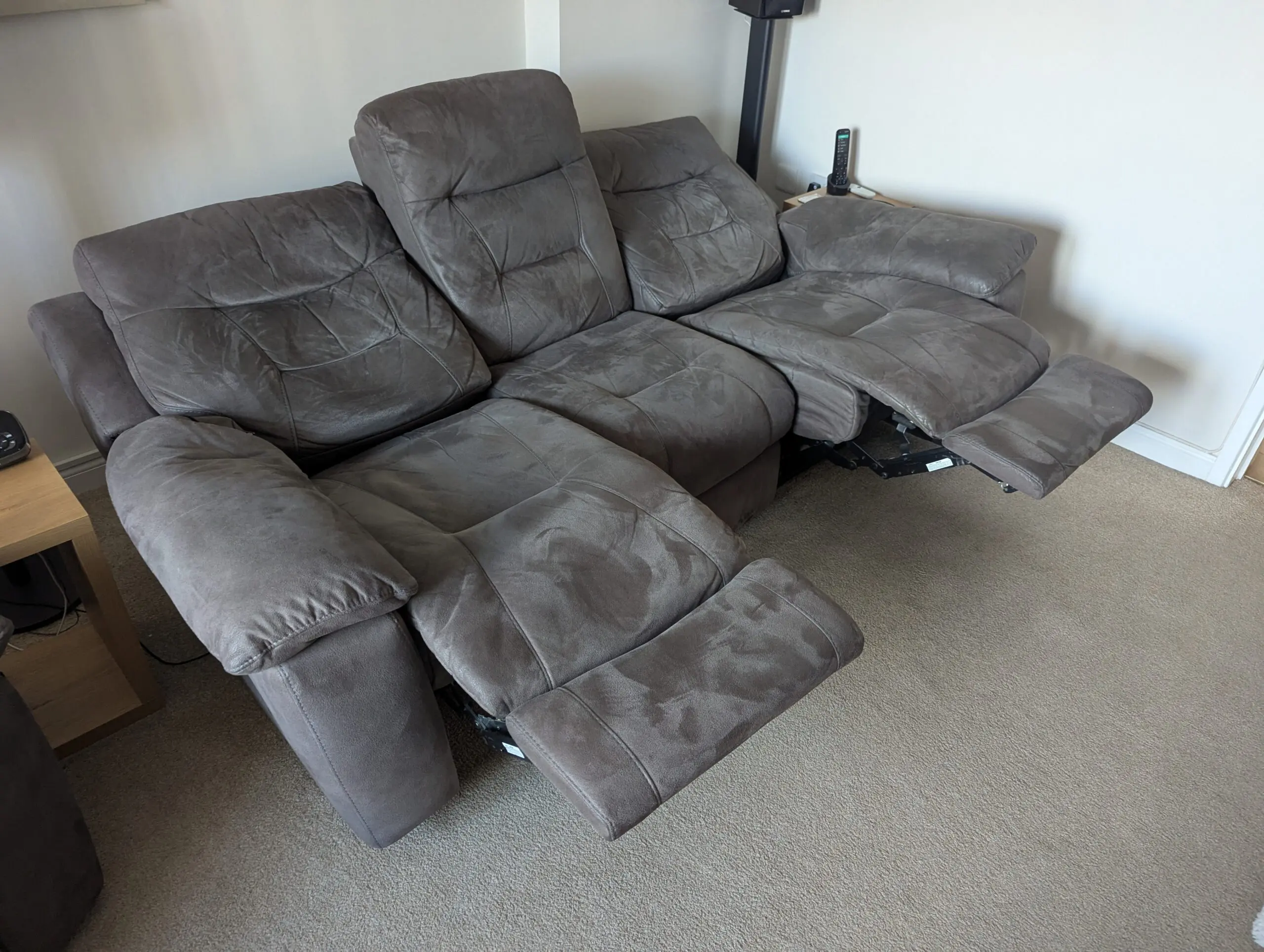 10 years old, nothing wrong with it. Is clean and working, obviously not as soft as it was when new. Single seater and footstool are in mint condition, as used least the most. Child and pet free home.