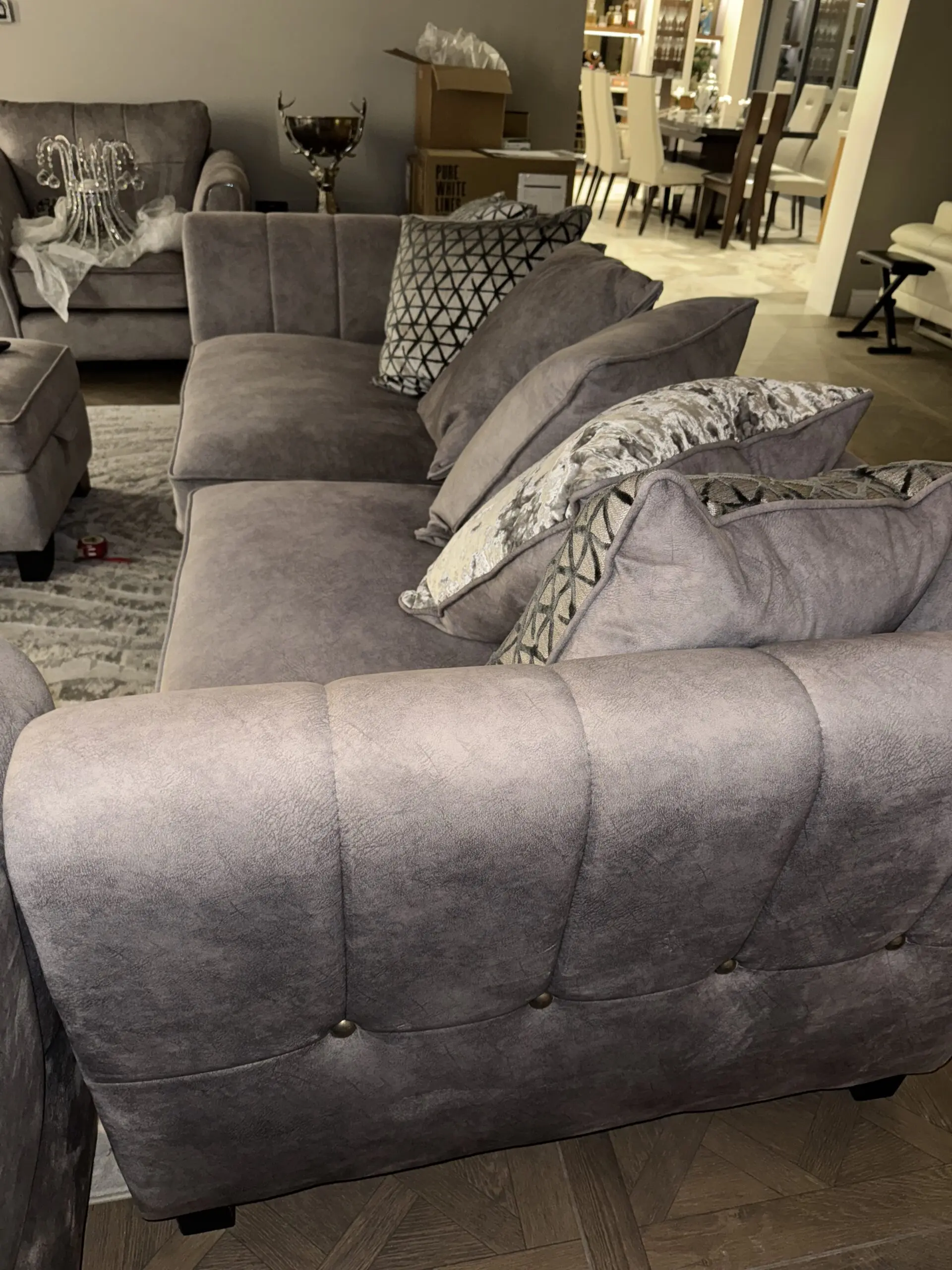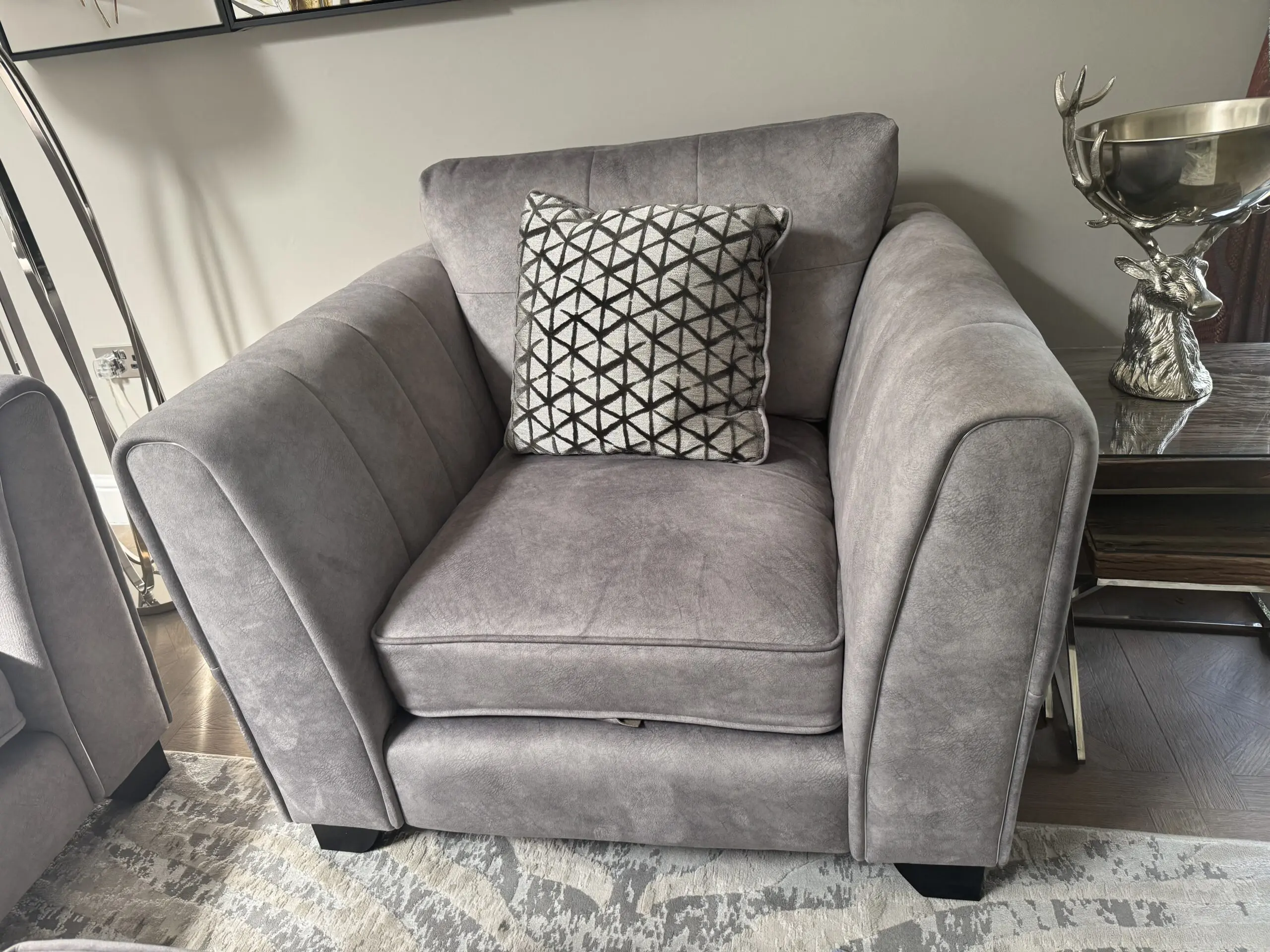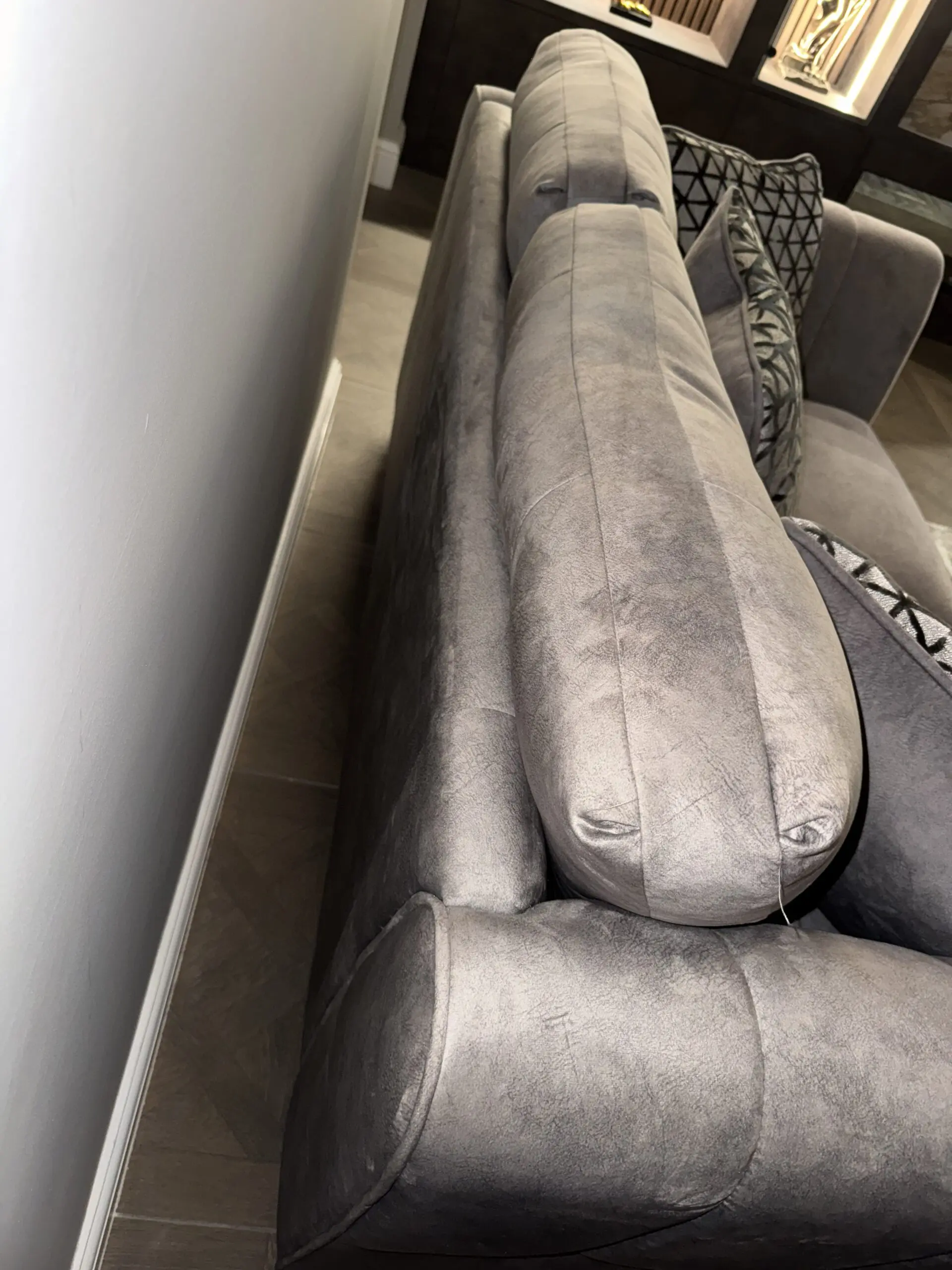 Excellent condition barley used all safa comes with cushions in grey with different designs.