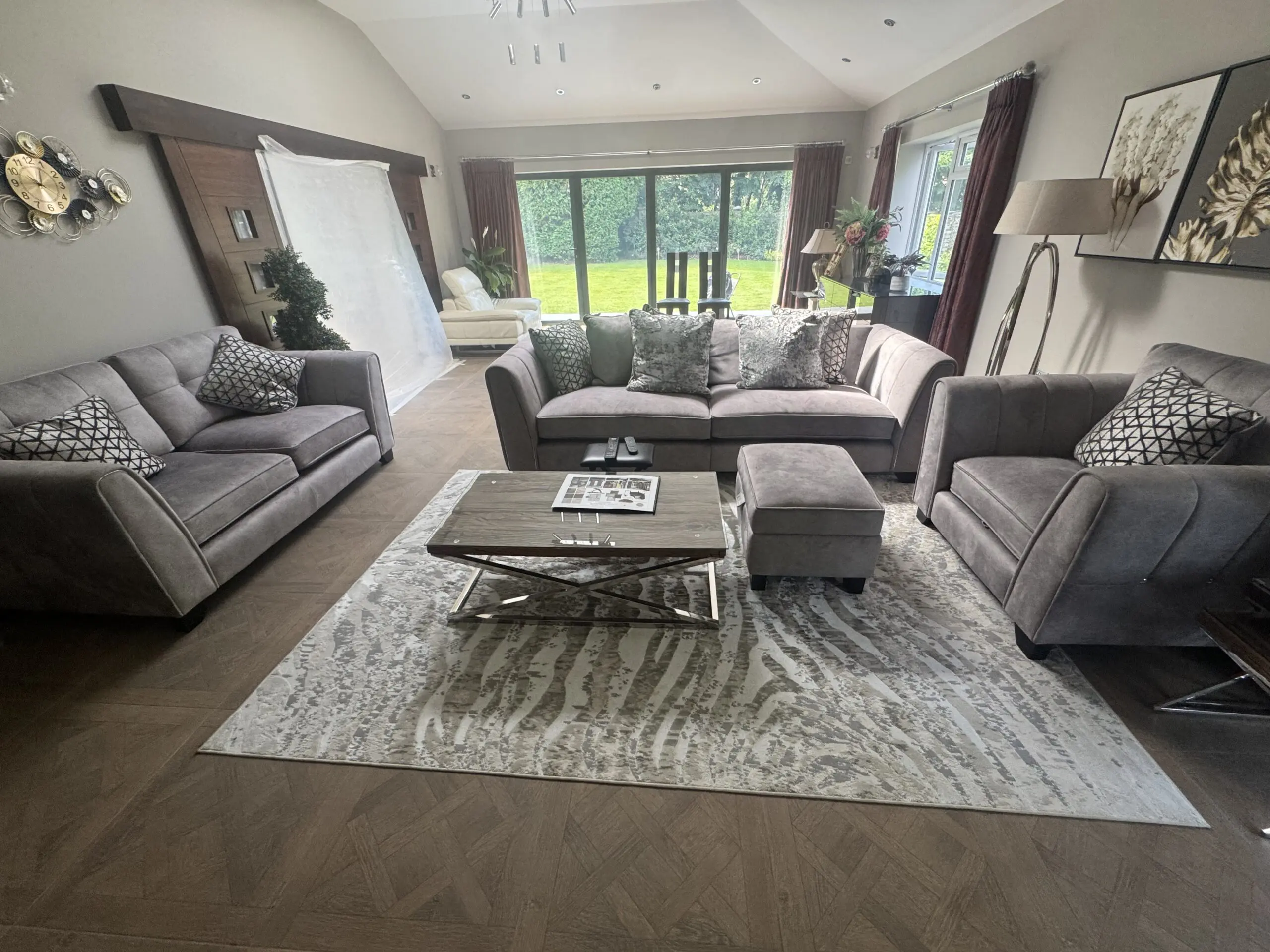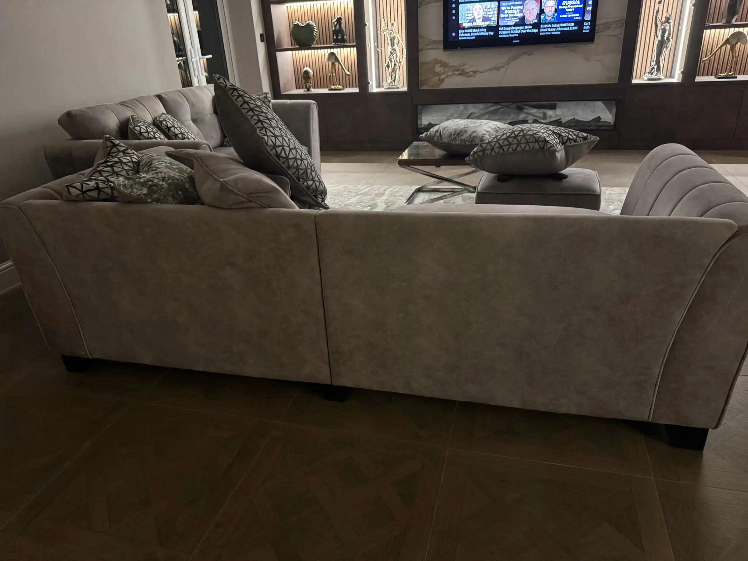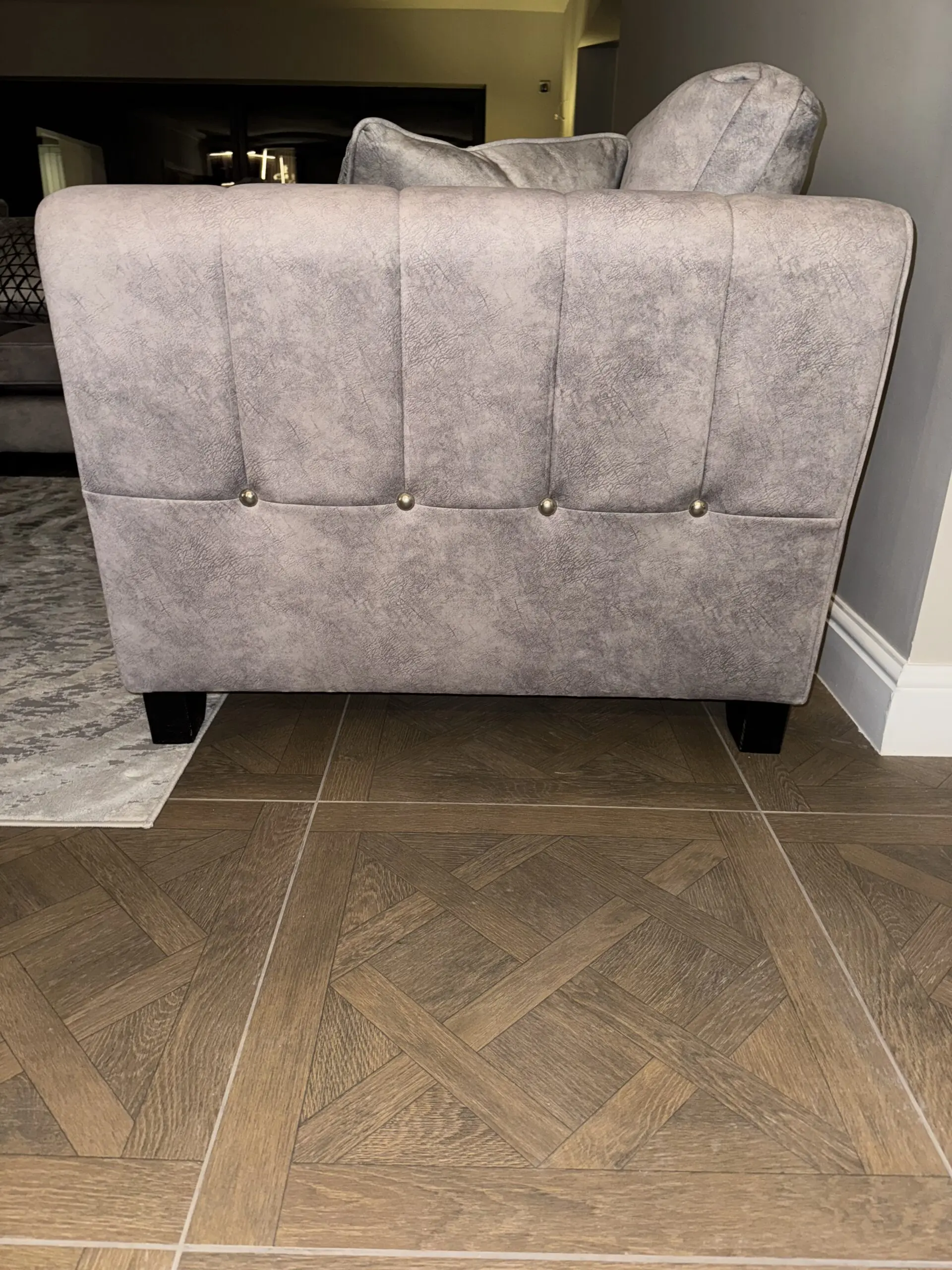 Excellent condition barley used all safa comes with cushions in grey with different designs.