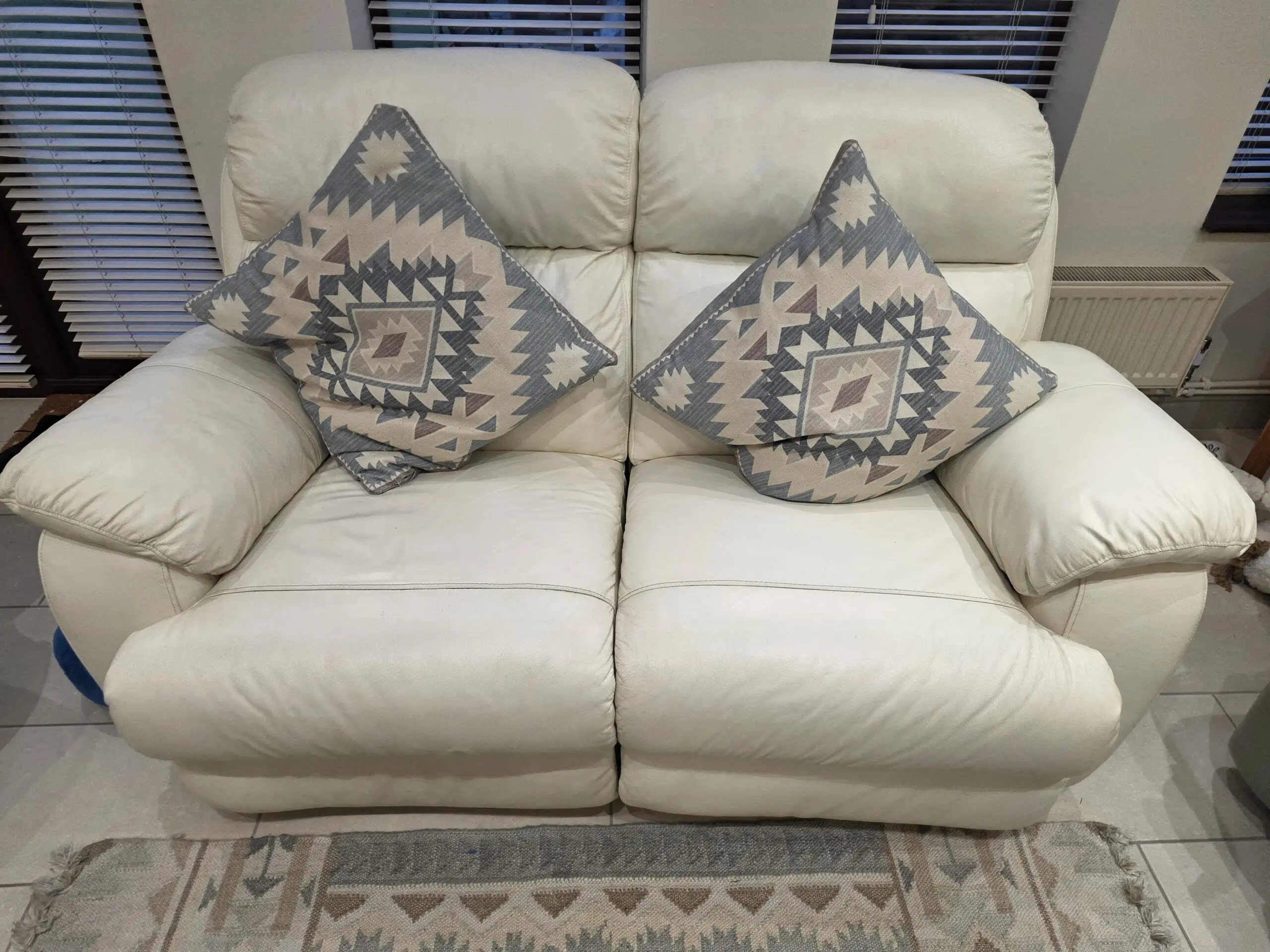 3 seater and 2 seater cream leather sofas from Sofology, excellent condition, been in front room, hardly used
