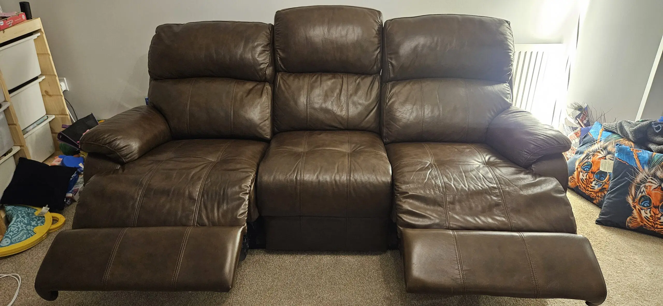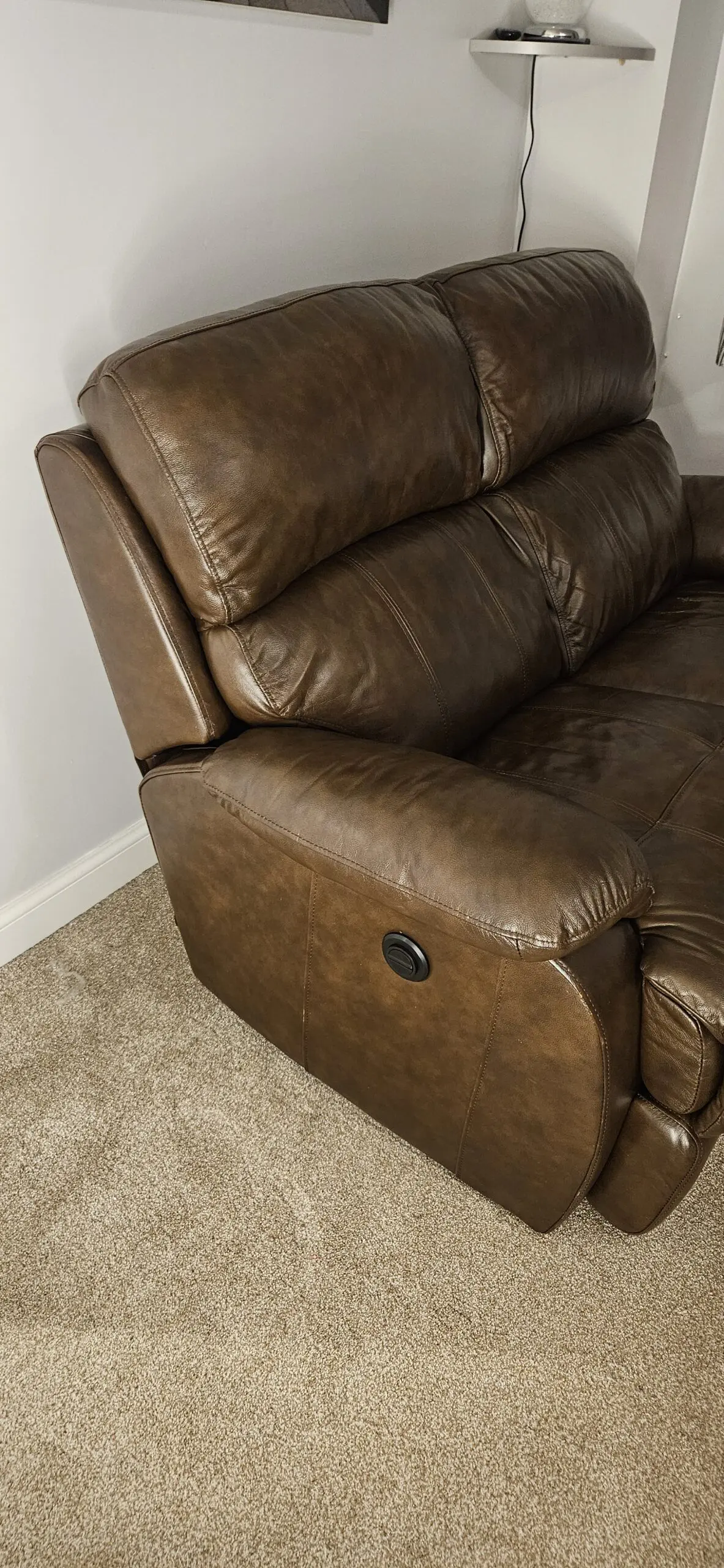Sofology Dark Brown 3 seater and 2 seater reclining sofas.
