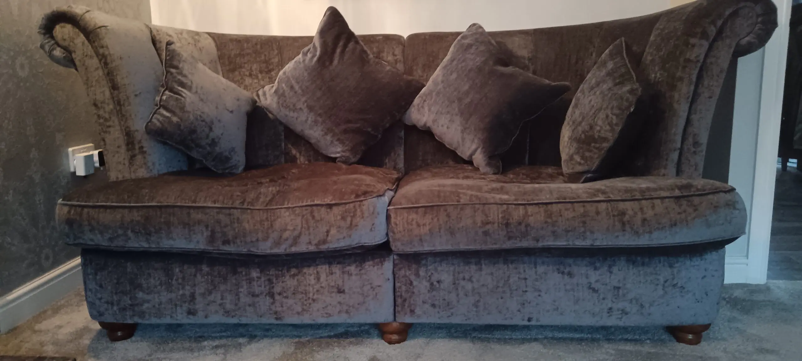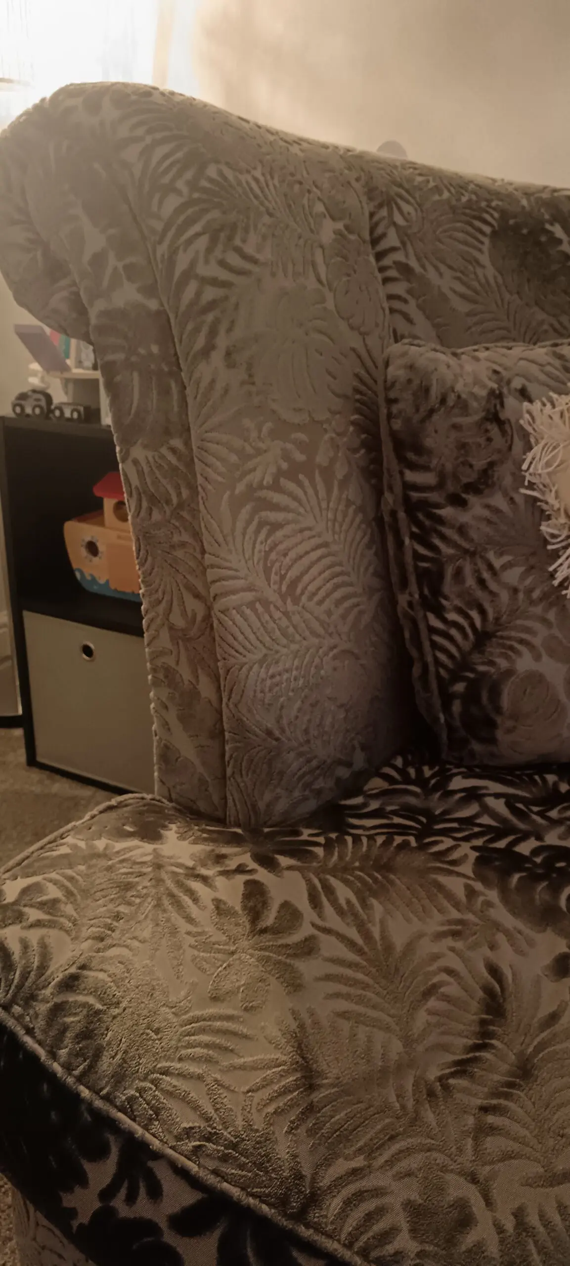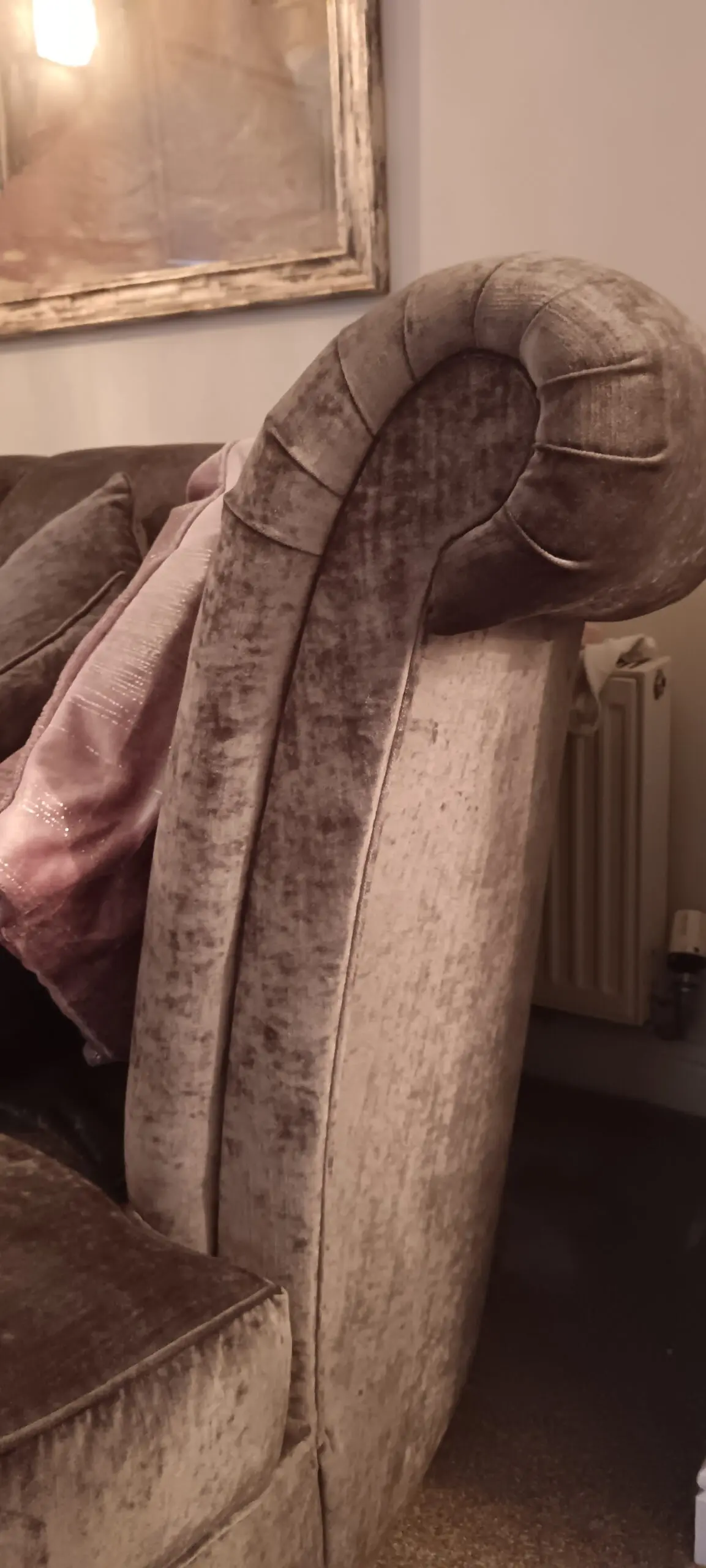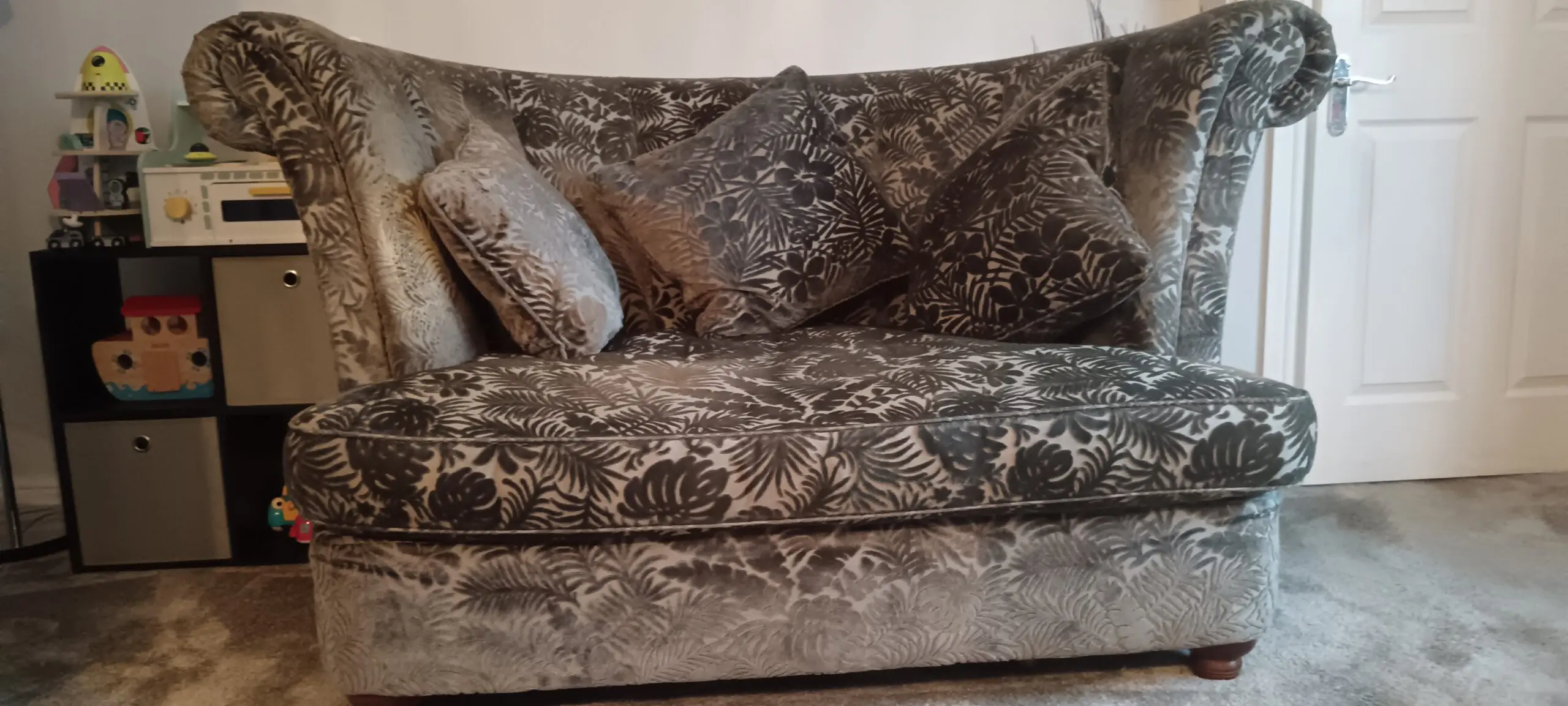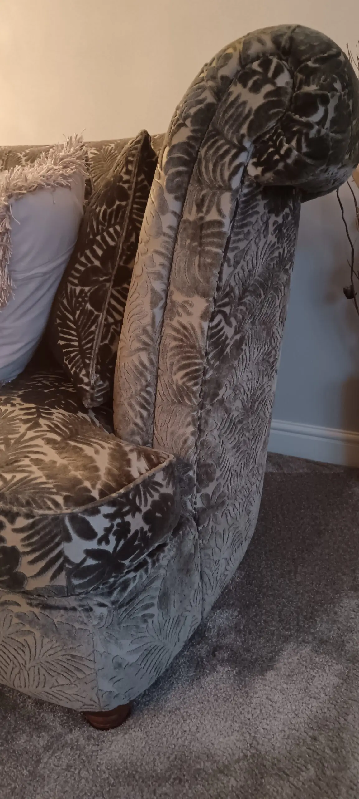 2 seater in plain velvet, Loveseat is patterned but look perfect together.