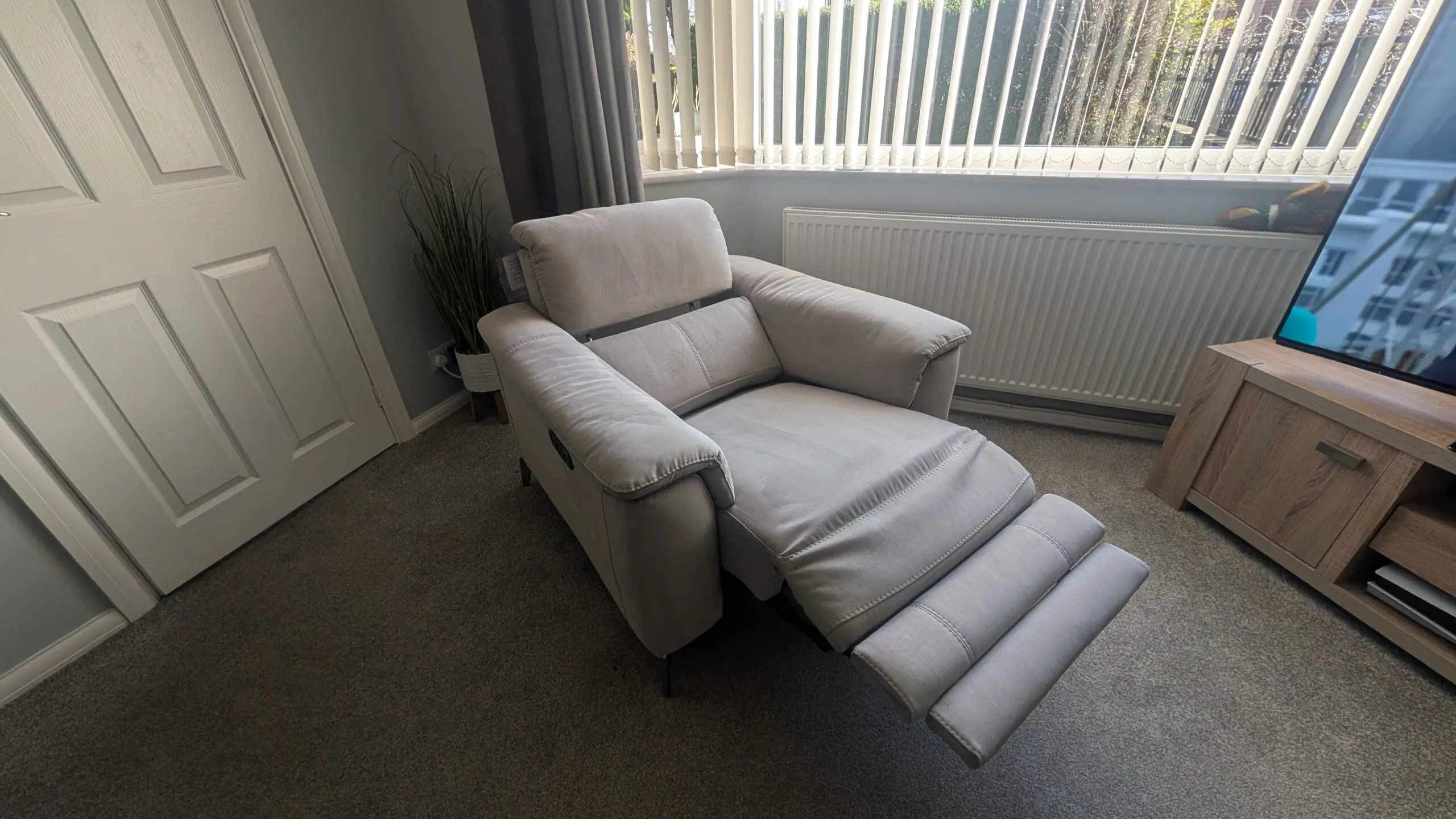 Single chair recliner with power headrest