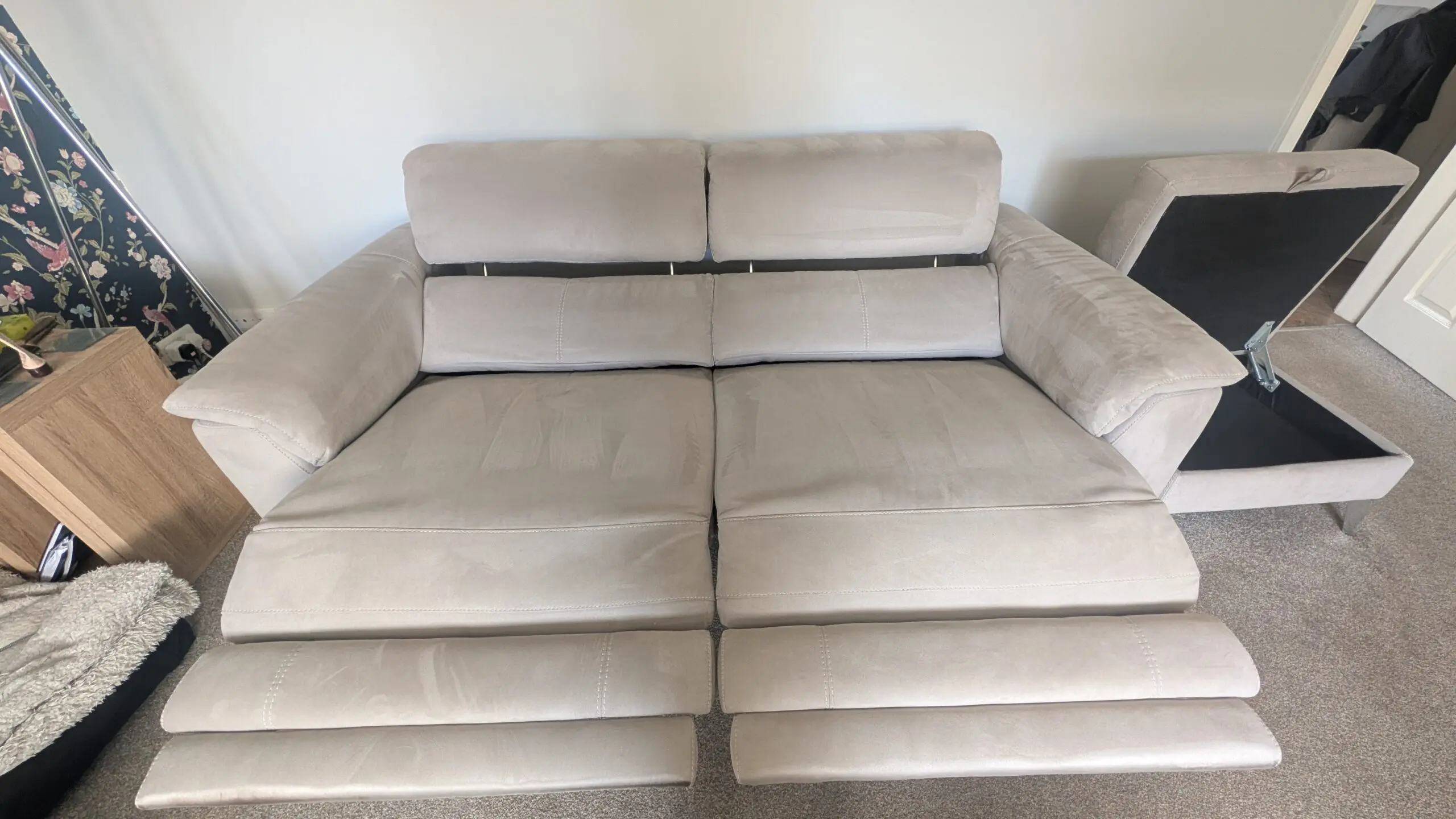 3 seater double recliner sofa, with power headrests.