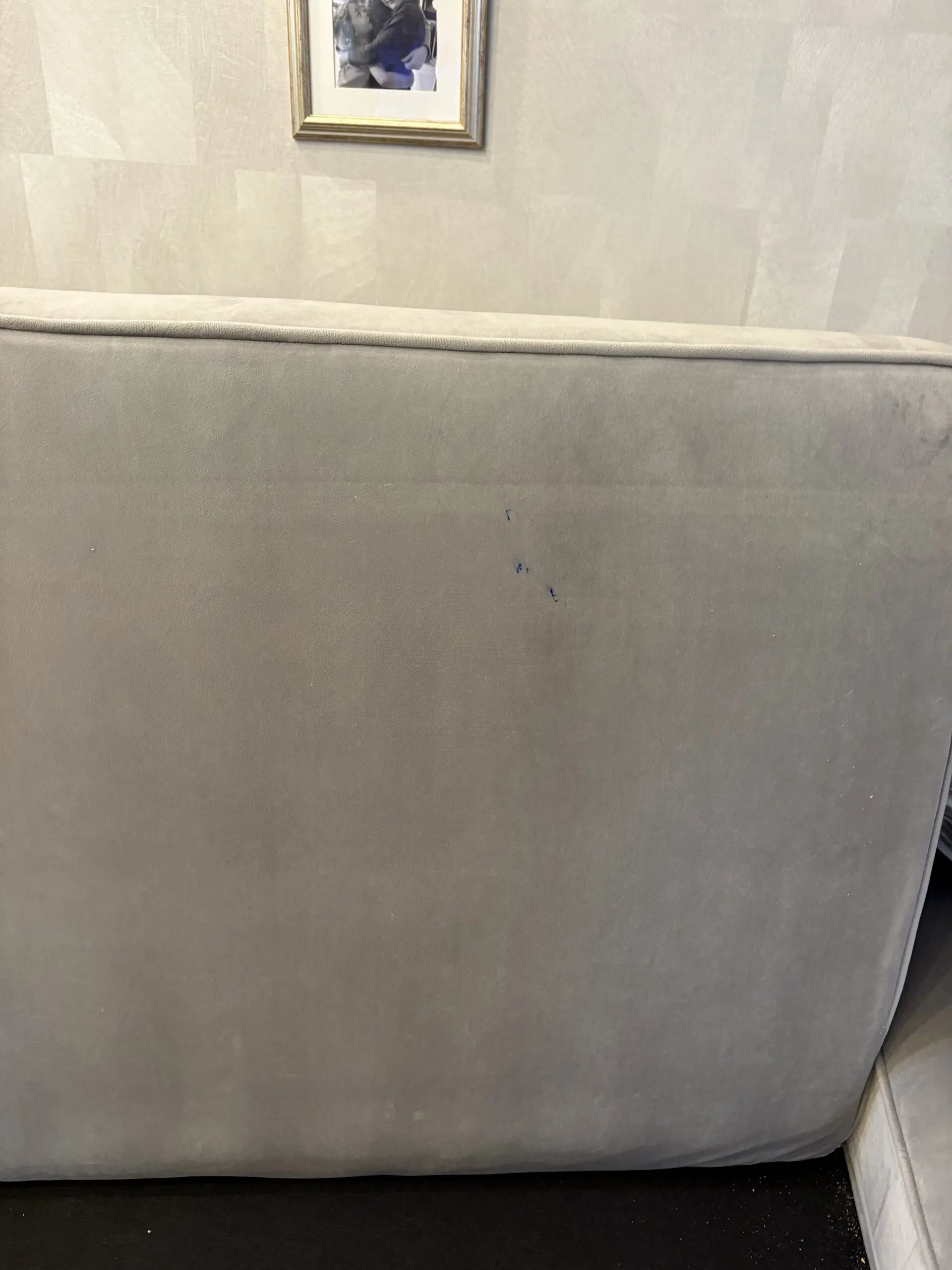 Small, light pen mark on underside of one of the seat cushions and back of one scatter back cushion. Please see photos