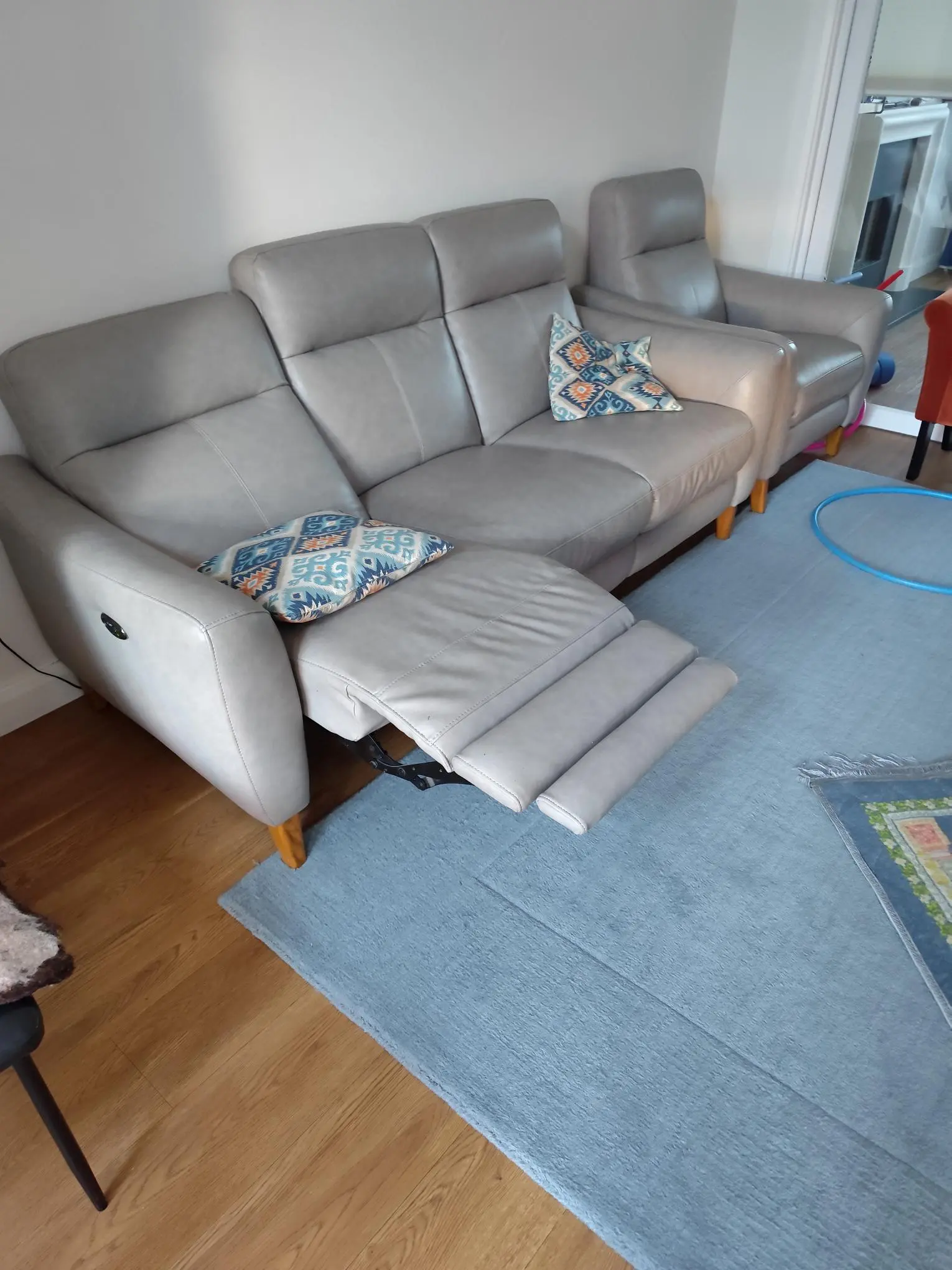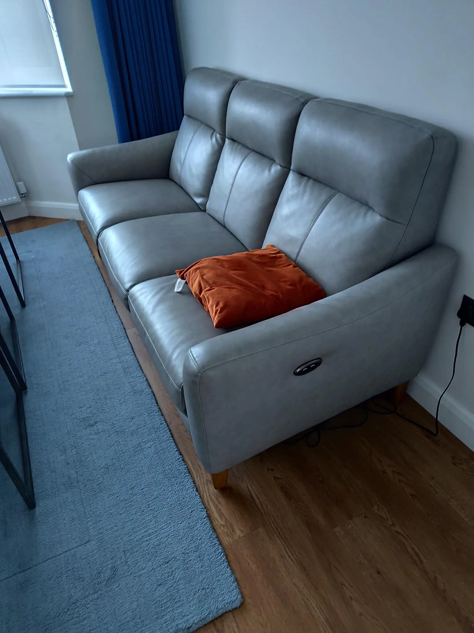 Stunning Electric Recliner Dylan Sofa Set. Silver Leather Fabric Style, Bought from Oak Furniture Land for over £3k GBP