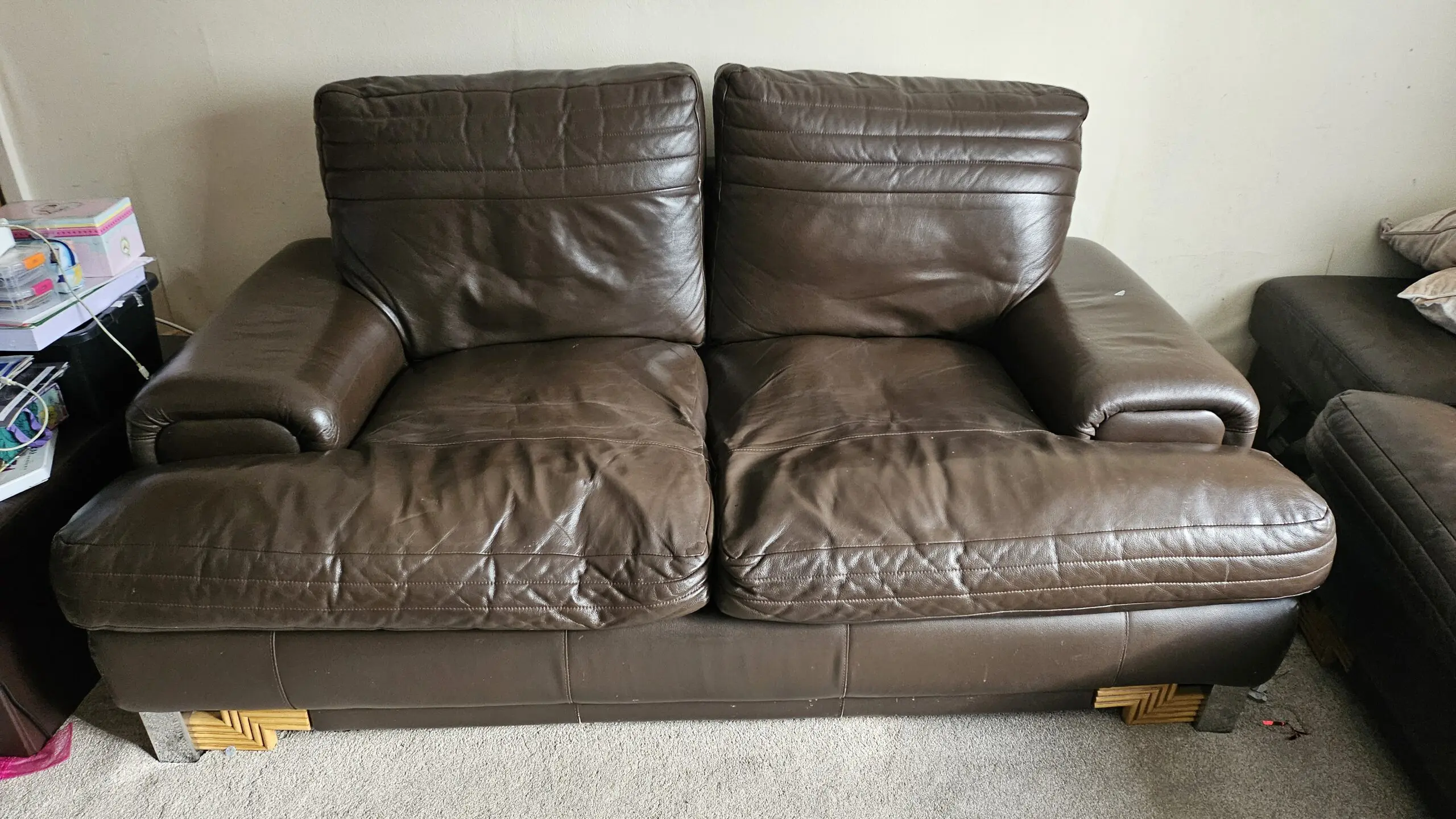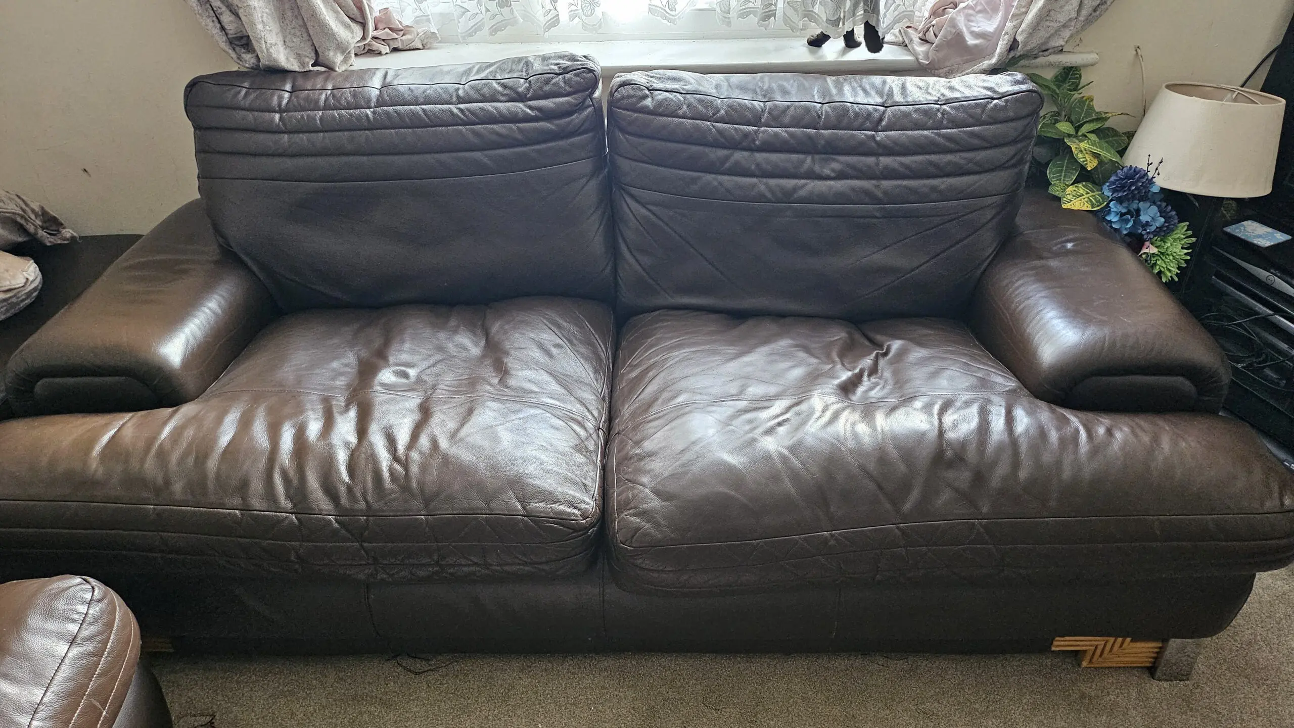 Overall condition and comfort is very good. Hardly any marks apart from the one shown which can easily be removed. There is an additional sofa support for the middle.