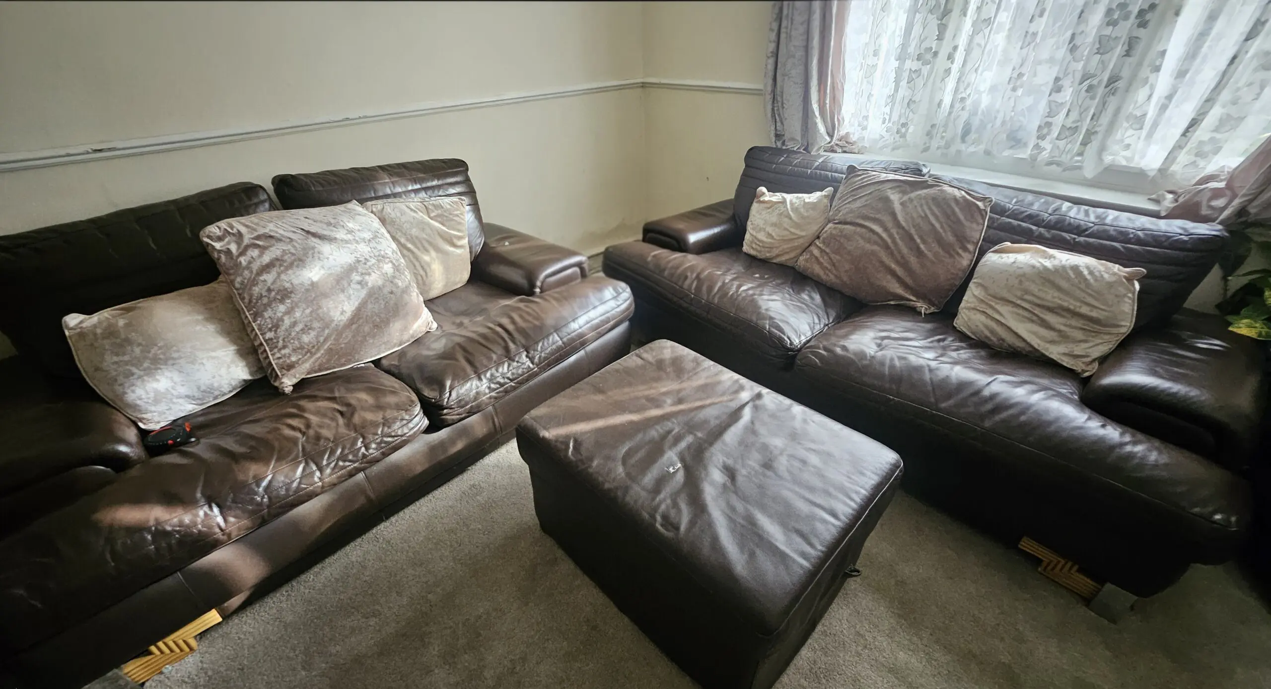 This sofa set comes with one two-seater settee and also a three-seater settee.
