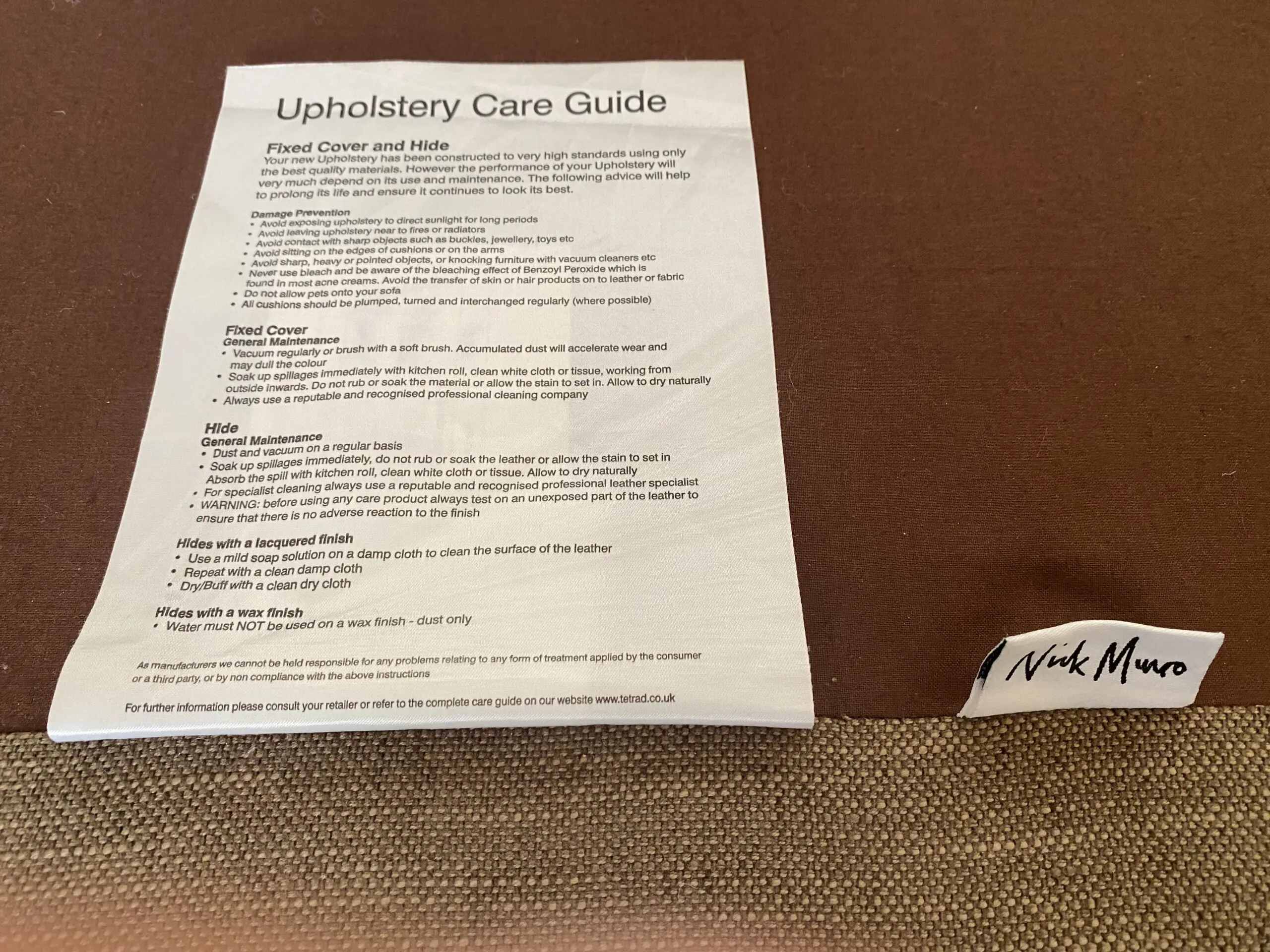 Although 10 years old, the sofas have had very little use in a second home and are tear and stain free.