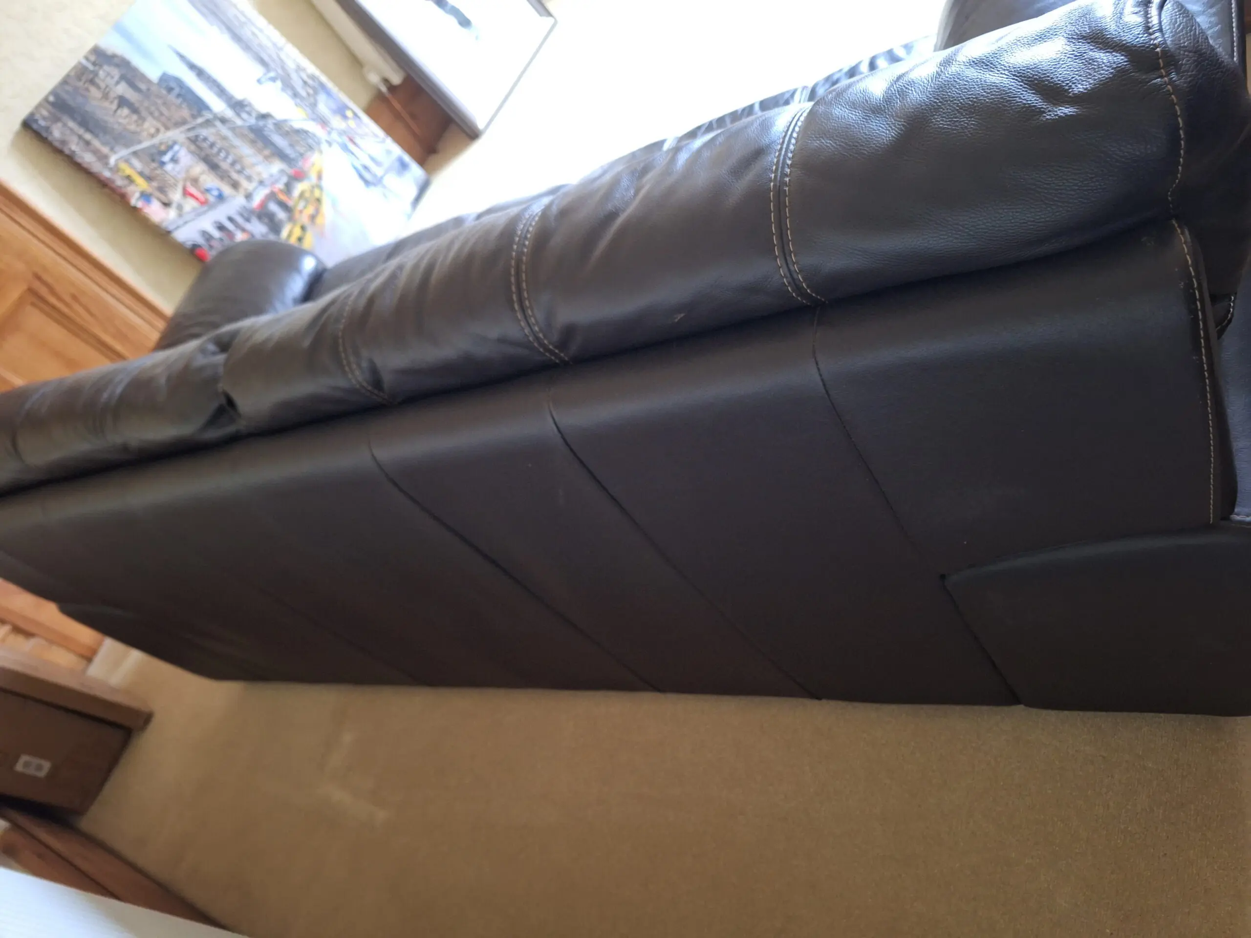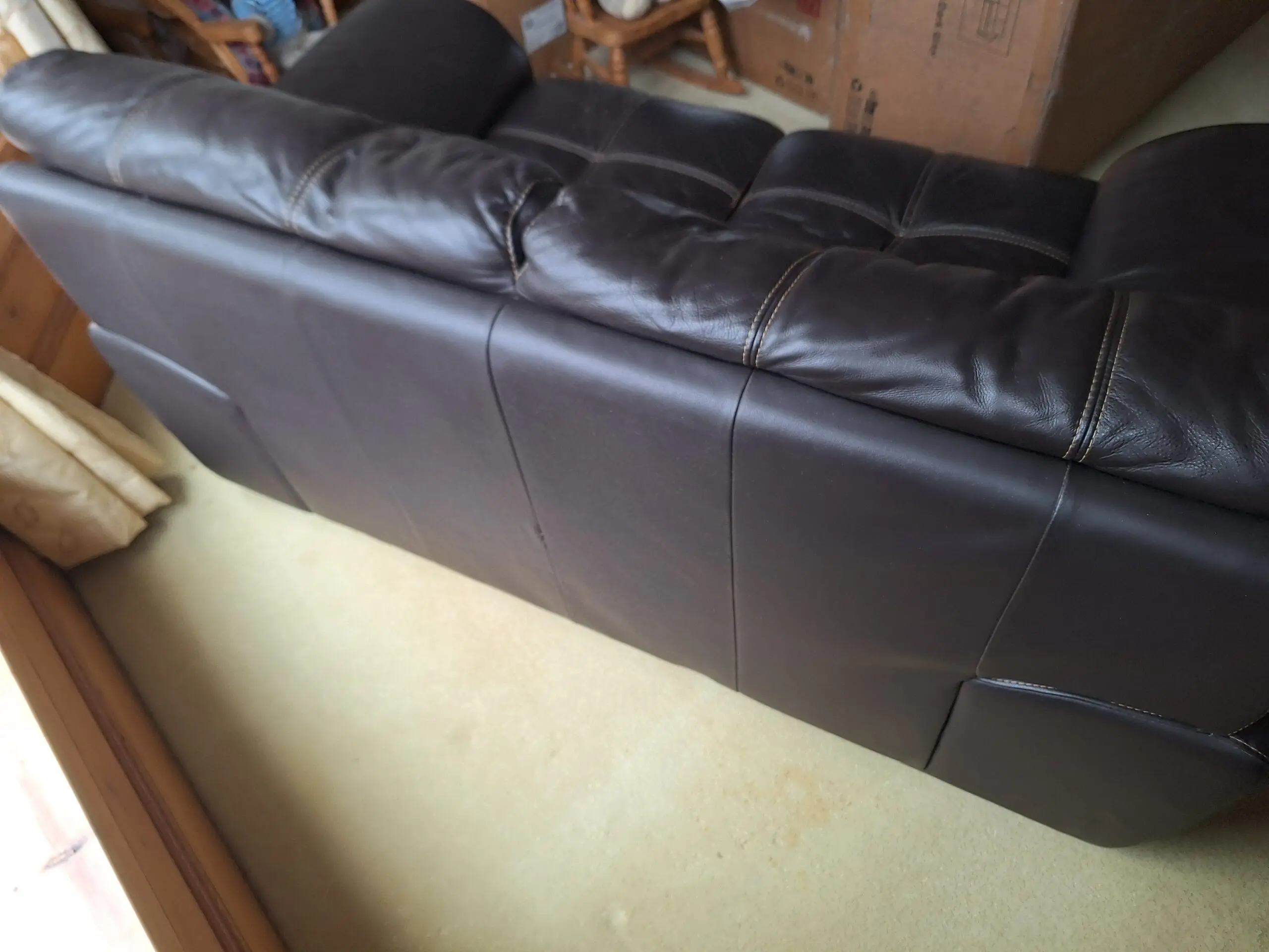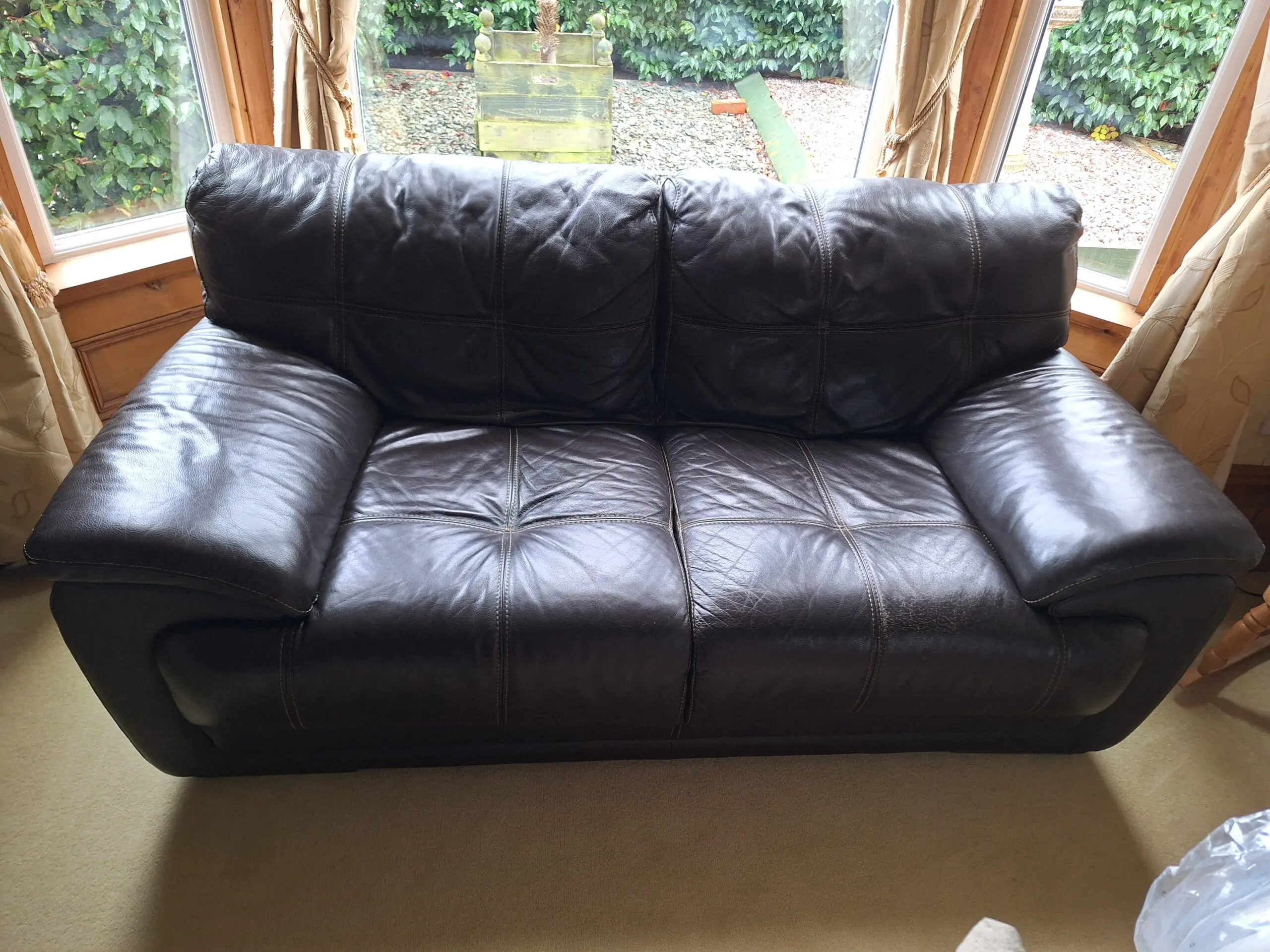 Extremely comfortable leather sofa with some age related marks (reflected in the price) but otherwise in very good condition.