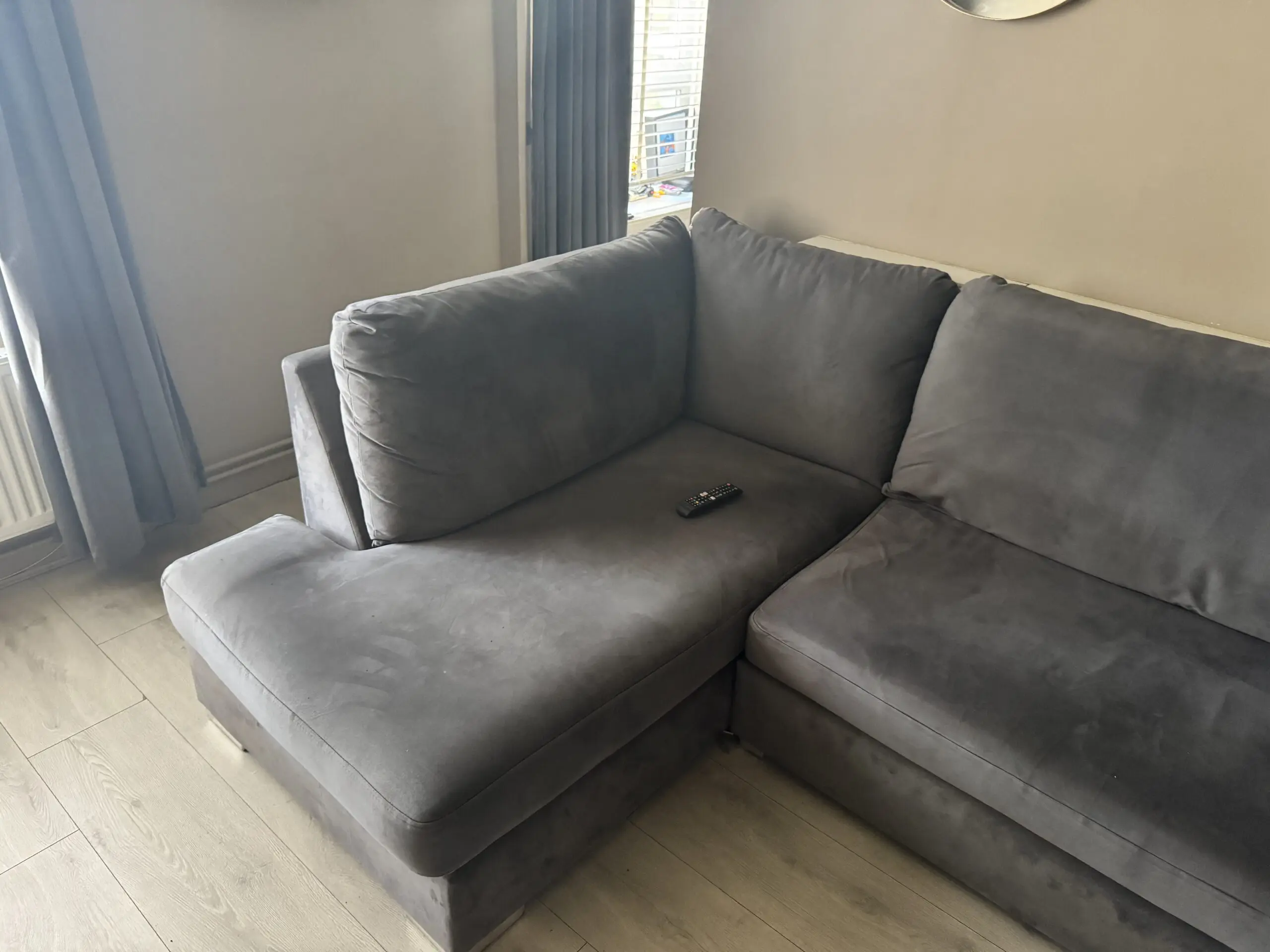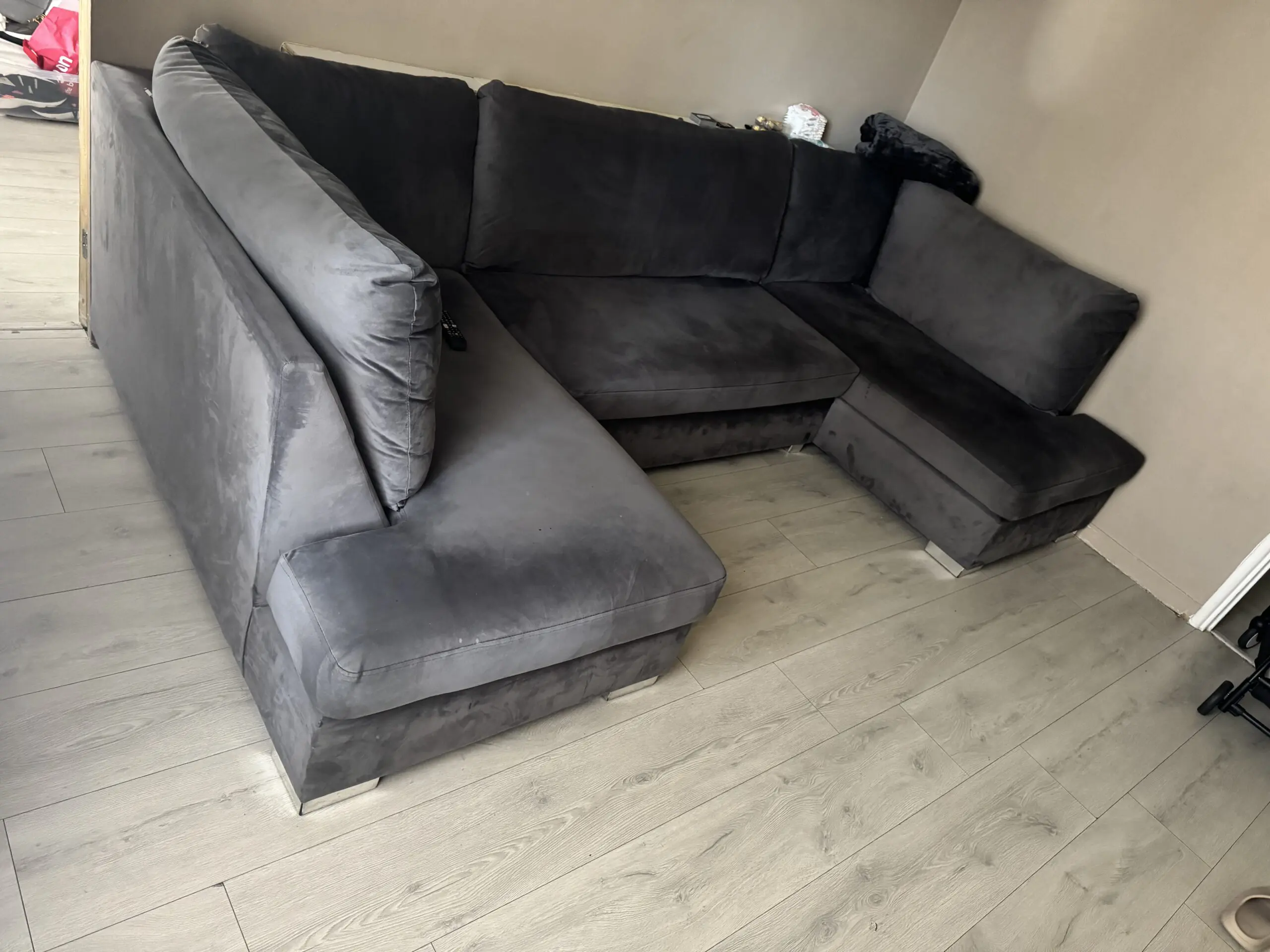 Selling sofa as new sofa arriving next week need home by next week has a few mark on the right look at photo apart from that it’s like new. Size is in photos. Open to offers but only reasonable offers. Originally paid £999