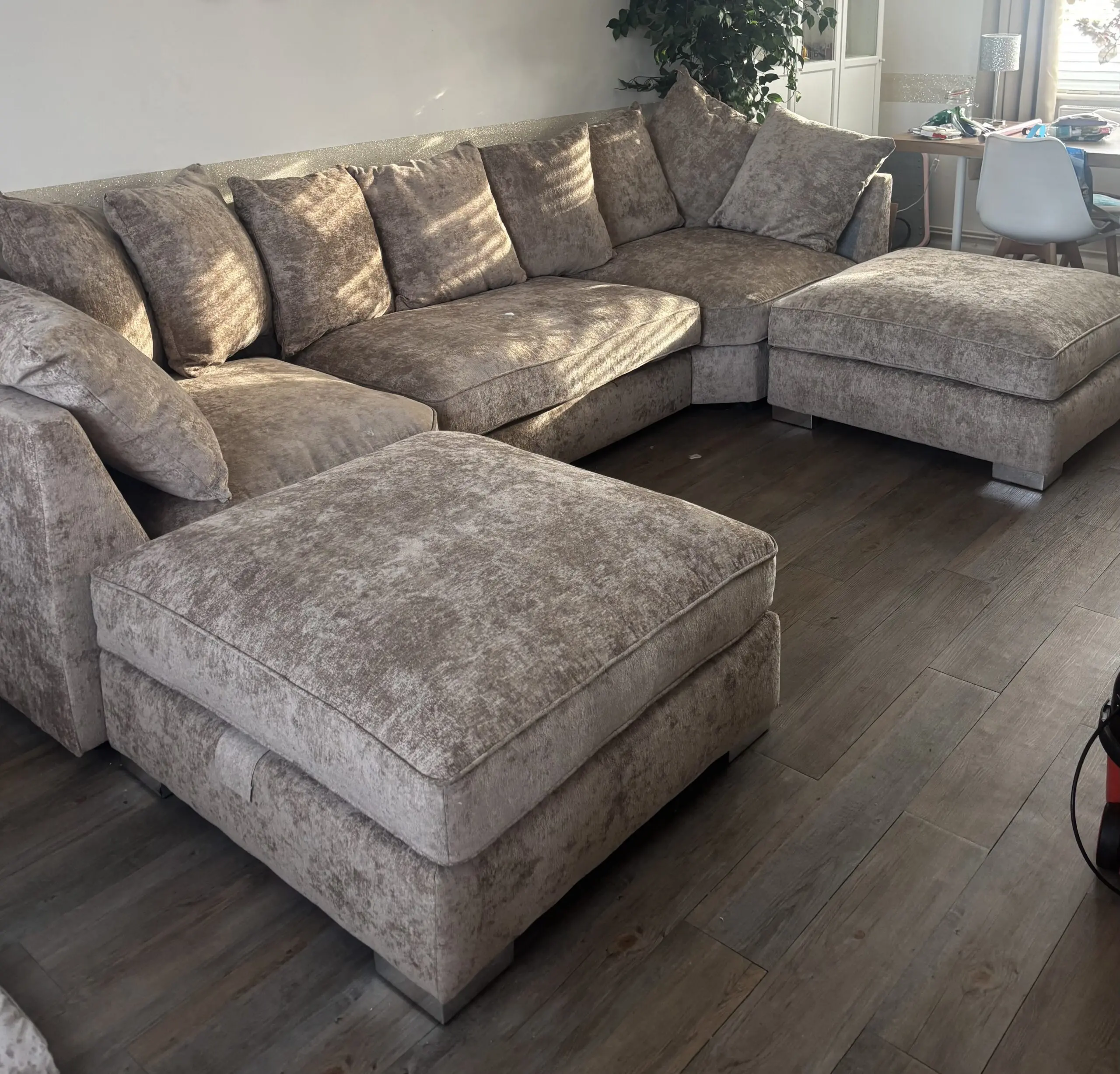 Only just over a year old down sizing as moving house lovely comfortable sofa smoke free no marks on it as kept throws in it as I have two little dogs who are very clean
