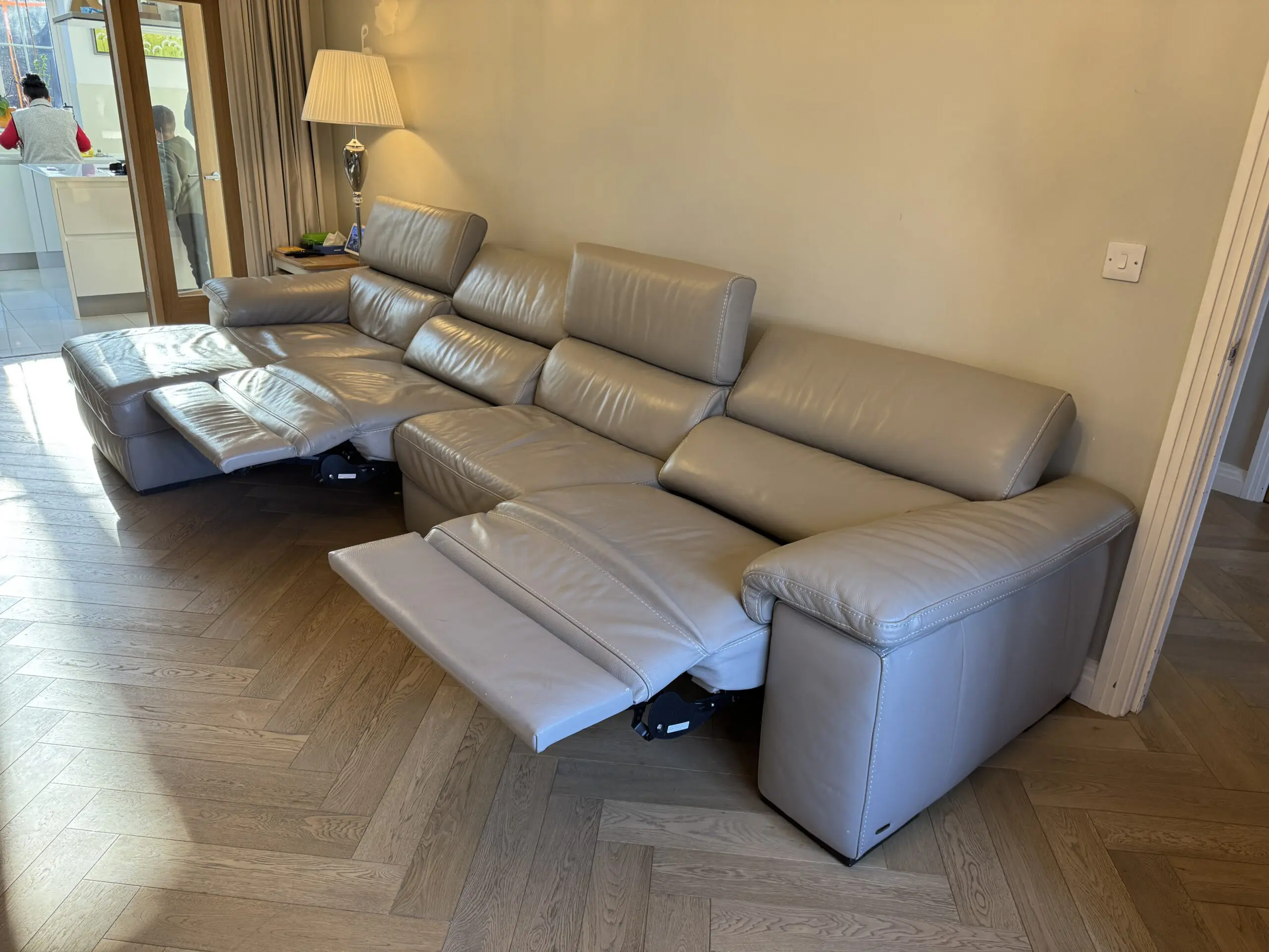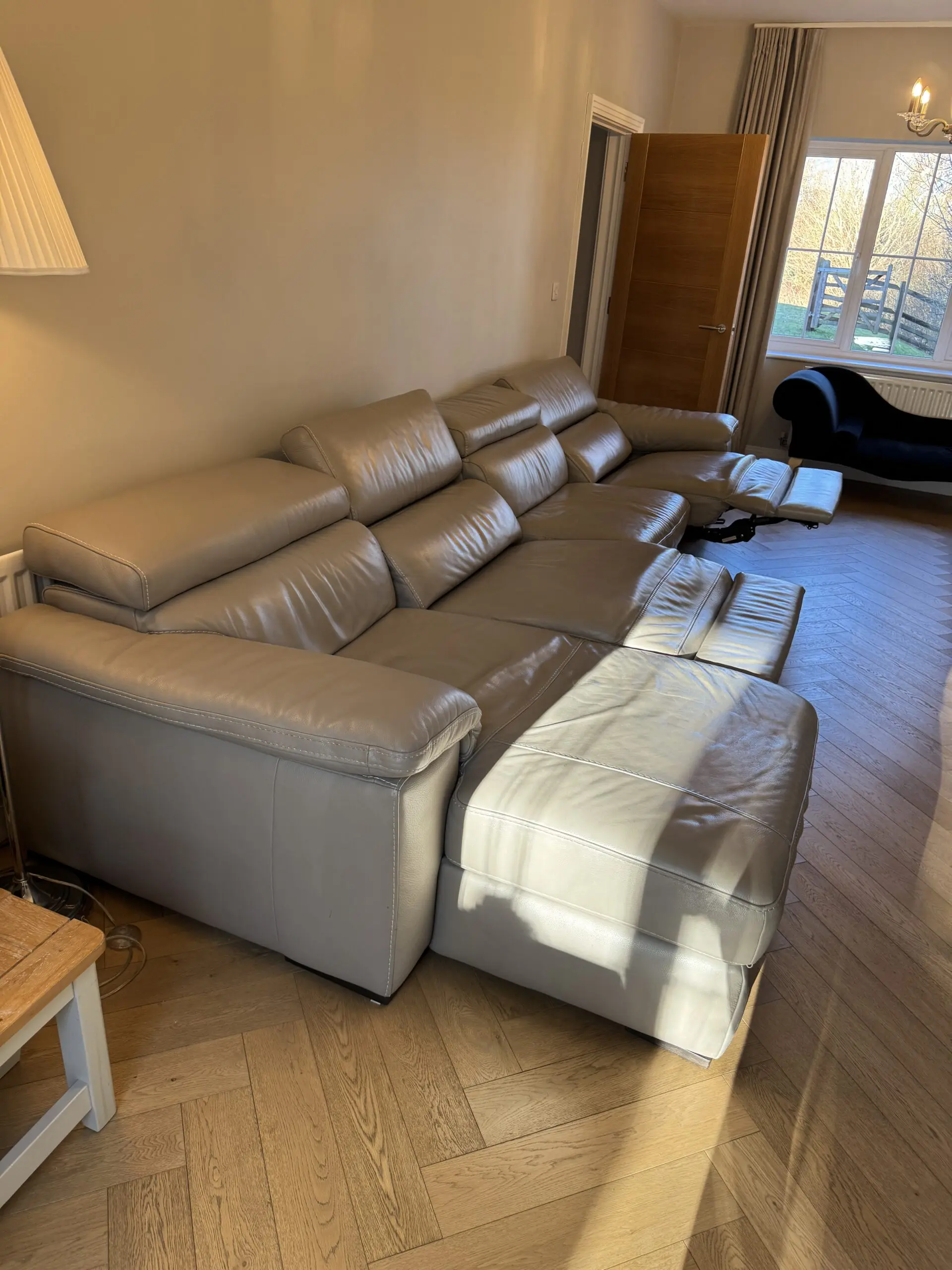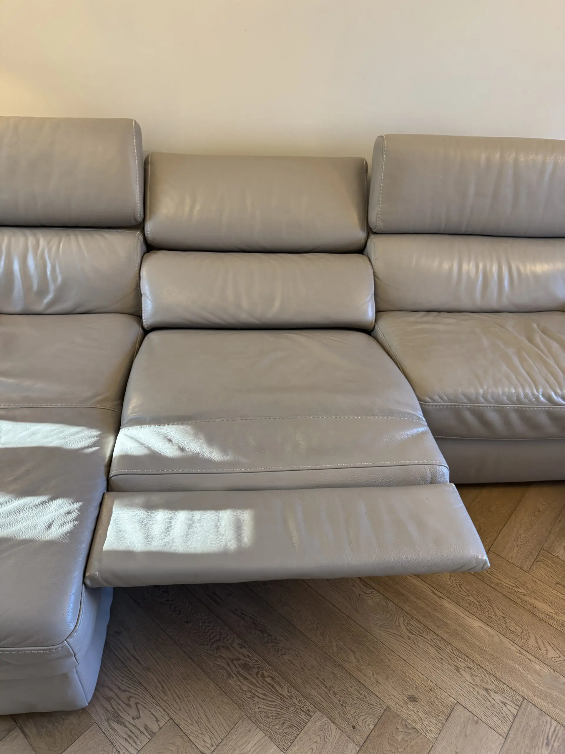 A stunning set of leather, versatile Natuzzi Additions sofas all interlinked, with two additional electric extending seats to the chase end, and a separate square storage Ottoman (100cm x 100cm), in good condition (no tears or severe damage). Originally purchased from Darlings of Chelsea in St Albans for over £8,000. Pick up only from EN7 6DY, to be arranged for the last week of February or the first week of March (as we are expecting new sofas to arrive during that time).