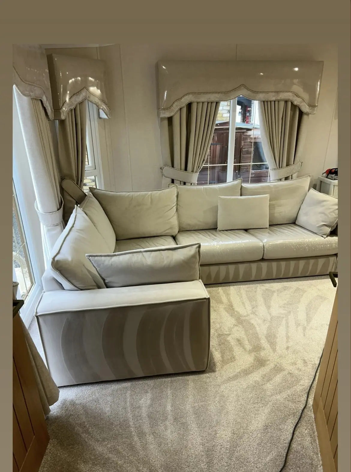 This spacious L-shaped corner sofa offers excellent seating for families and entertaining, comfortably accommodating up to 4 people. The contemporary design features a practical chaise lounge section perfect for stretching out and relaxing. Clean lines and neutral tones make this piece versatile enough to complement various interior styles. The generous cushioning and well-proportioned design provide both comfort and style for any living space. Seats are in plastic