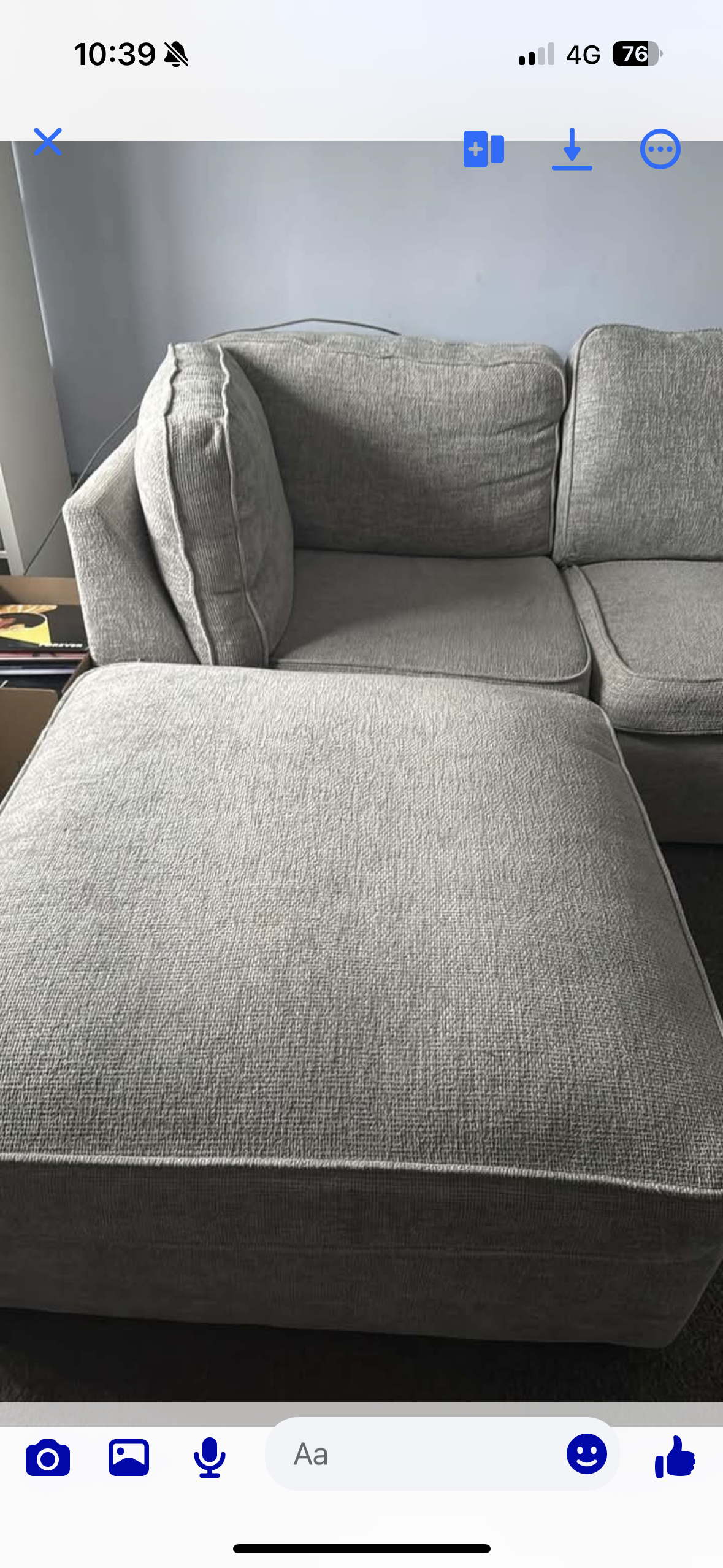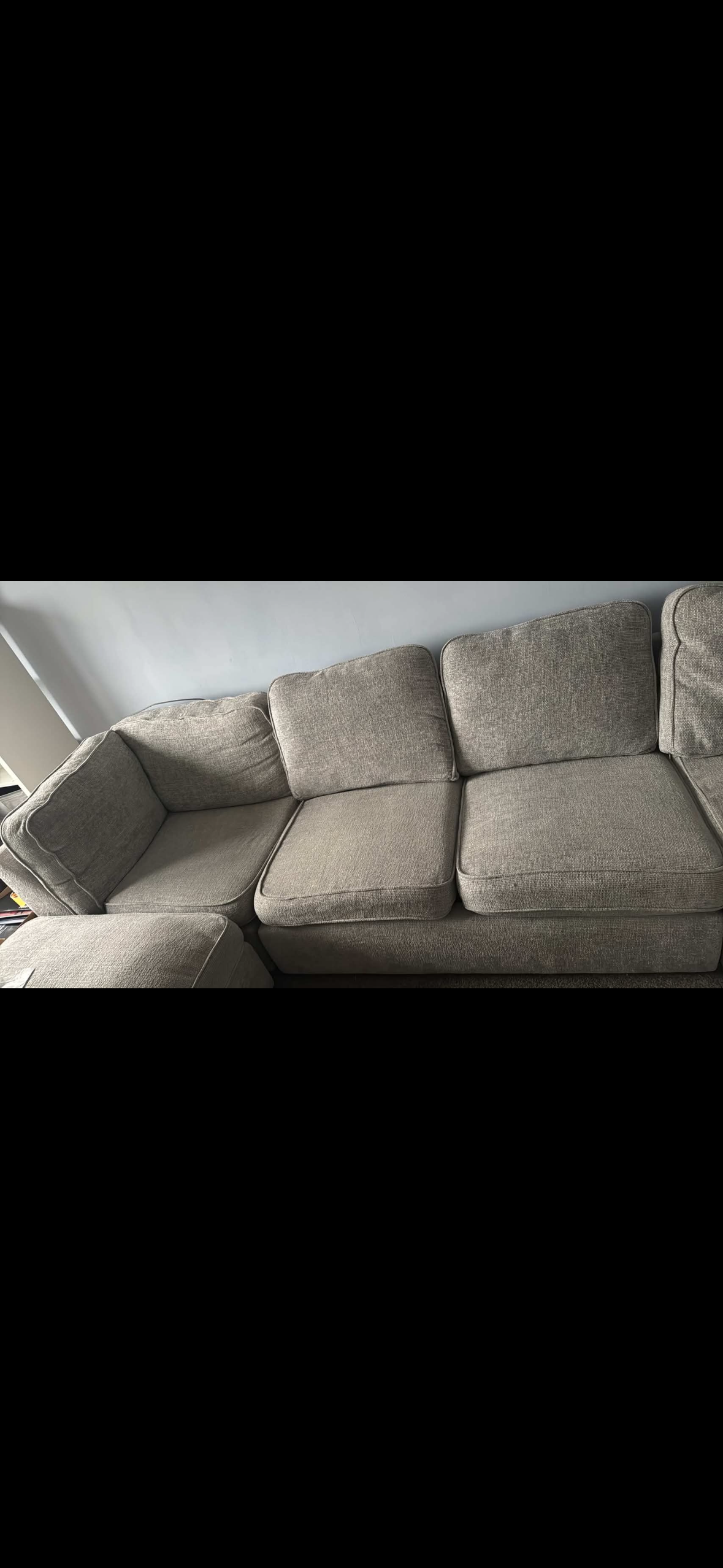 Super comfortable with deep seating and a spacious corner/chaise design, end pieces can be adjusted for an L shape or as footstools. Selling due to moving out and no space for it.