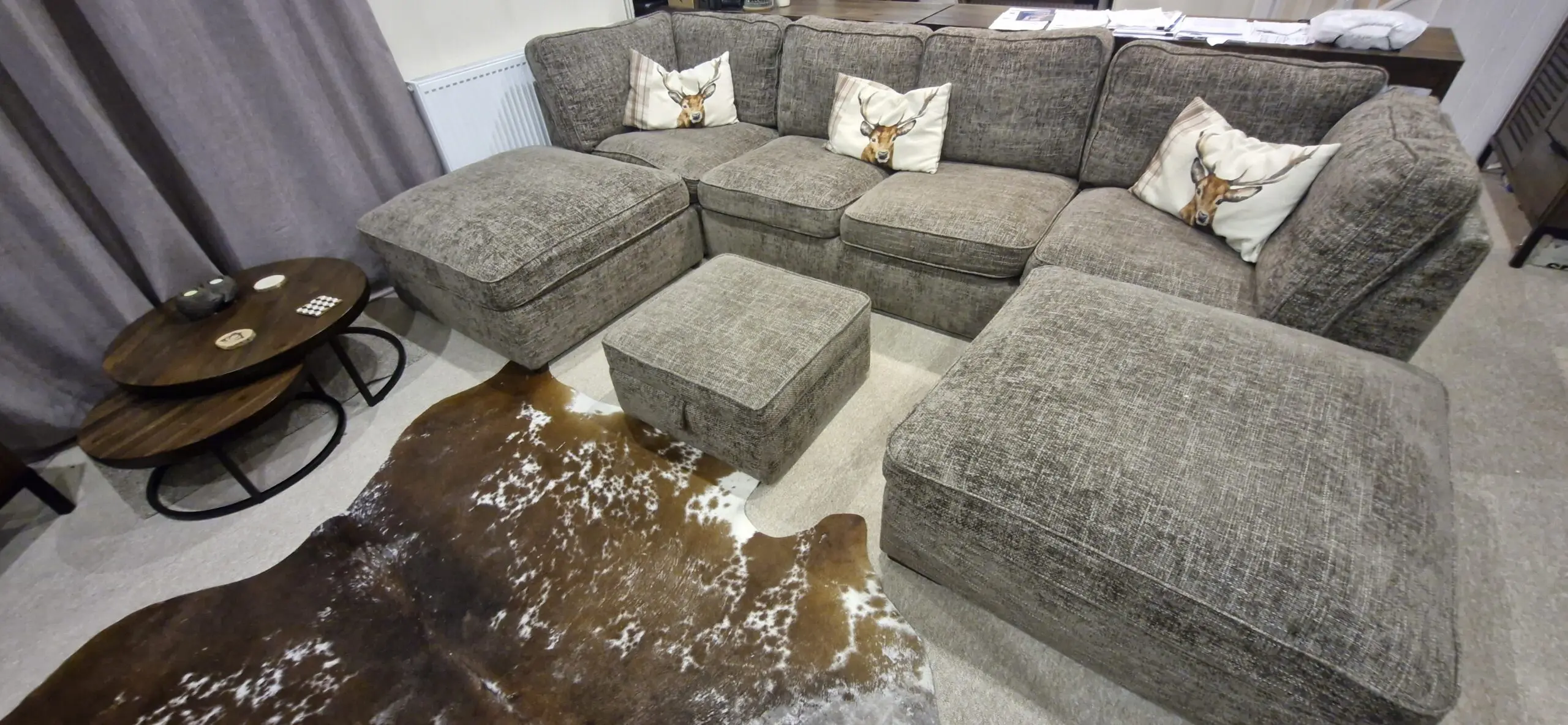 Lovely comfortable U shaped some in excellent condition. 2 years old but this last year has had very little use. Cour is Coco which is a very light brown/ beige colour