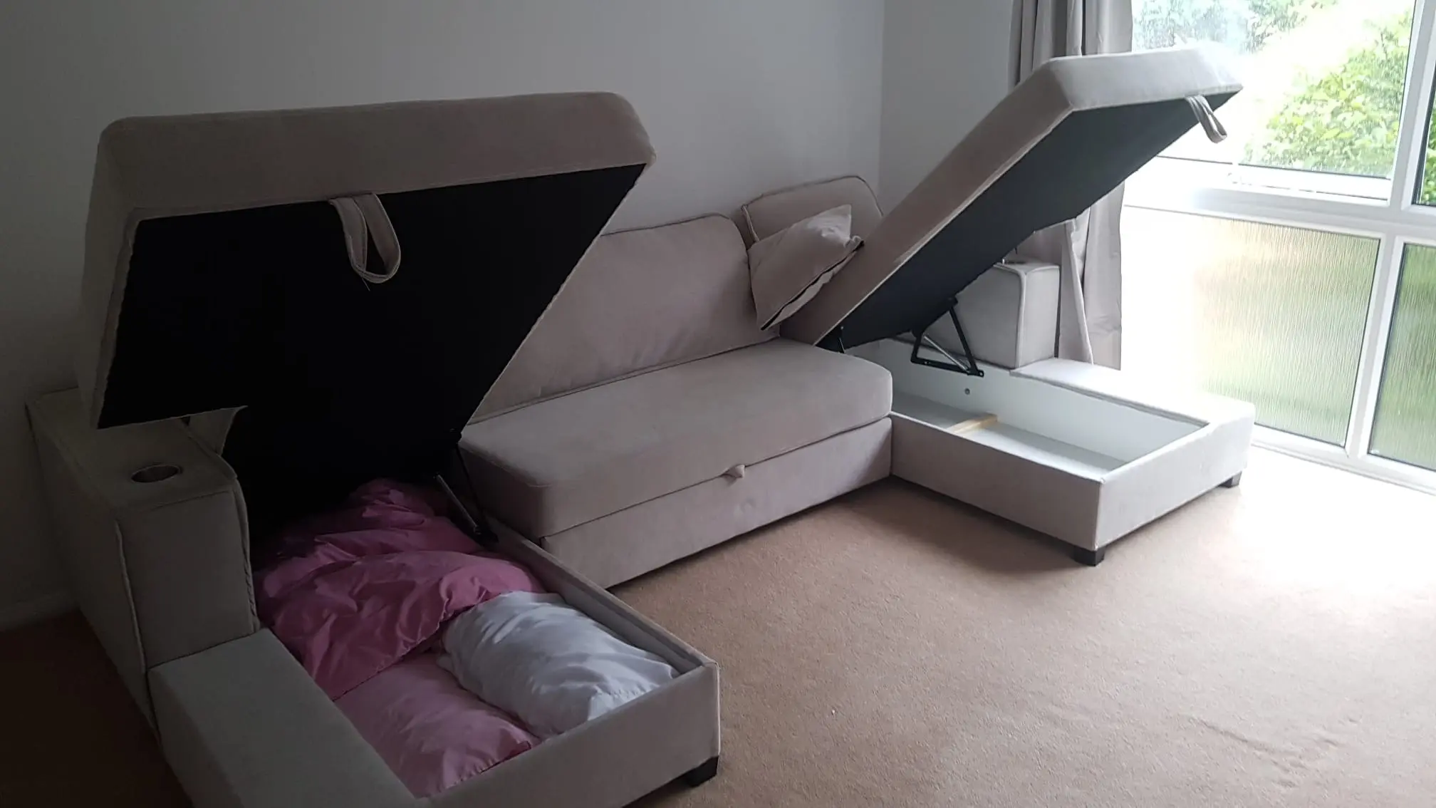 Storage both ends to fit bedding in